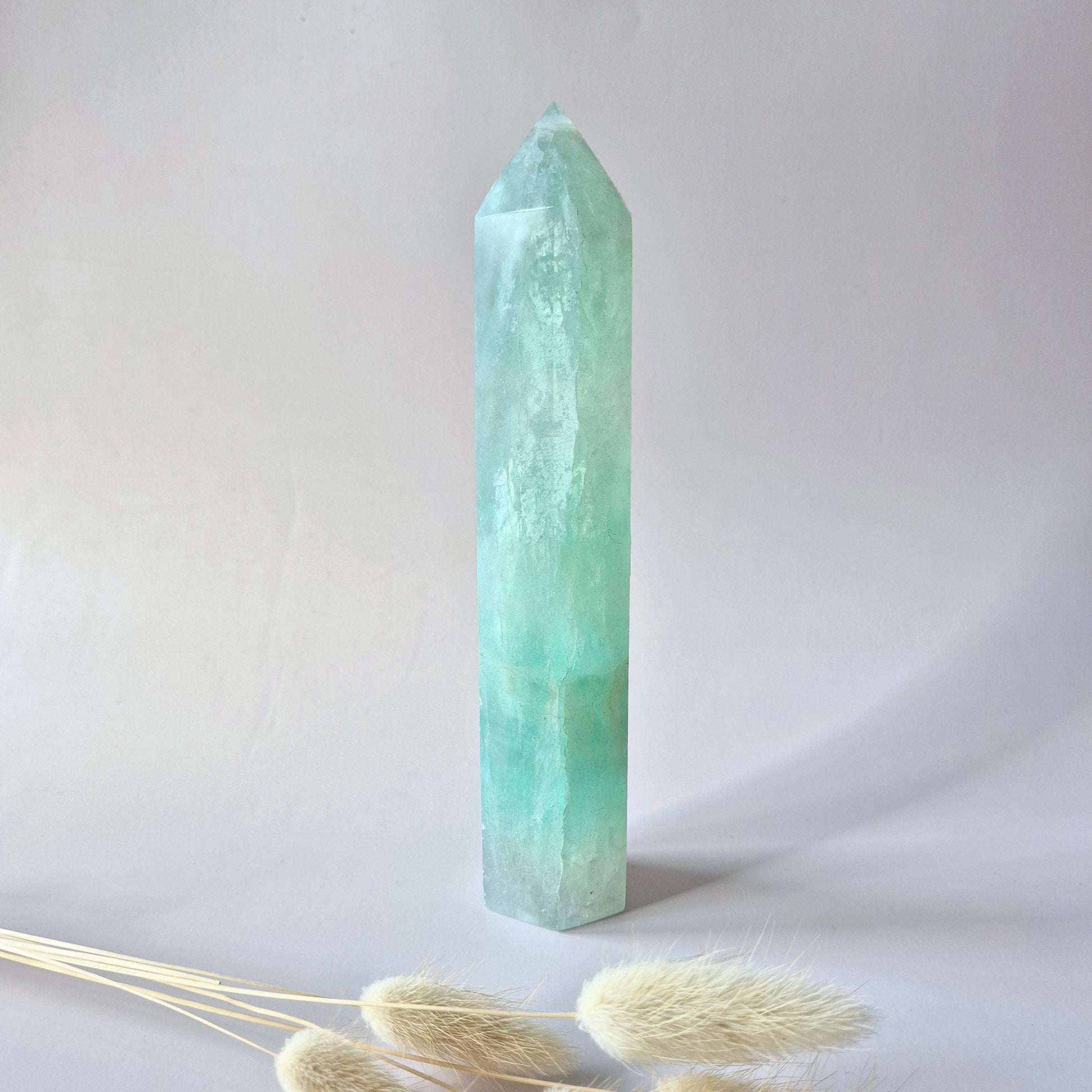 Lassen Sie sich von der beruhigenden Energie dieser grünen Fluoritspitze verzaubern, einem seltenen und besonderen Stück mit einer natürlichen Kombination aus rauen und polierten Strukturen. Die wunderschönen Schichten in sanften Grüntönen wechseln sich mit weißen und goldfarbenen Einschlüssen ab und machen jedes Stück zu einem Unikat und authentisch.