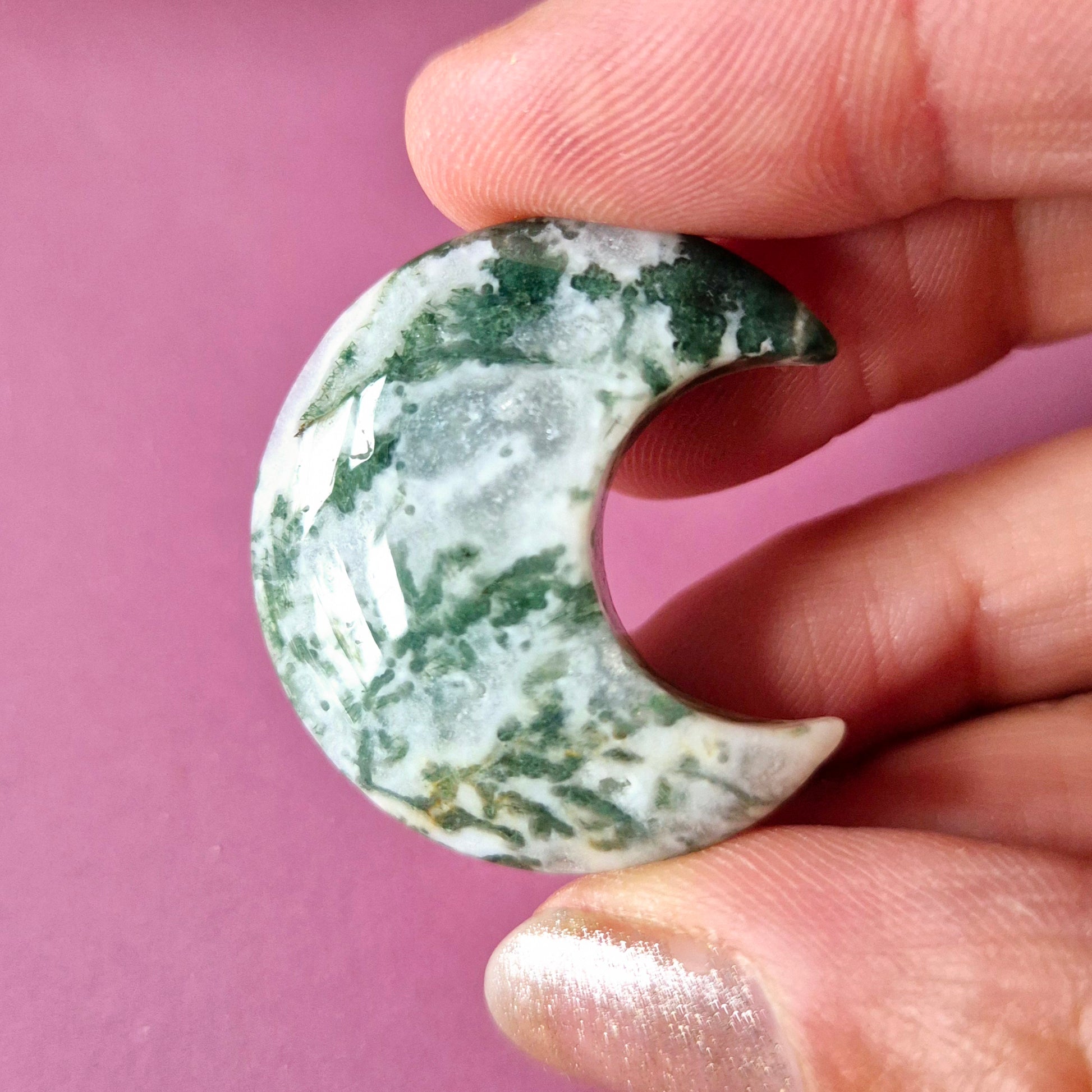 Grauer Seidenachat Palmstein Herz 5cm – Handstein SorgensteinMaan 3cm - Mosagaat