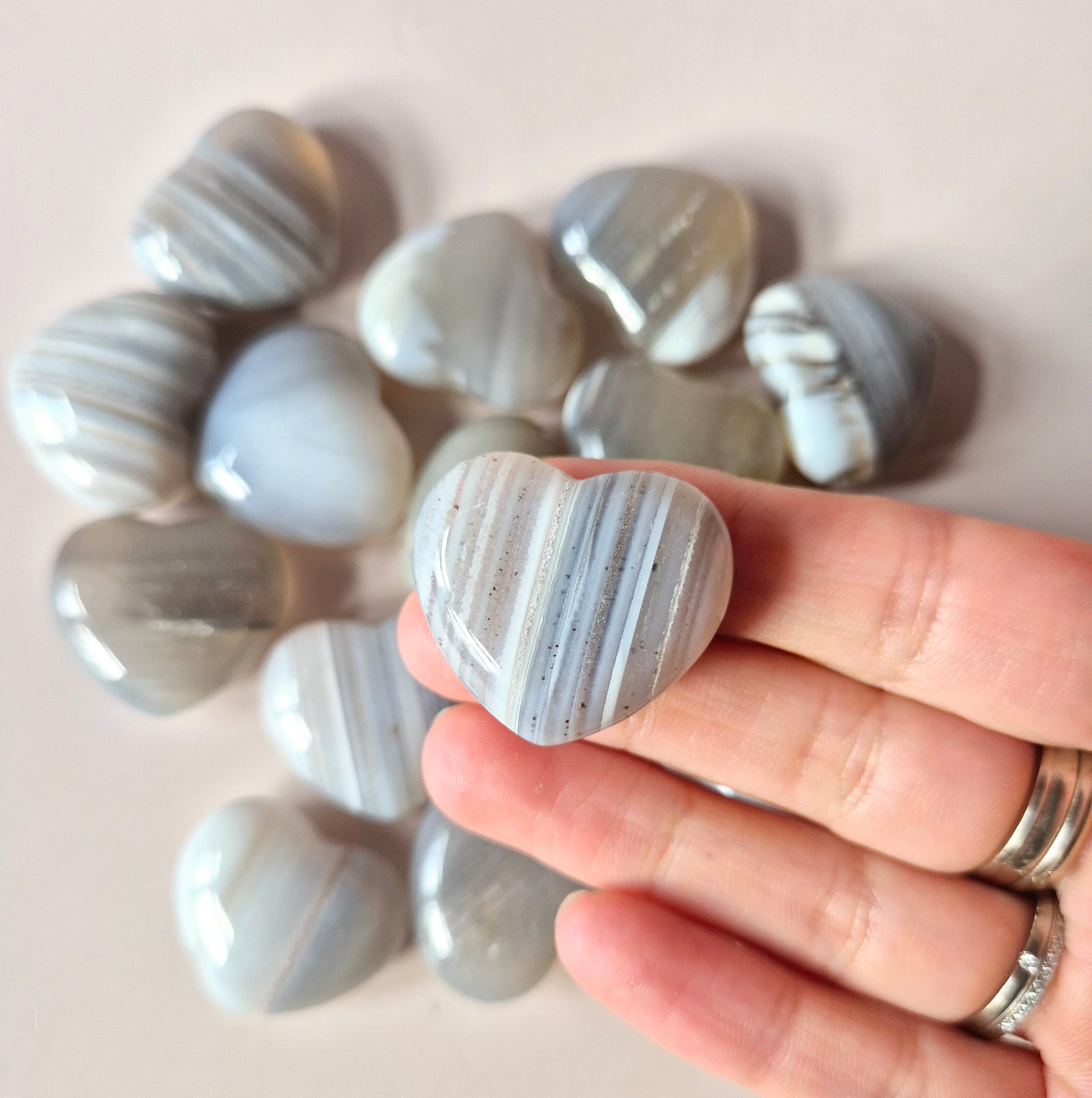 Grauer Seidenachat Palmstein Herz 5cm – Handstein Sorgenstein