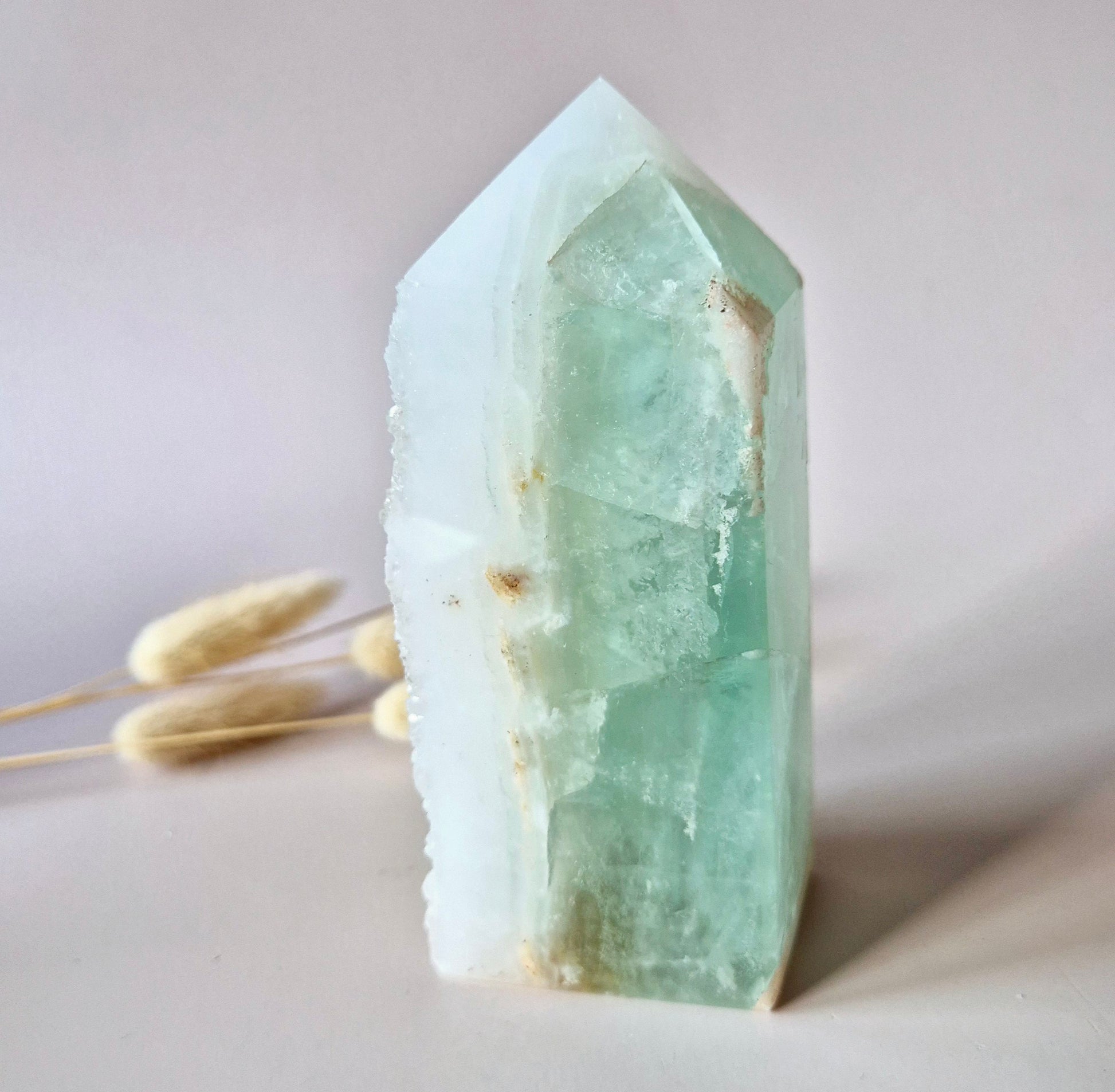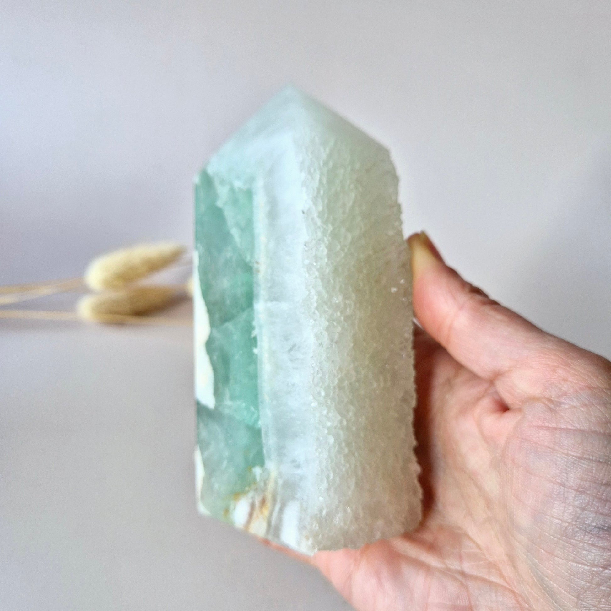 Grüne Fluoritspitze – Roh & Poliert | Einzelstück