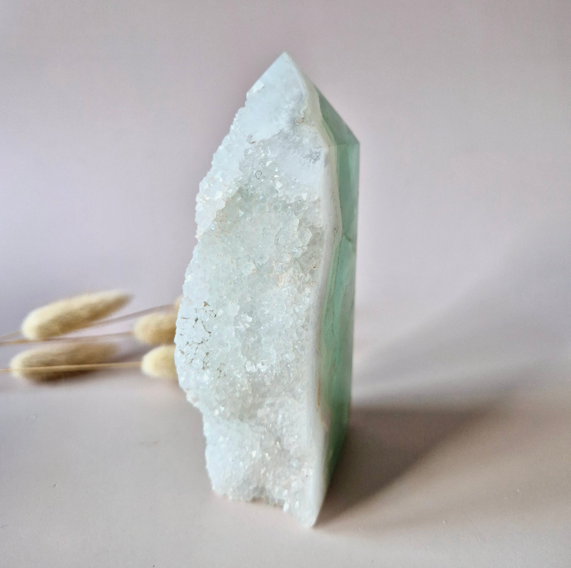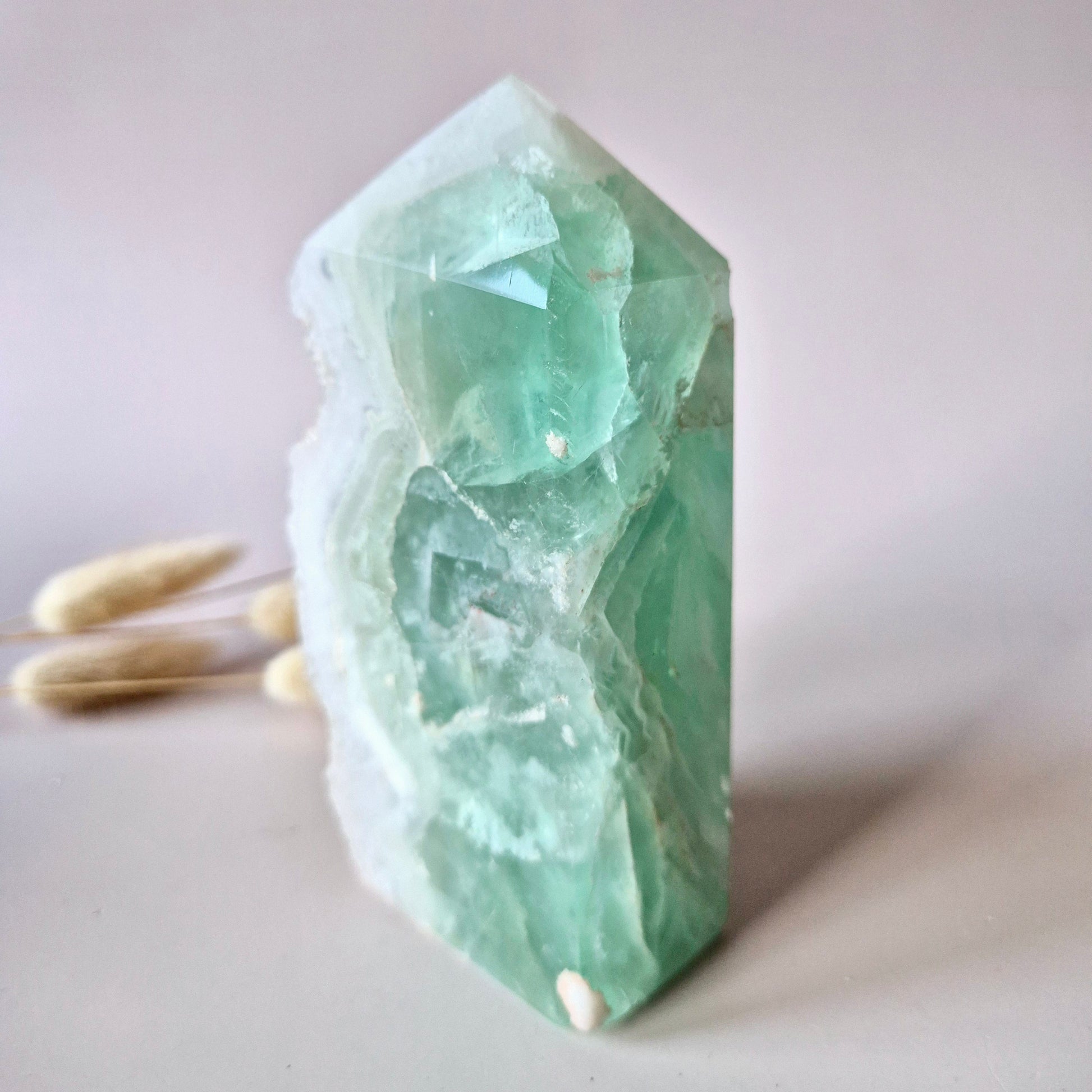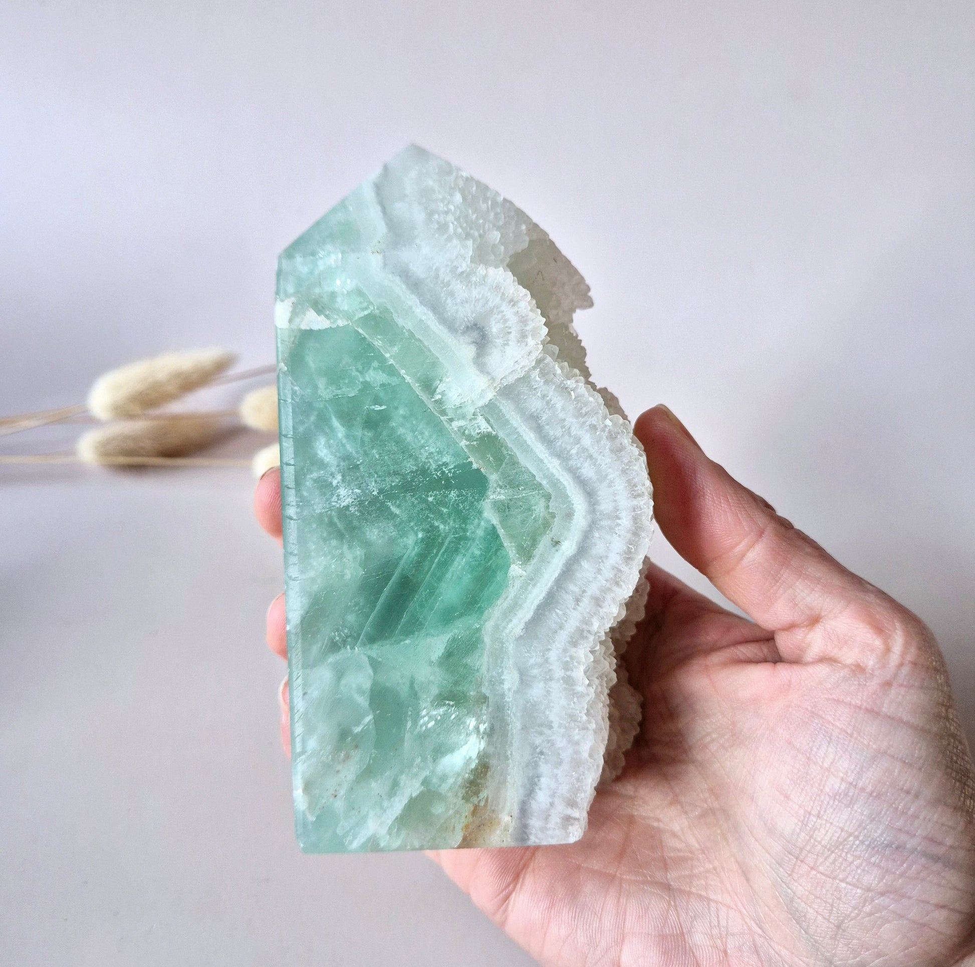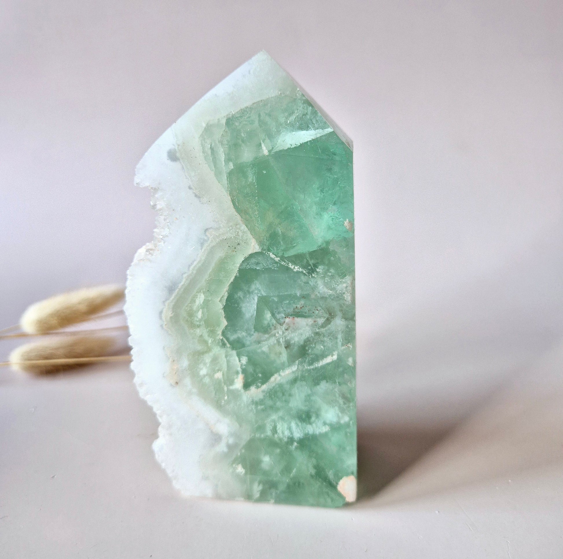 Grüne Fluoritspitze – Roh & Poliert | Einzelstück