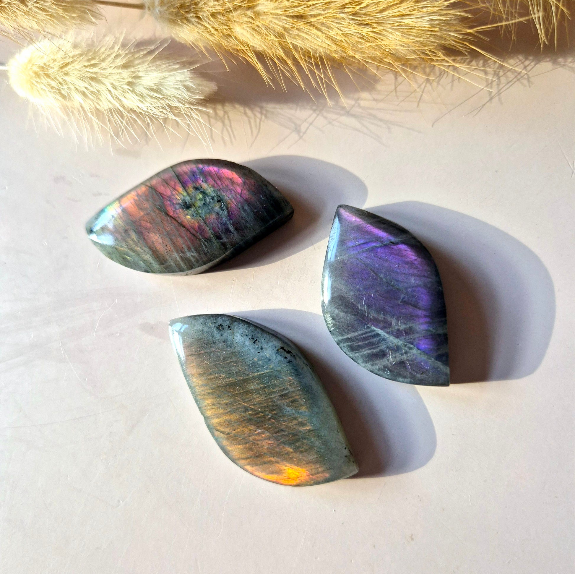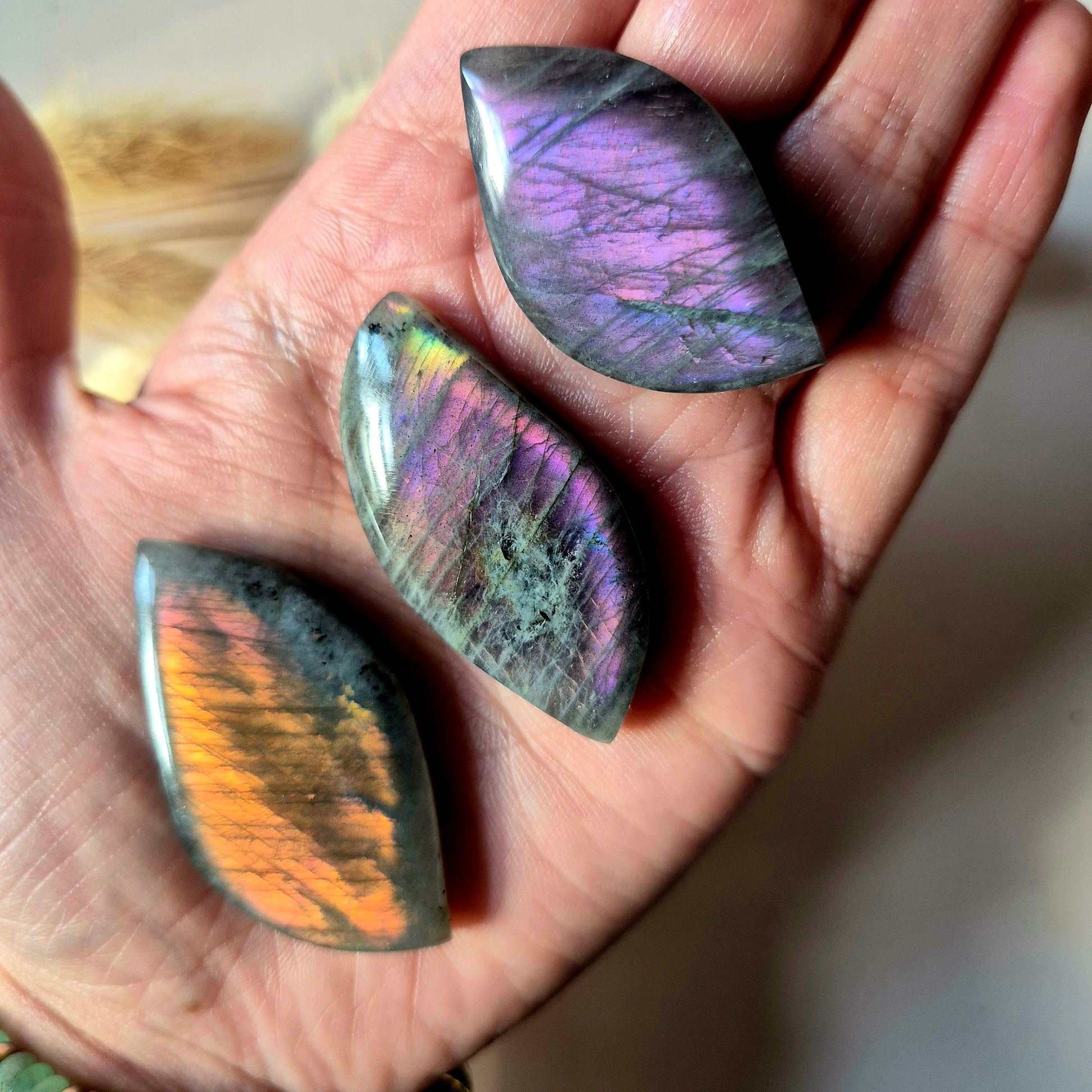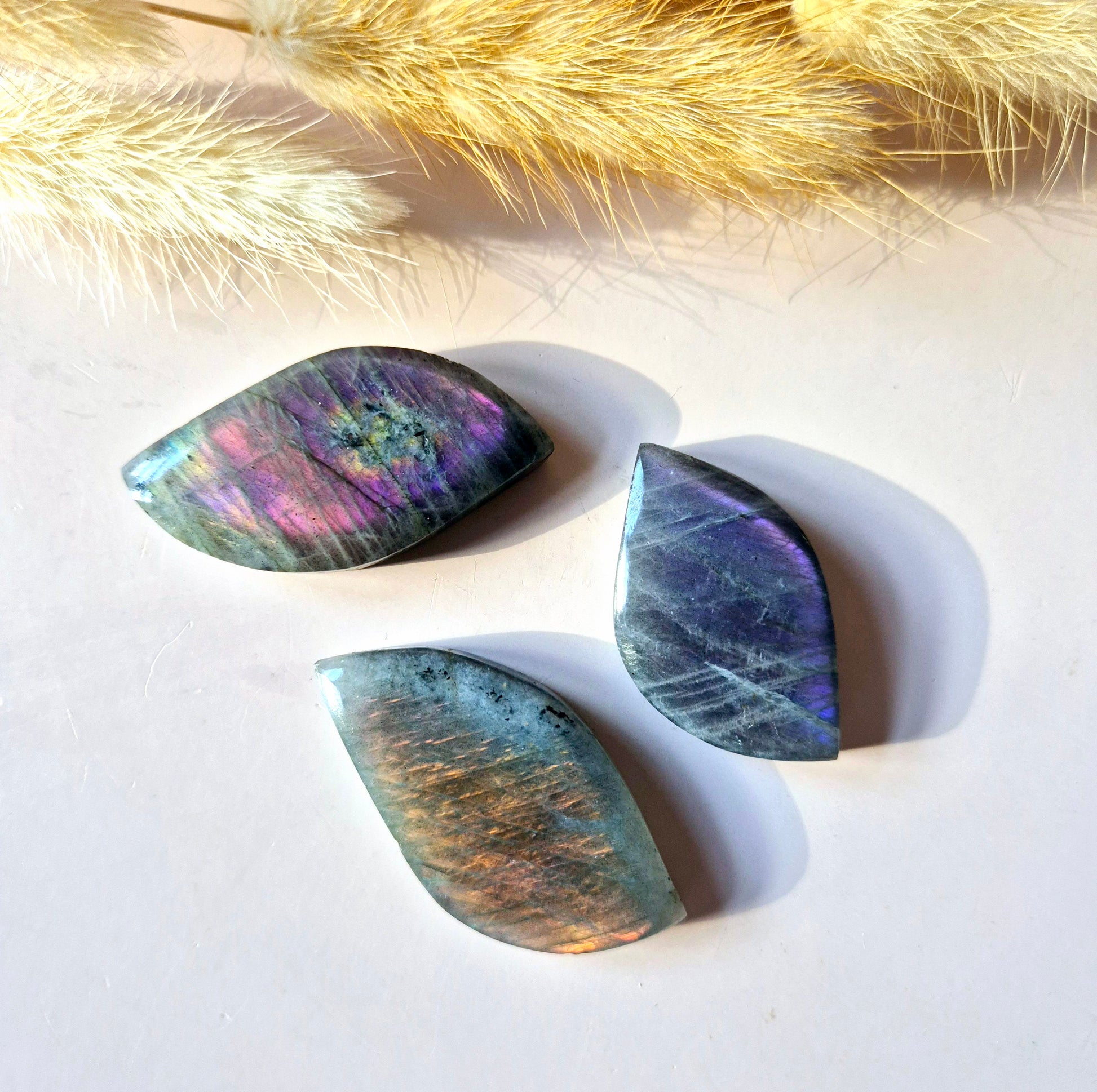 Labradorit Rose – Edelsteinschnitzerei mit Blitz (3,7 cm)Paarse Labradoriet Leaf 3cm