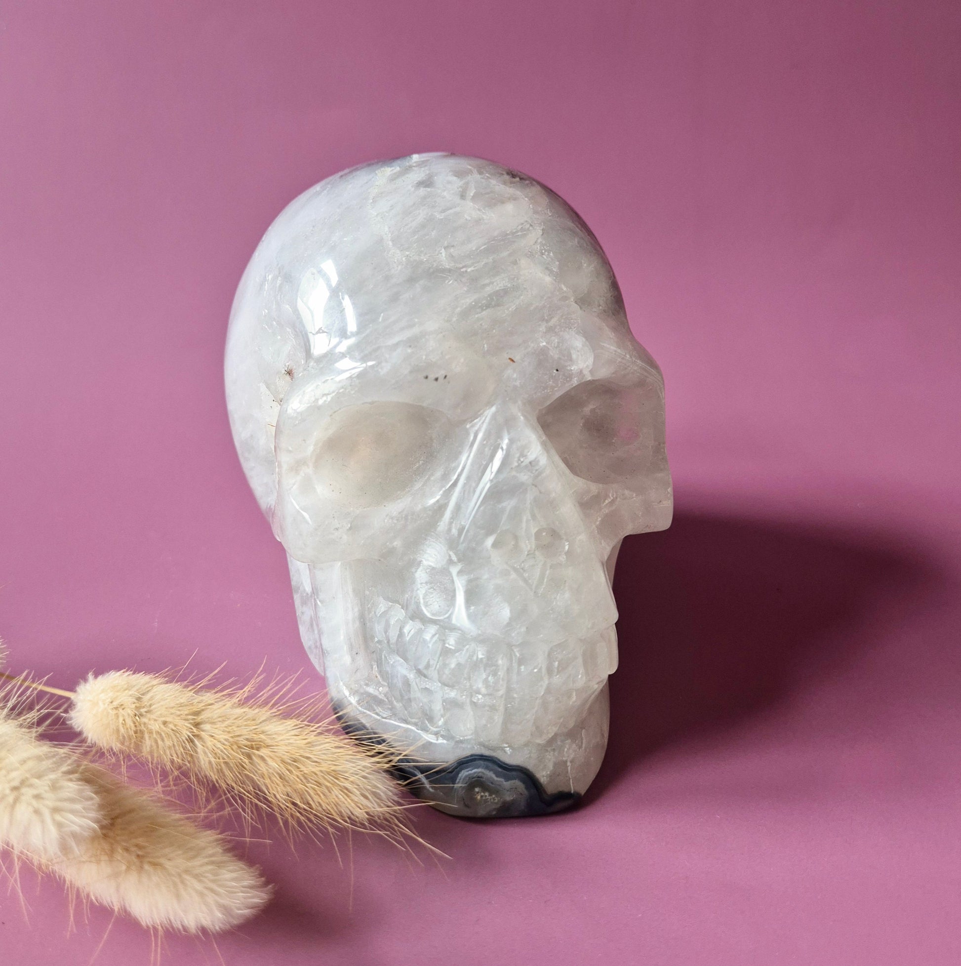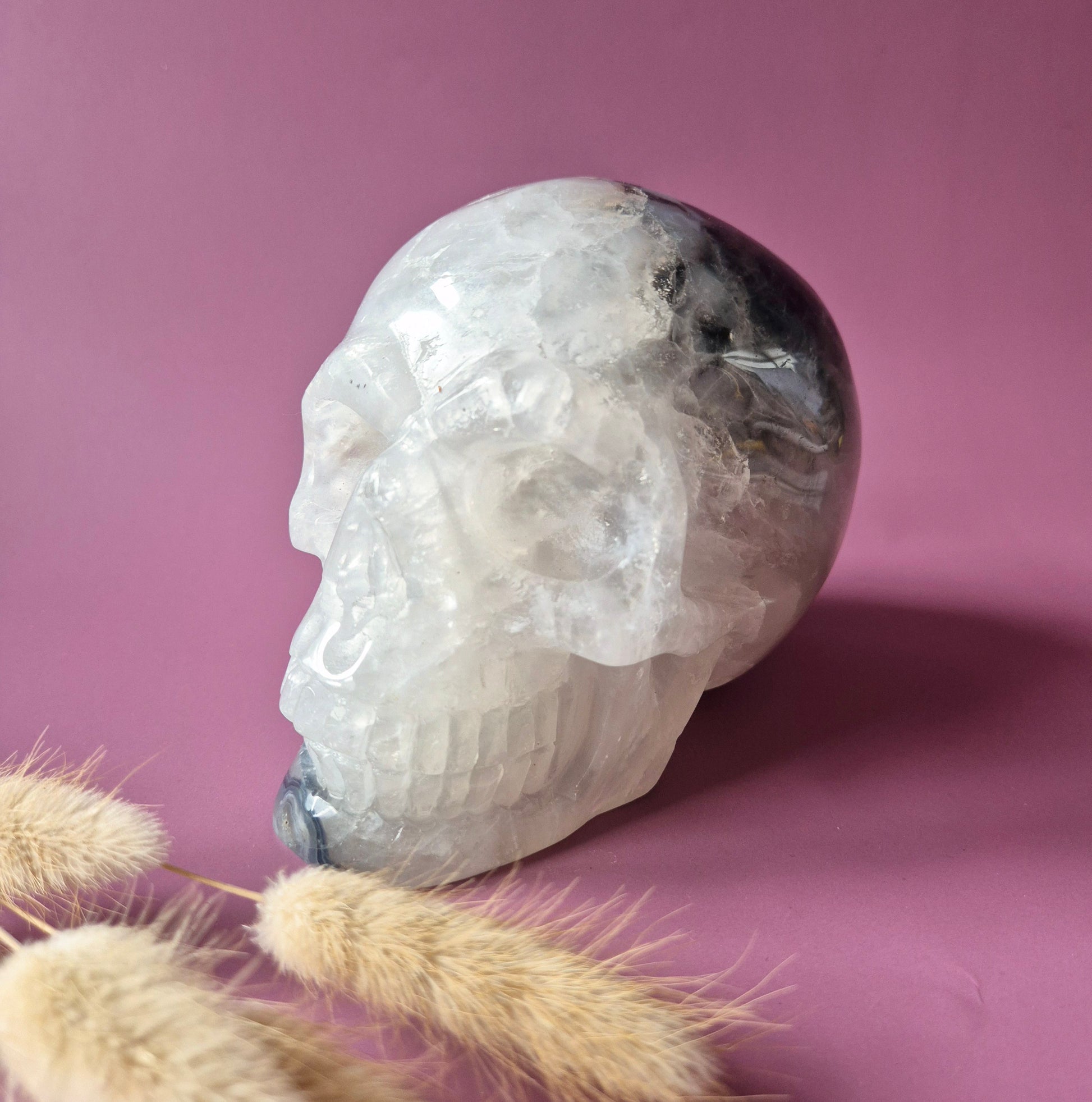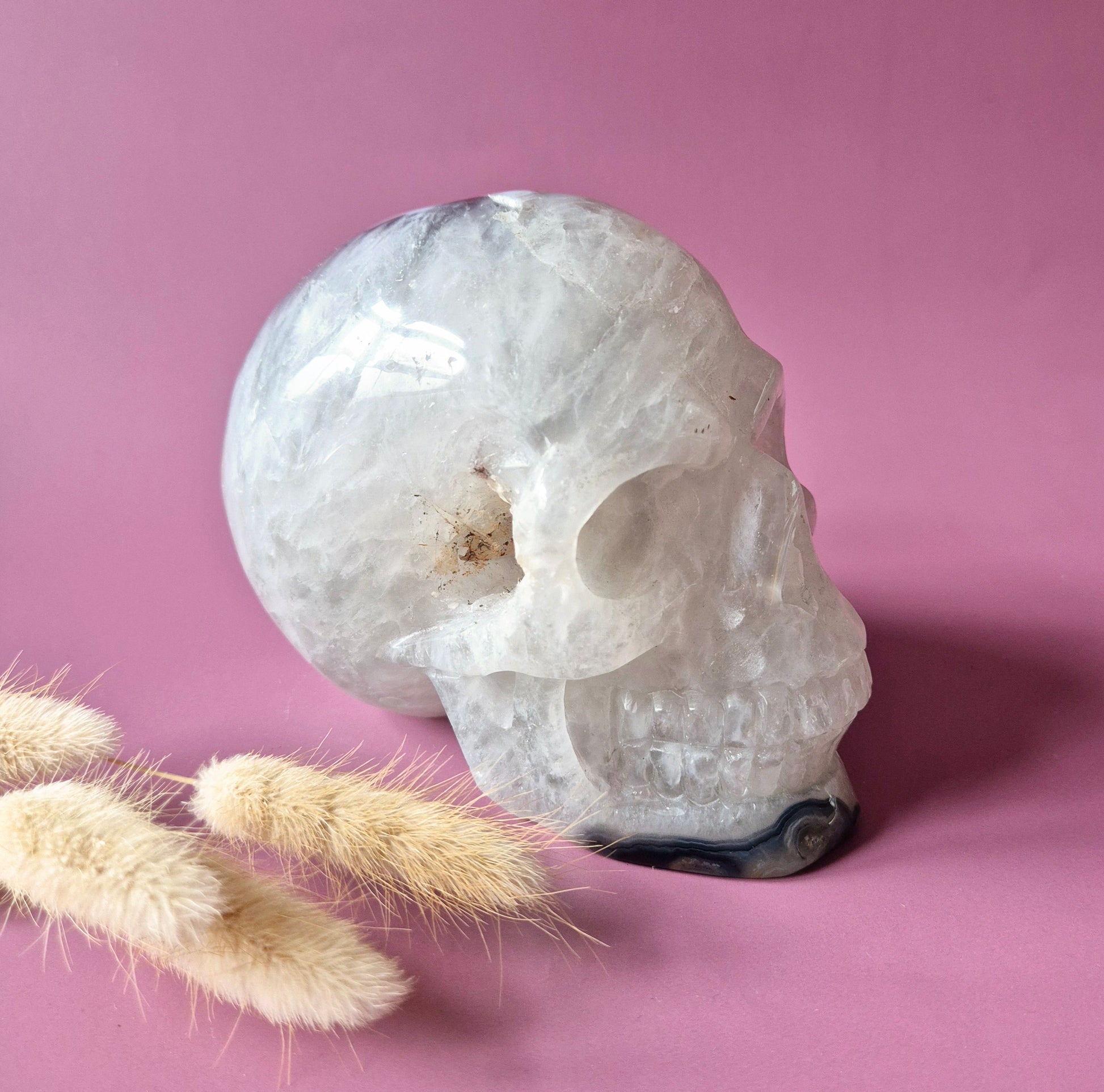 XL Edelsteinschädel Moosachatschädel Nr. 8 - 10cm 600 Gramm SchädelXXL Grijze Agaat Skull - 1800g