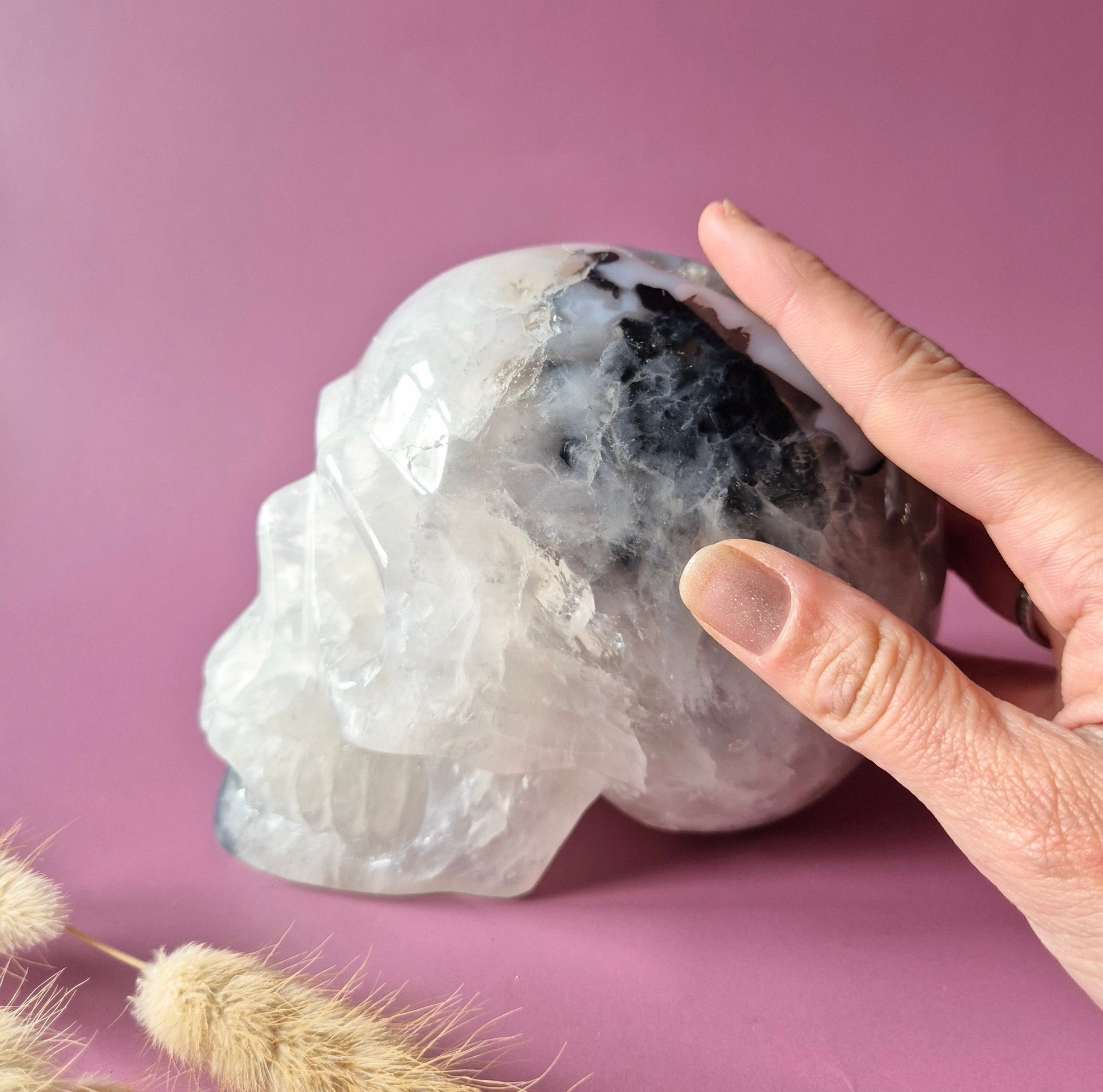 XL Edelsteinschädel Moosachatschädel Nr. 8 - 10cm 600 Gramm Schädel