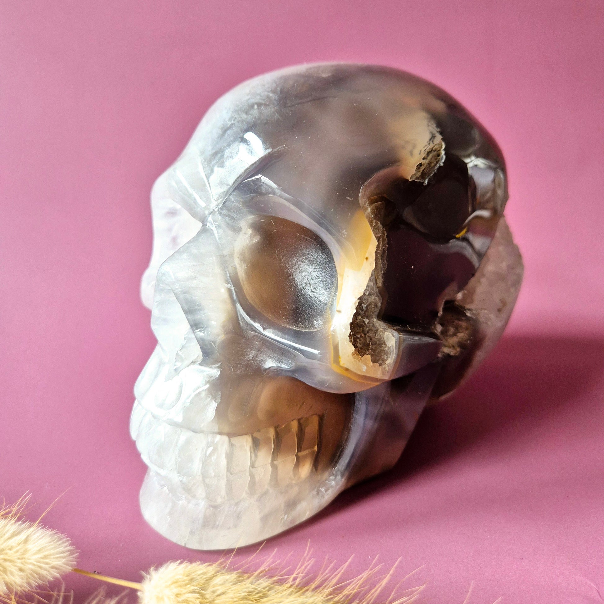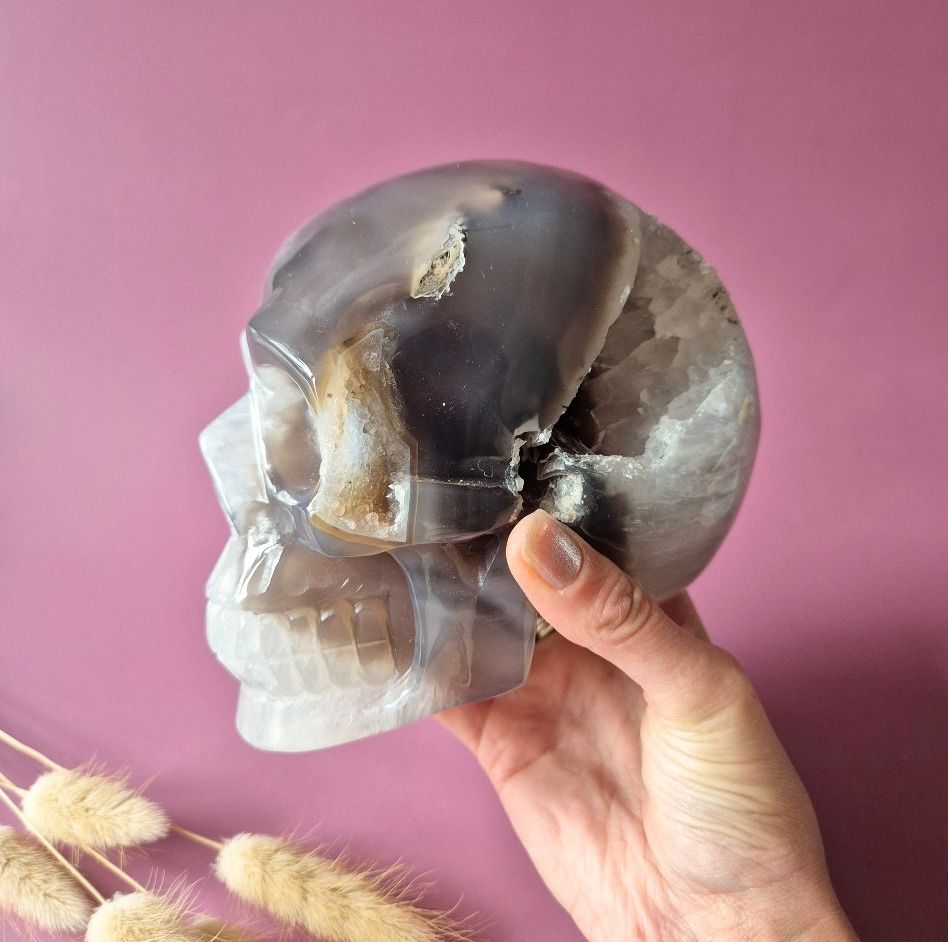 XL Druzy Moosachat Totenkopf
