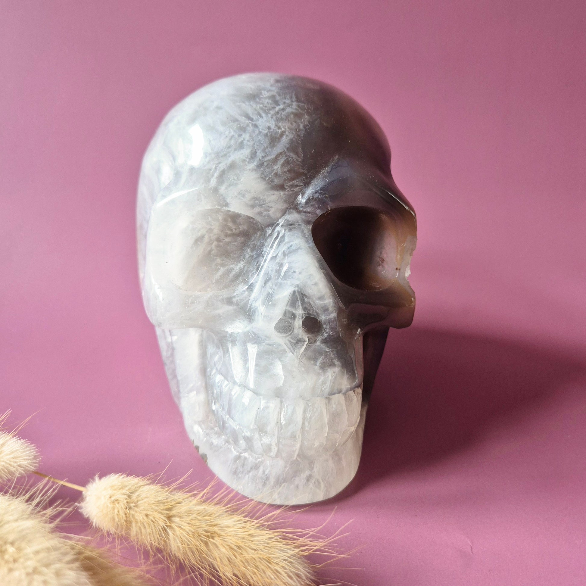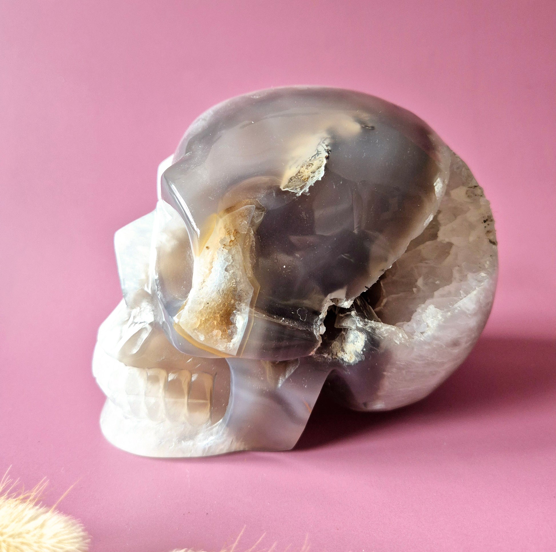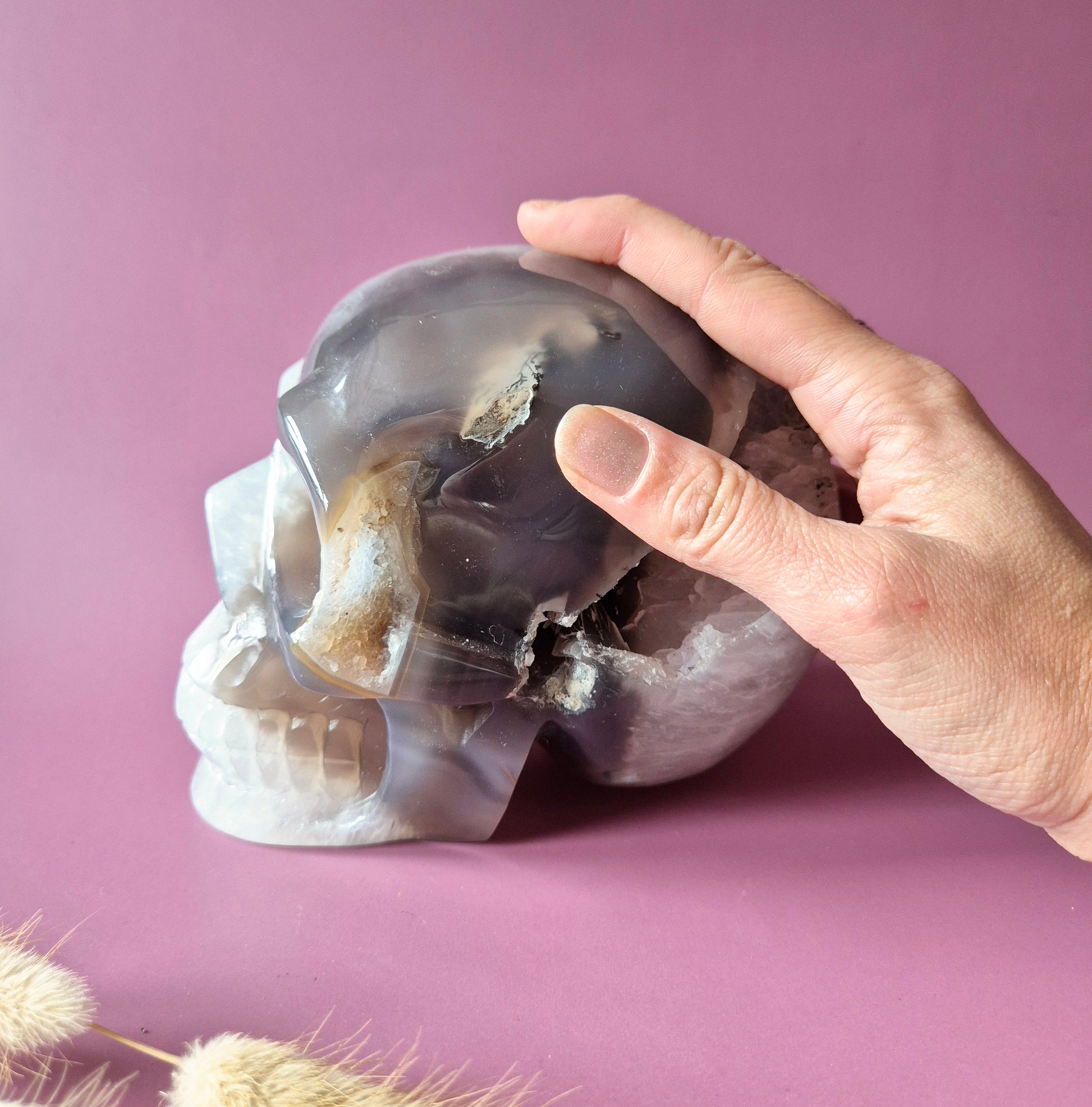 XL Edelsteinschädel Moosachatschädel Nr. 8 - 10cm 600 Gramm SchädelXXL Grijze Agaat Skull - 2270g
