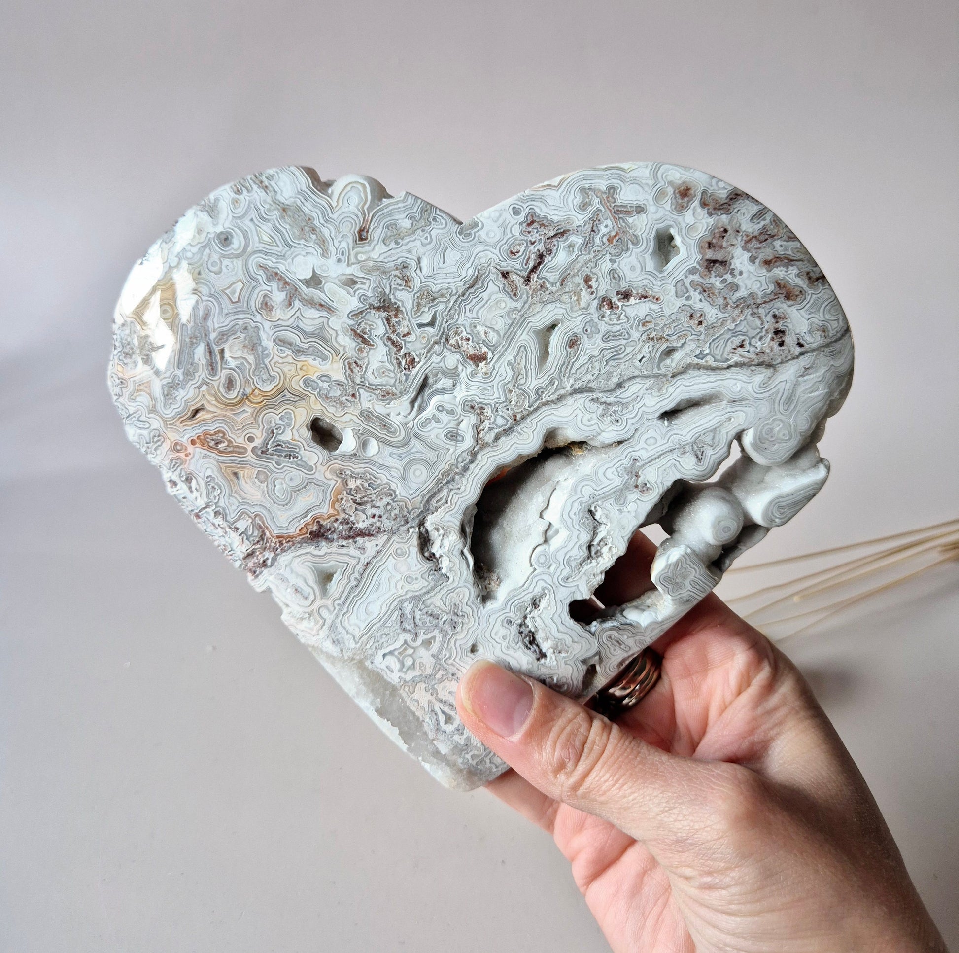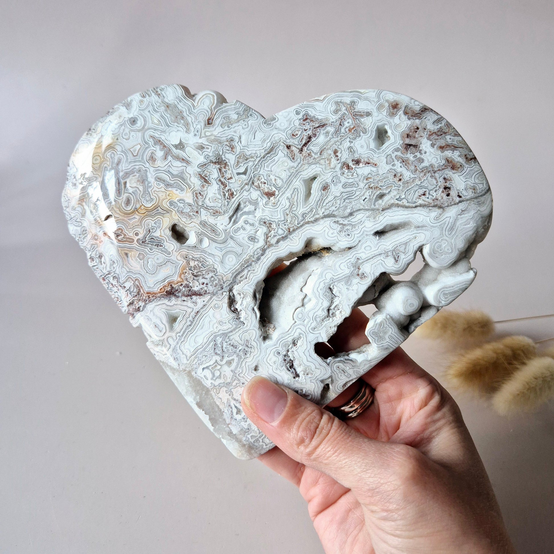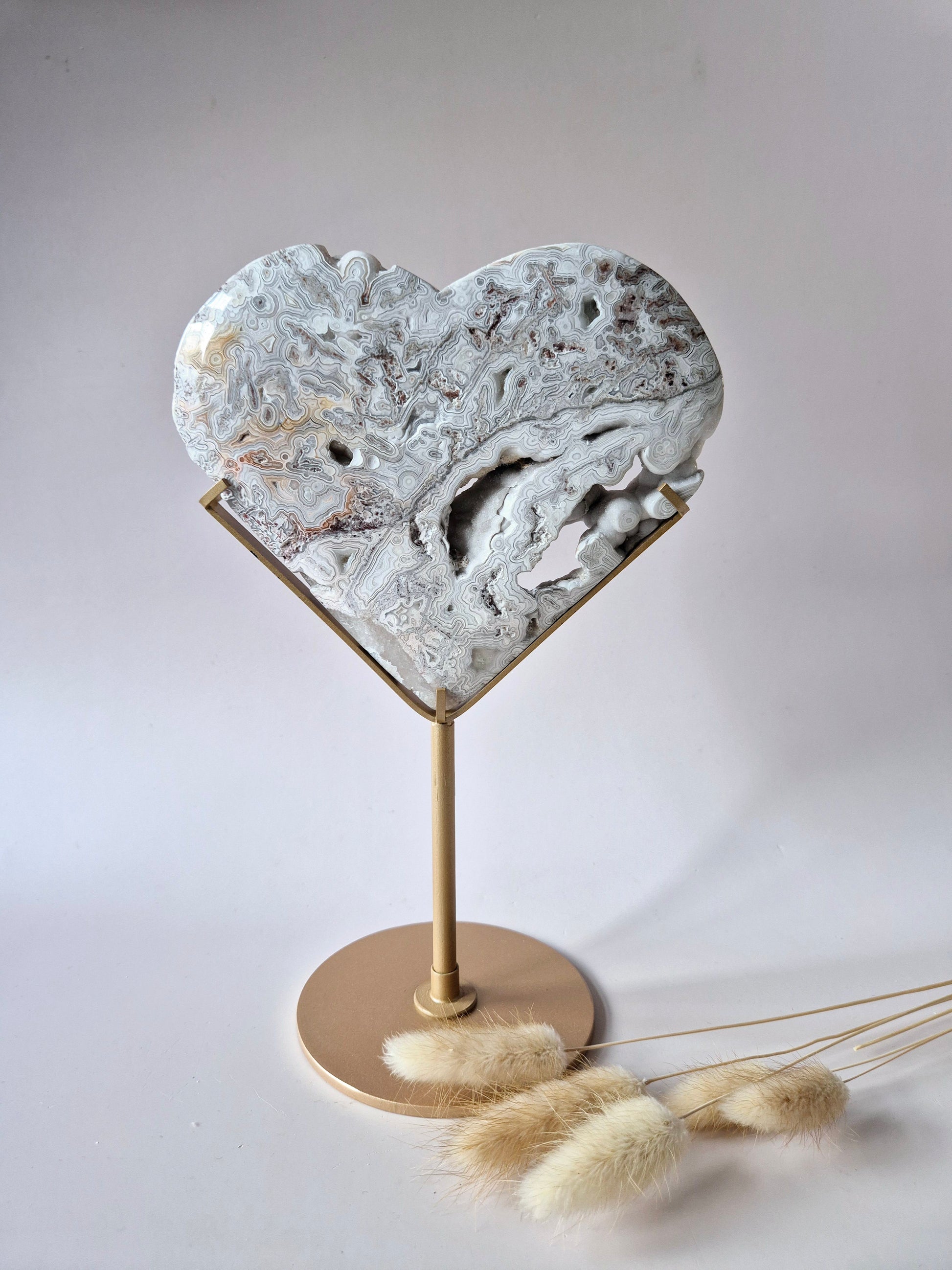 Mexikanisches Crazy Lace Achat Herz mit Ständer – Stone of Joy