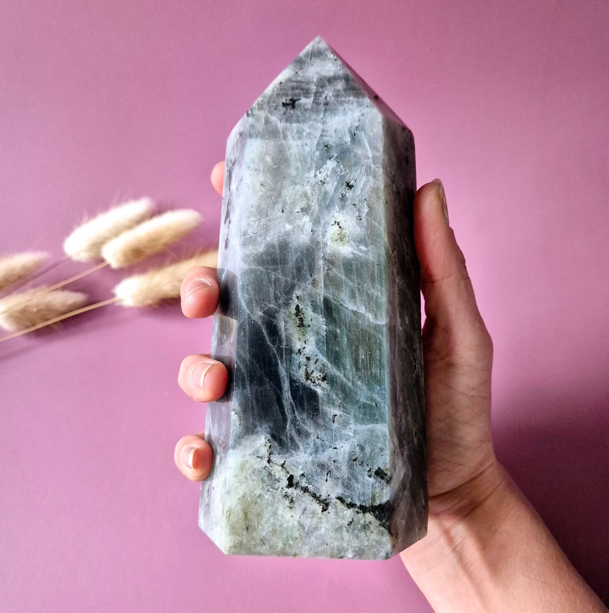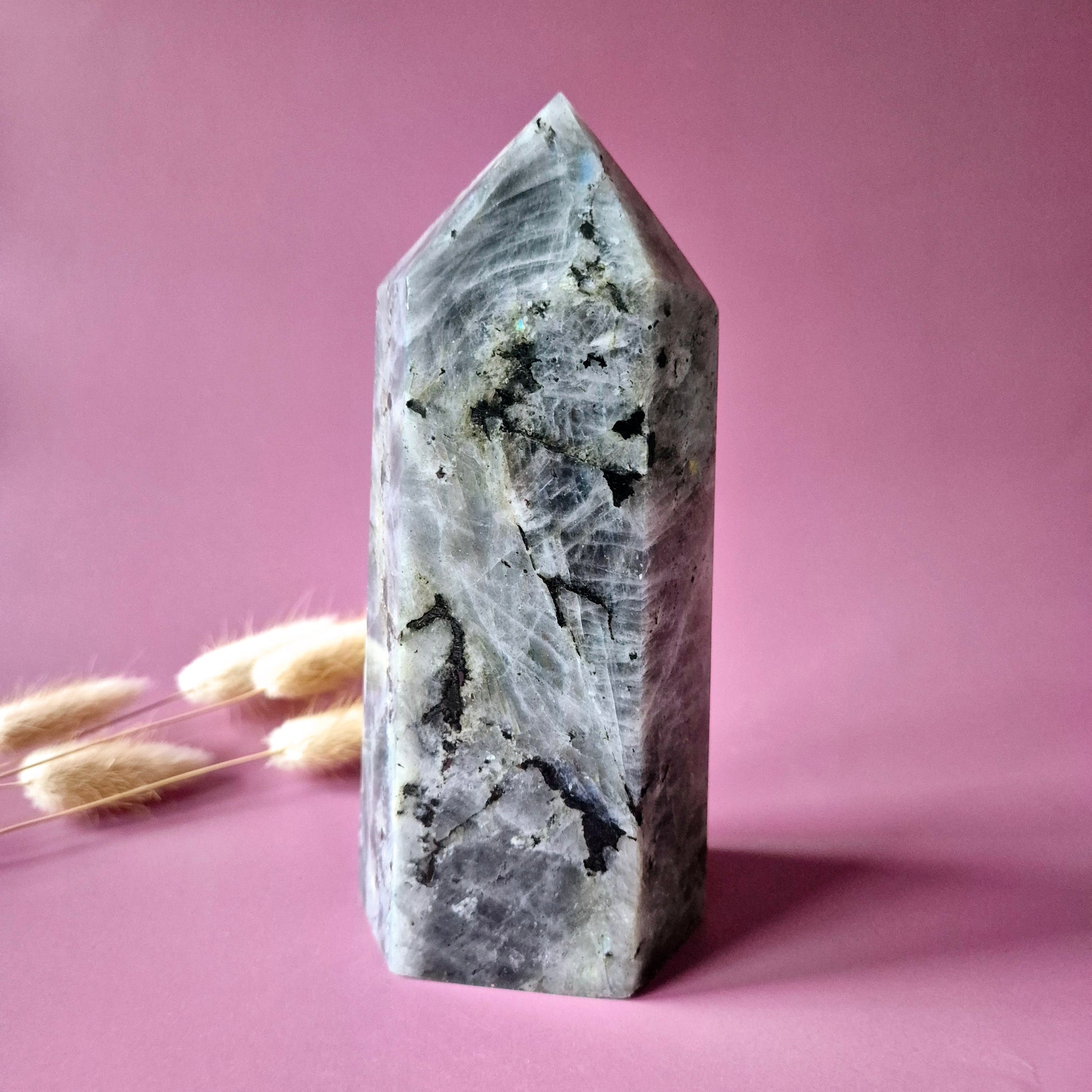 Labradorit gilt als Stein des Schutzes, der Intuition und der Magie. Dieser Turm fungiert als energetischer Wächter und hilft Ihnen, sich selbst treu zu bleiben, selbst in einer chaotischen Welt.