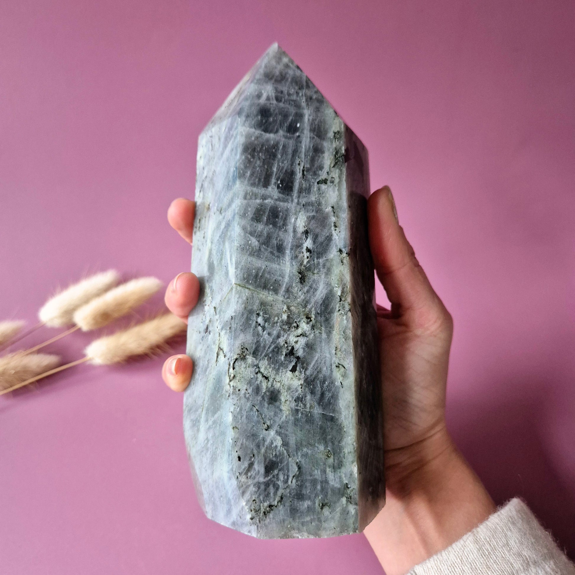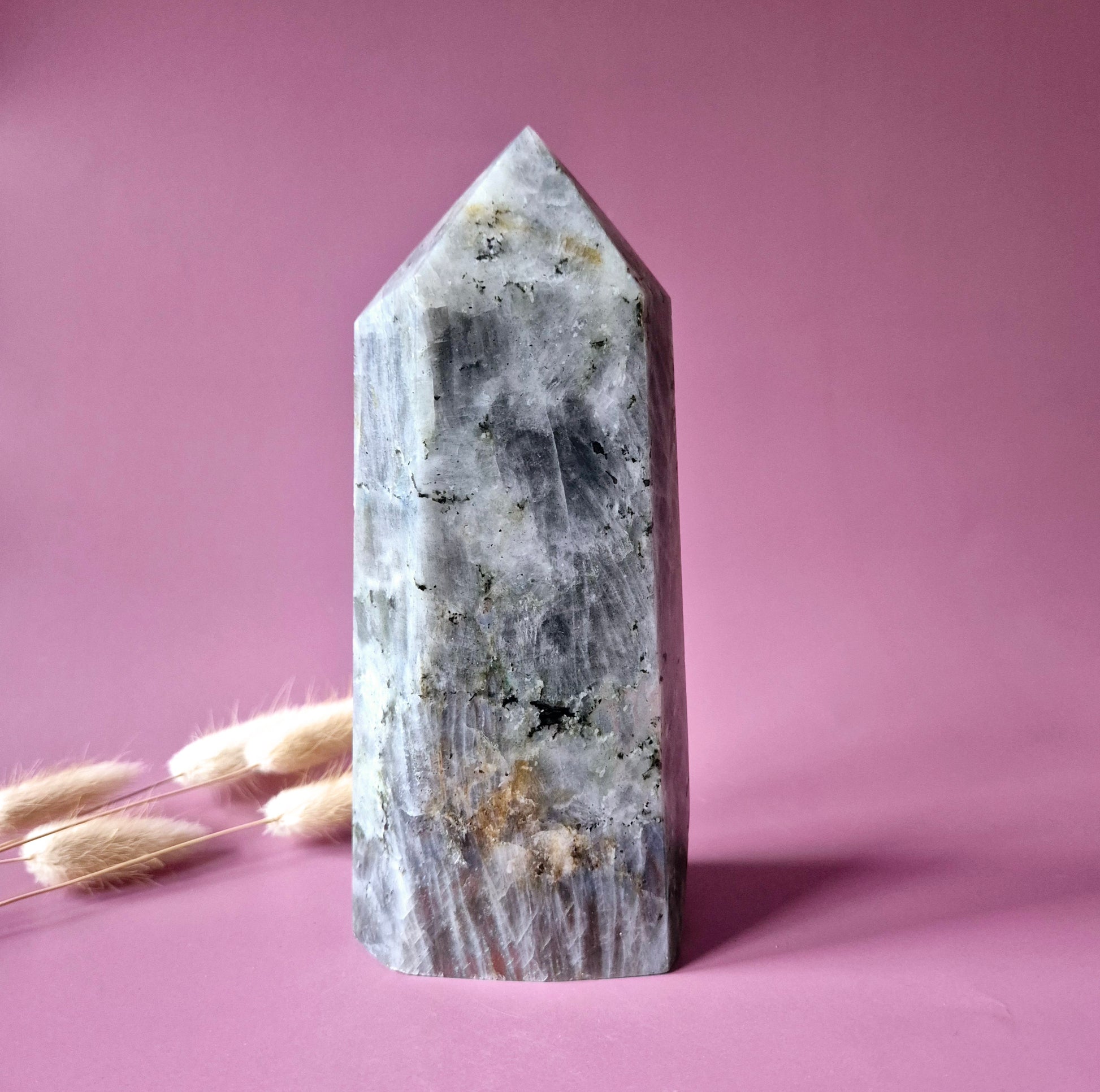 Bringen Sie Magie in Ihr Leben mit einem auffälligen Labradoritturm, der sowohl eine visuelle als auch eine energetische Wirkung hat!