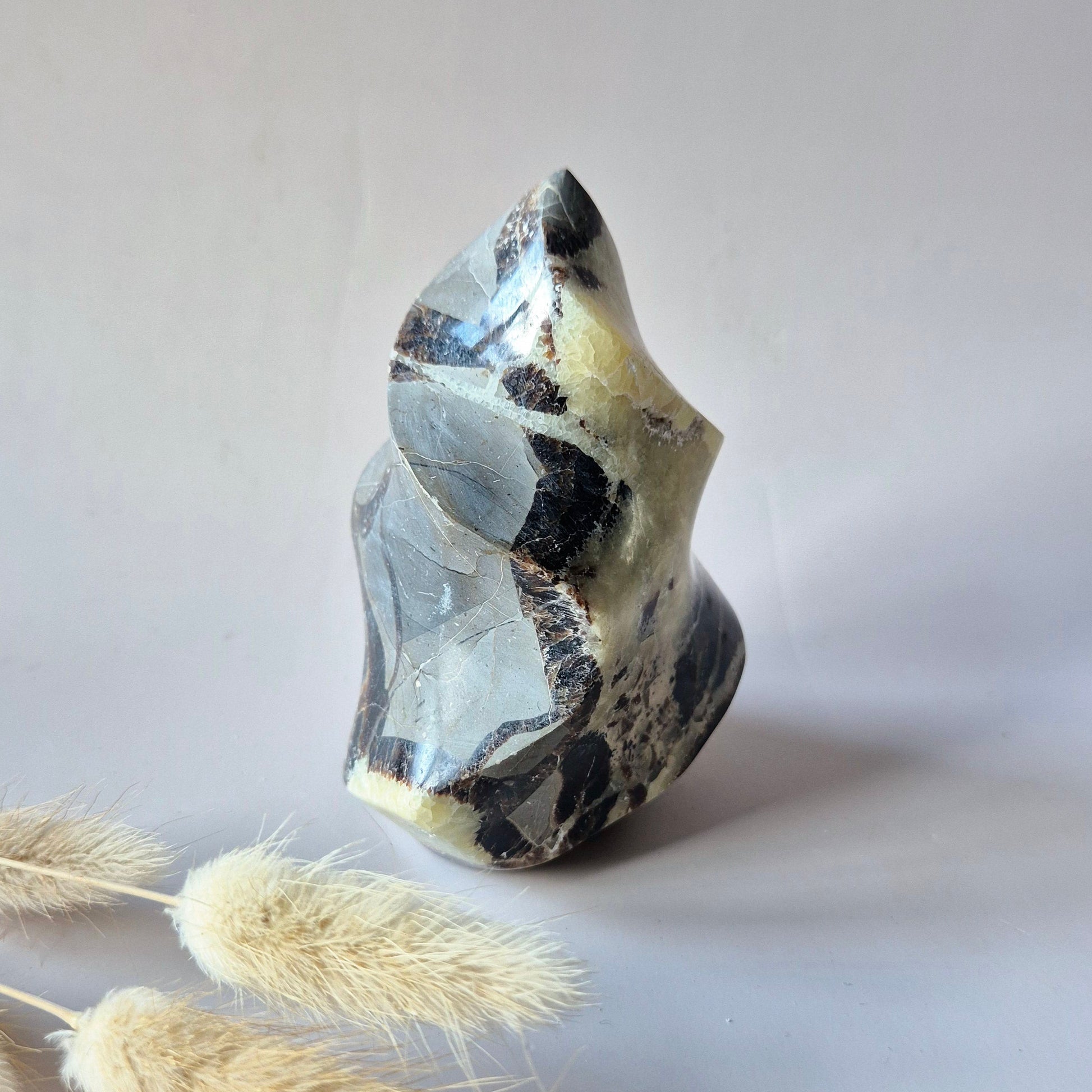 Blauer Mondstein gilt als Stein göttlicher weiblicher Energie und fördert die Entwicklung von Intuition, Manifestation und Neuanfängen. Die Flammenform symbolisiert Stärke, Transformation und spirituelle Erleuchtung. Daher eignen sich diese Stücke perfekt für Meditation, Energiearbeit und als kraftvolles Dekorationsstück.