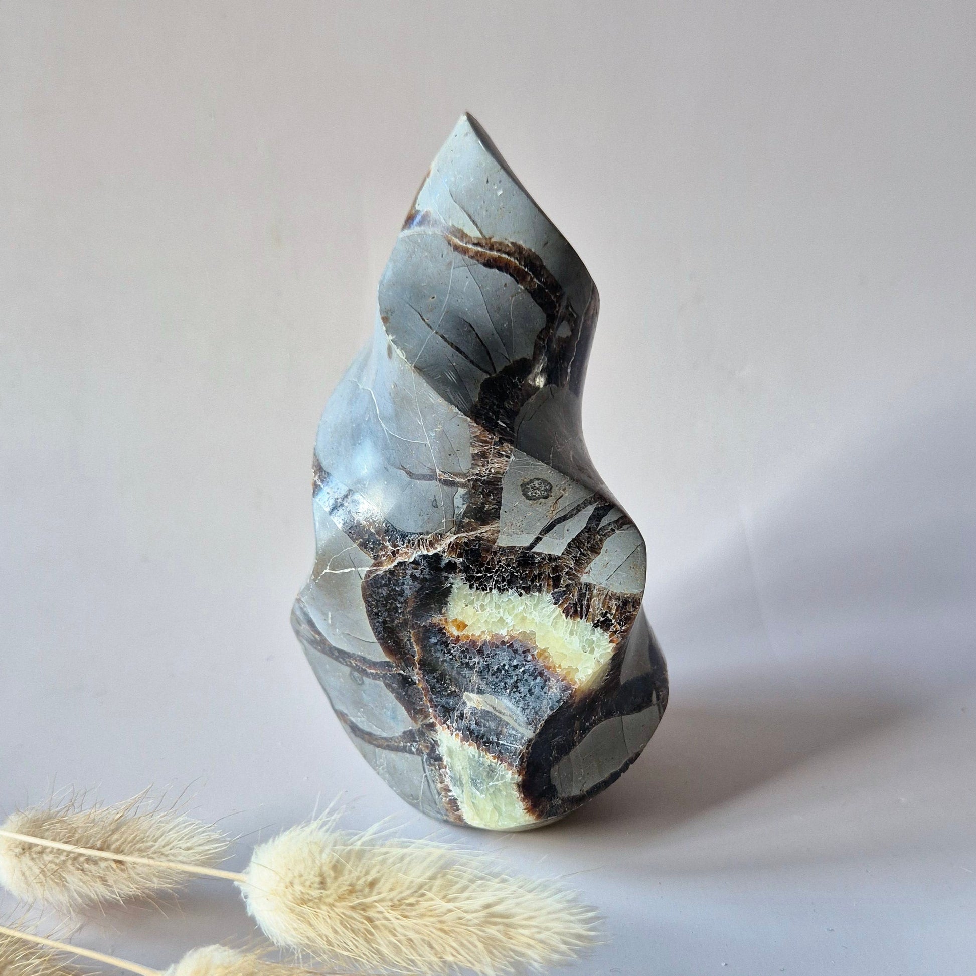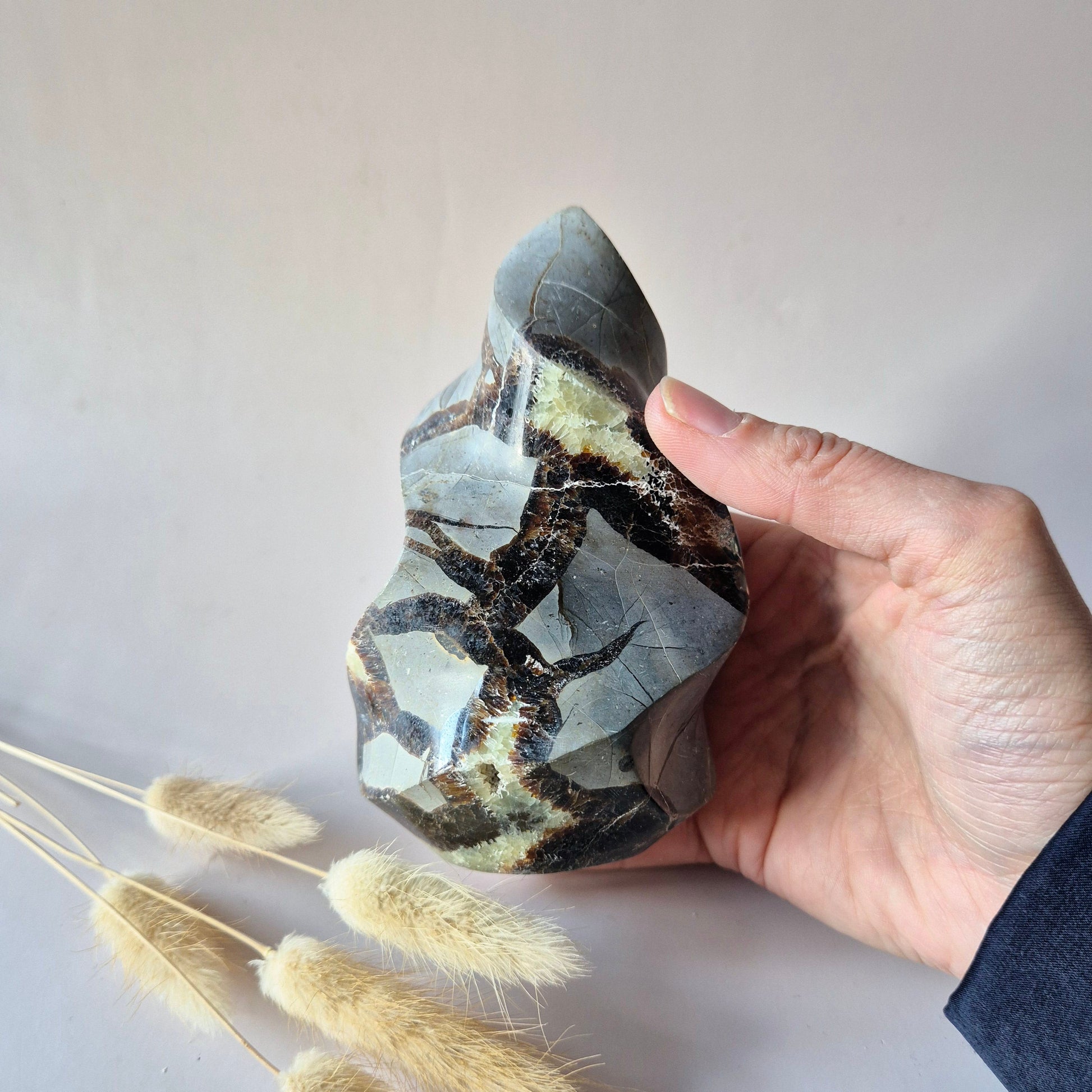 Blauer Mondstein gilt als Stein göttlicher weiblicher Energie und fördert die Entwicklung von Intuition, Manifestation und Neuanfängen. Die Flammenform symbolisiert Stärke, Transformation und spirituelle Erleuchtung. Daher eignen sich diese Stücke perfekt für Meditation, Energiearbeit und als kraftvolles Dekorationsstück.