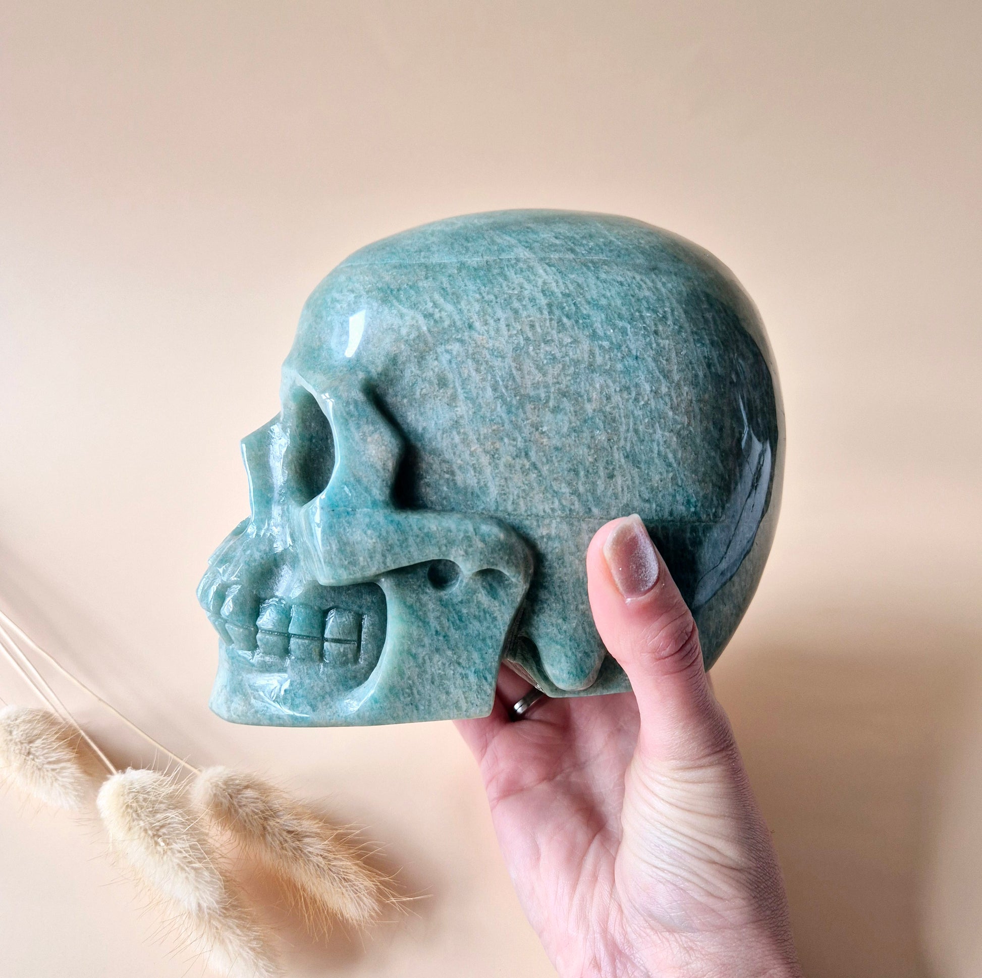 XL Edelsteinschädel Moosachatschädel Nr. 8 - 10cm 600 Gramm SchädelXXL Amazoniet Skull - 2560g