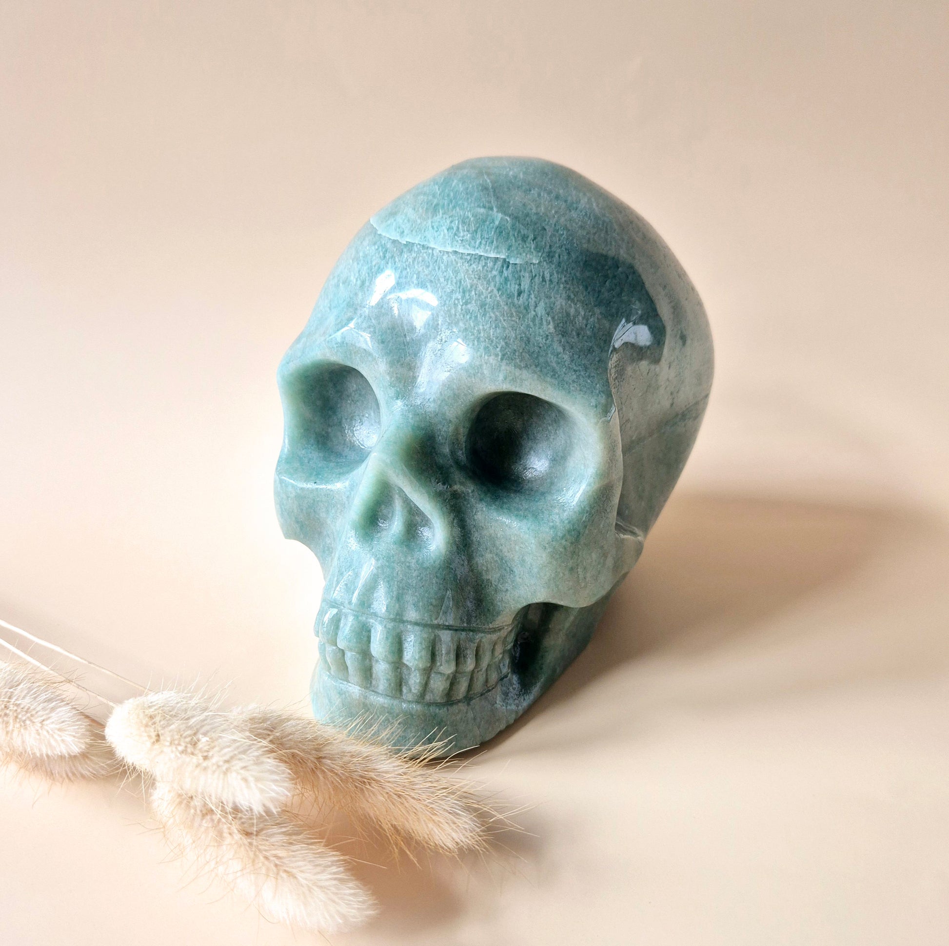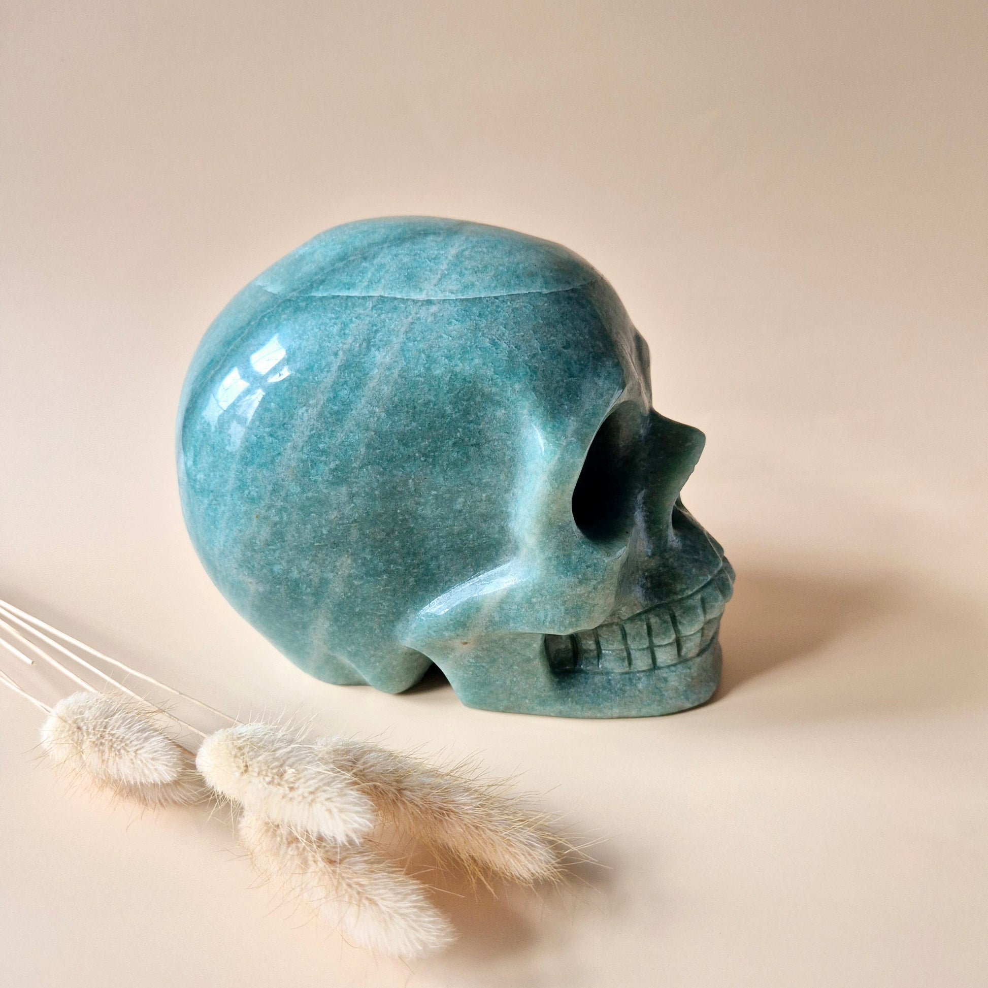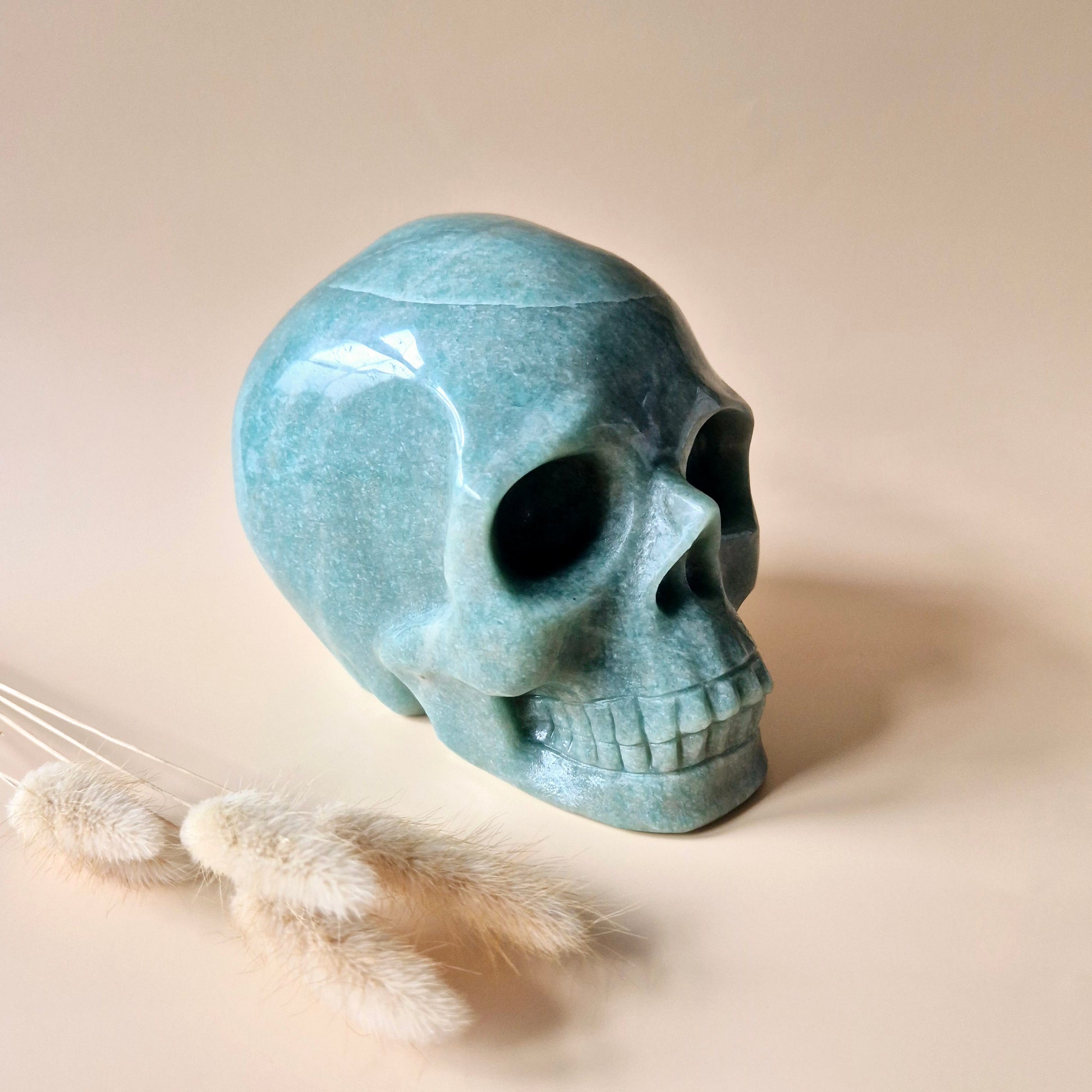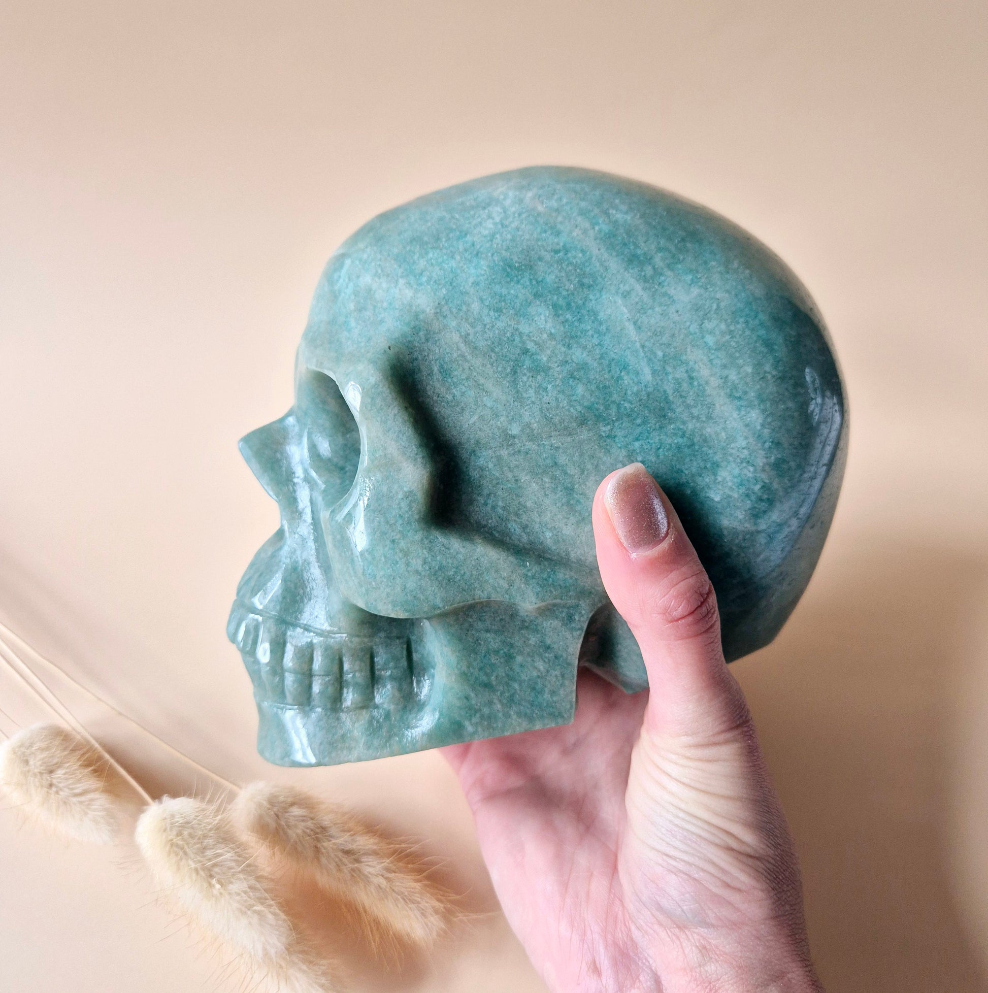 XL Edelsteinschädel Moosachatschädel Nr. 8 - 10cm 600 Gramm SchädelXXL Amazoniet Skull - 2781g