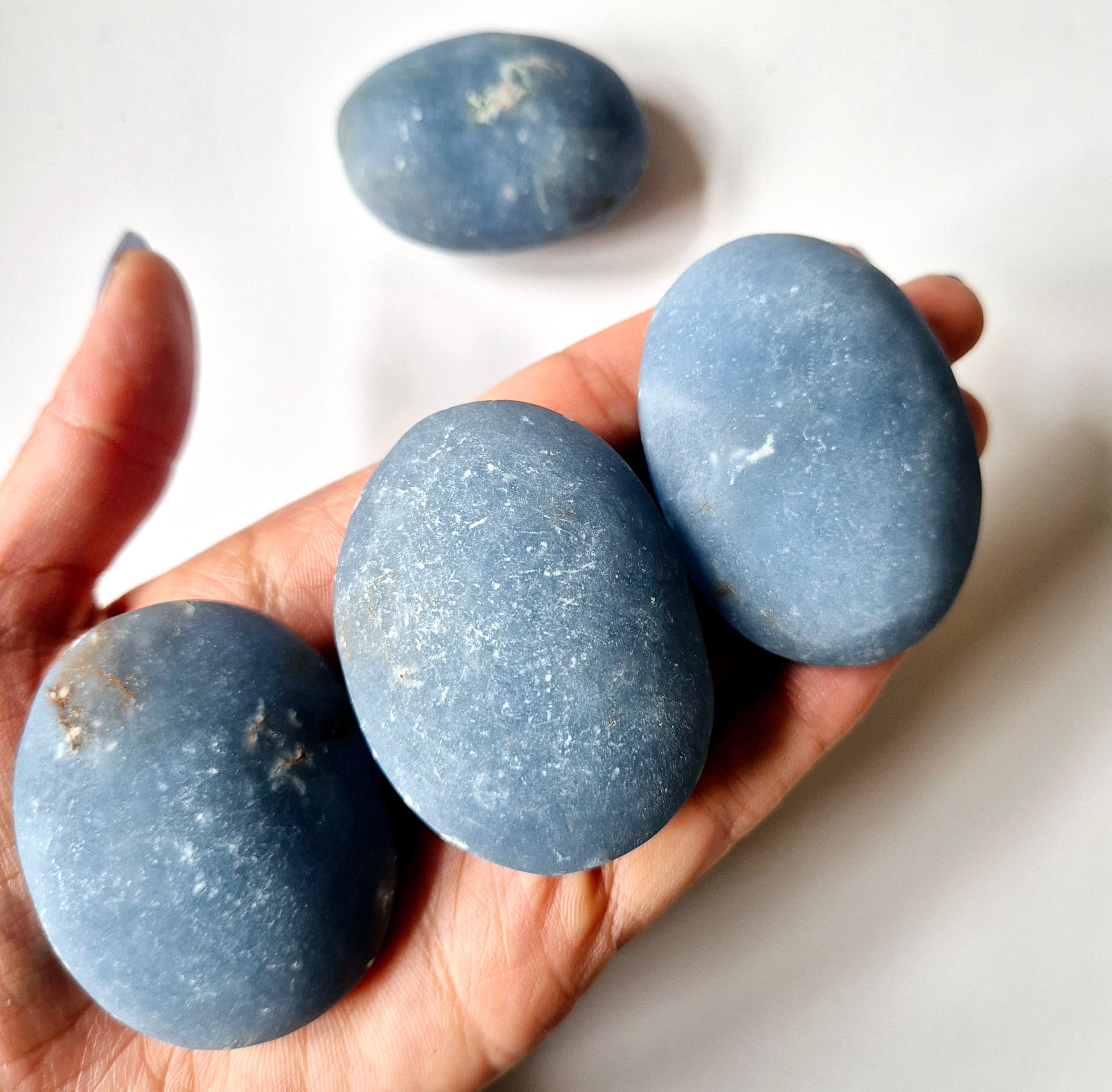 Crystal Angelite Palm Stone Stress Relief Healing Gift