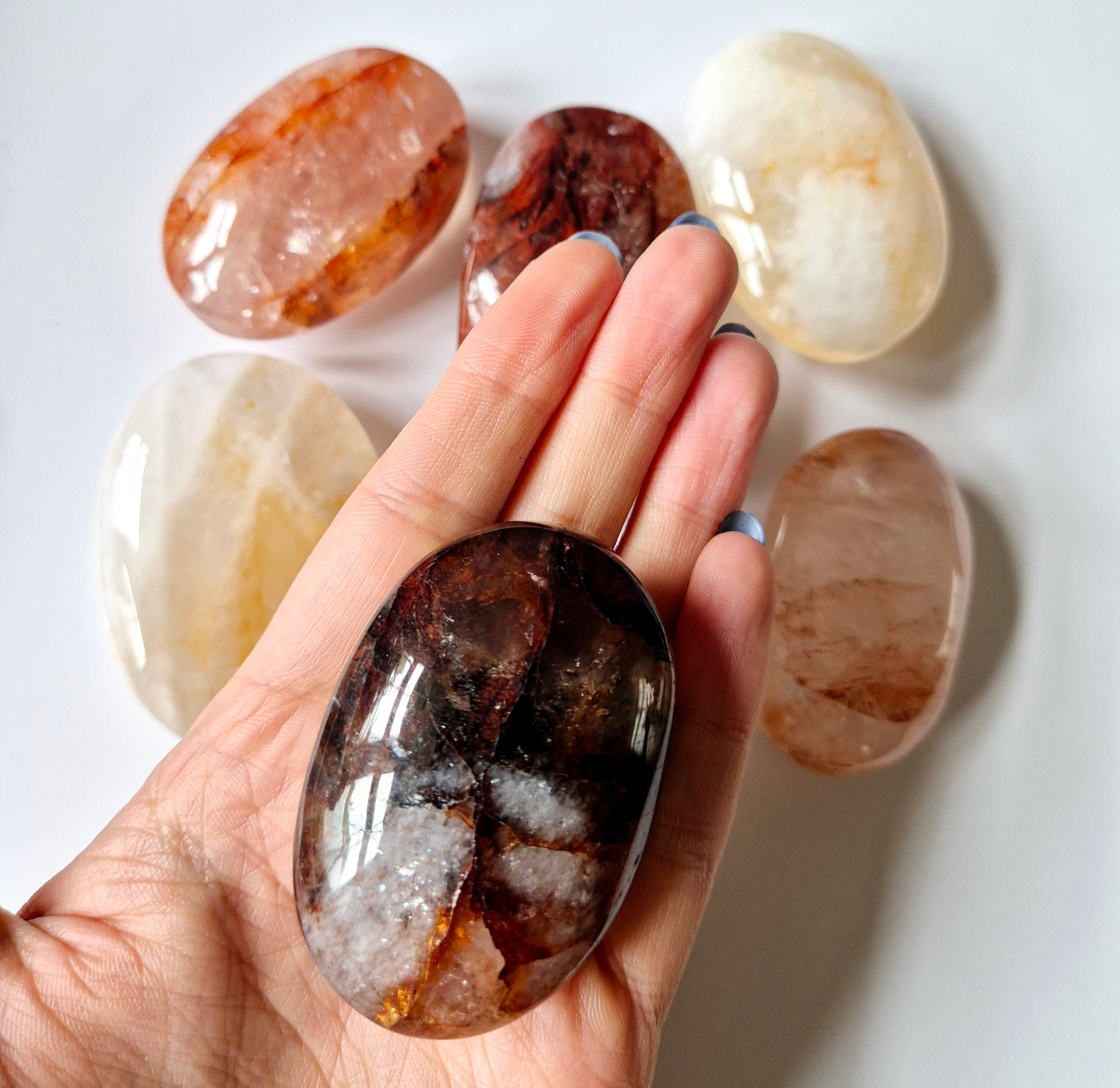 Crystal Fire Quartz Palm stone Stress Relief Healing Gift