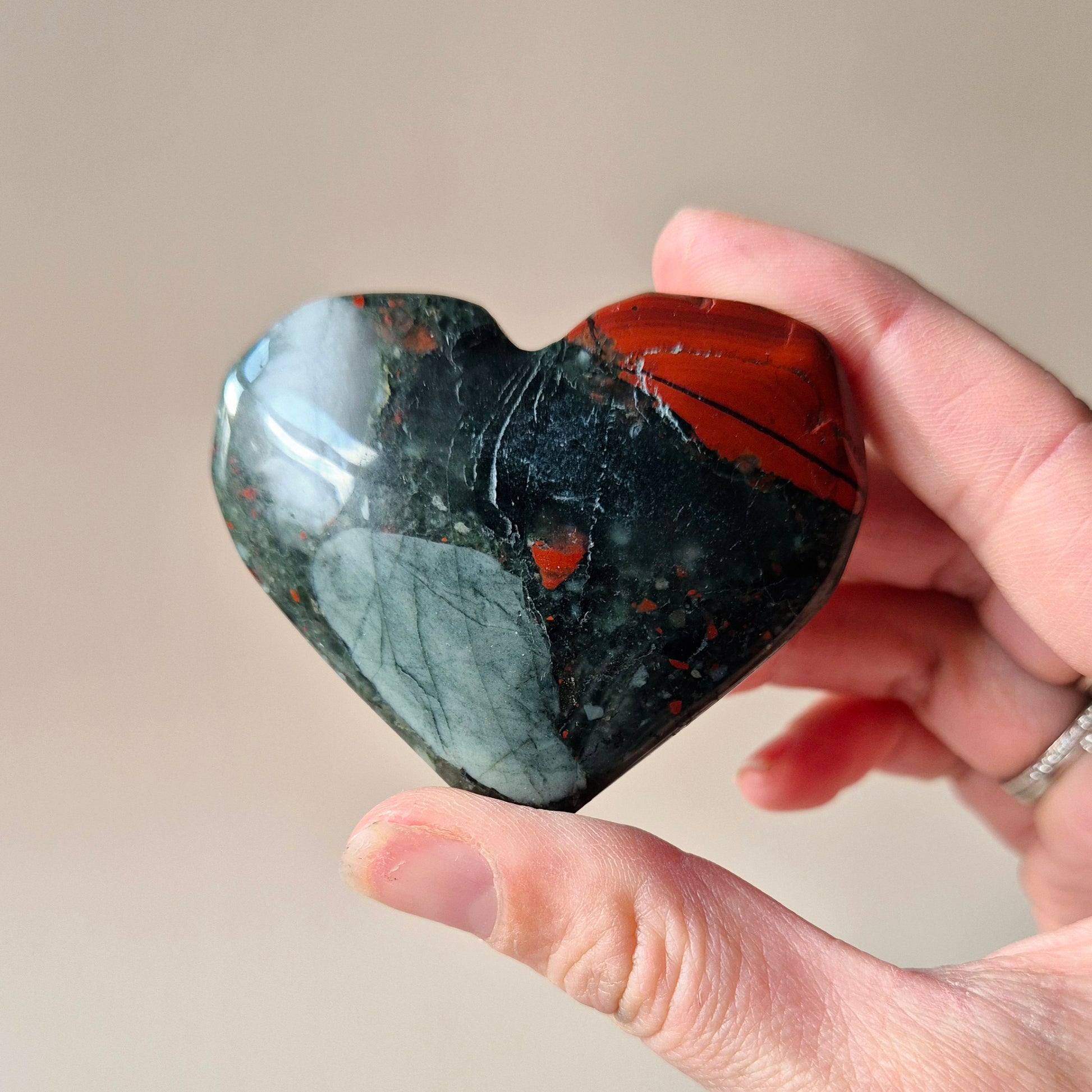 Gemstone African Bloodstone Heart Palmstone – Strength, Vitality & Grounding