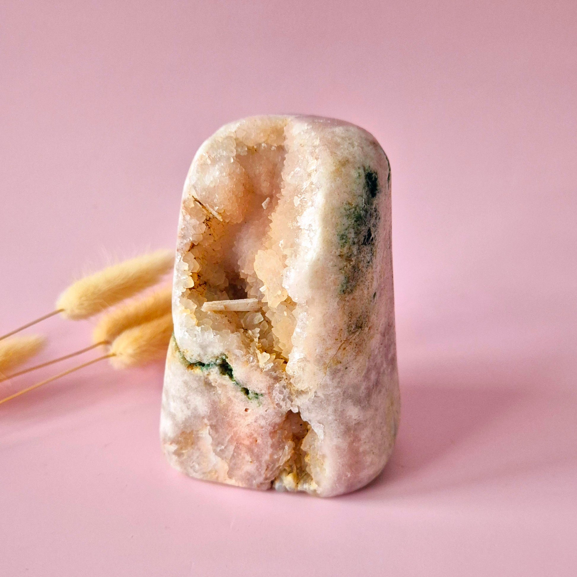 Gemstone Blue Moonstone Flame 7-9cm With Beautiful FlashDruzy Pink Amethist Freeform 715g