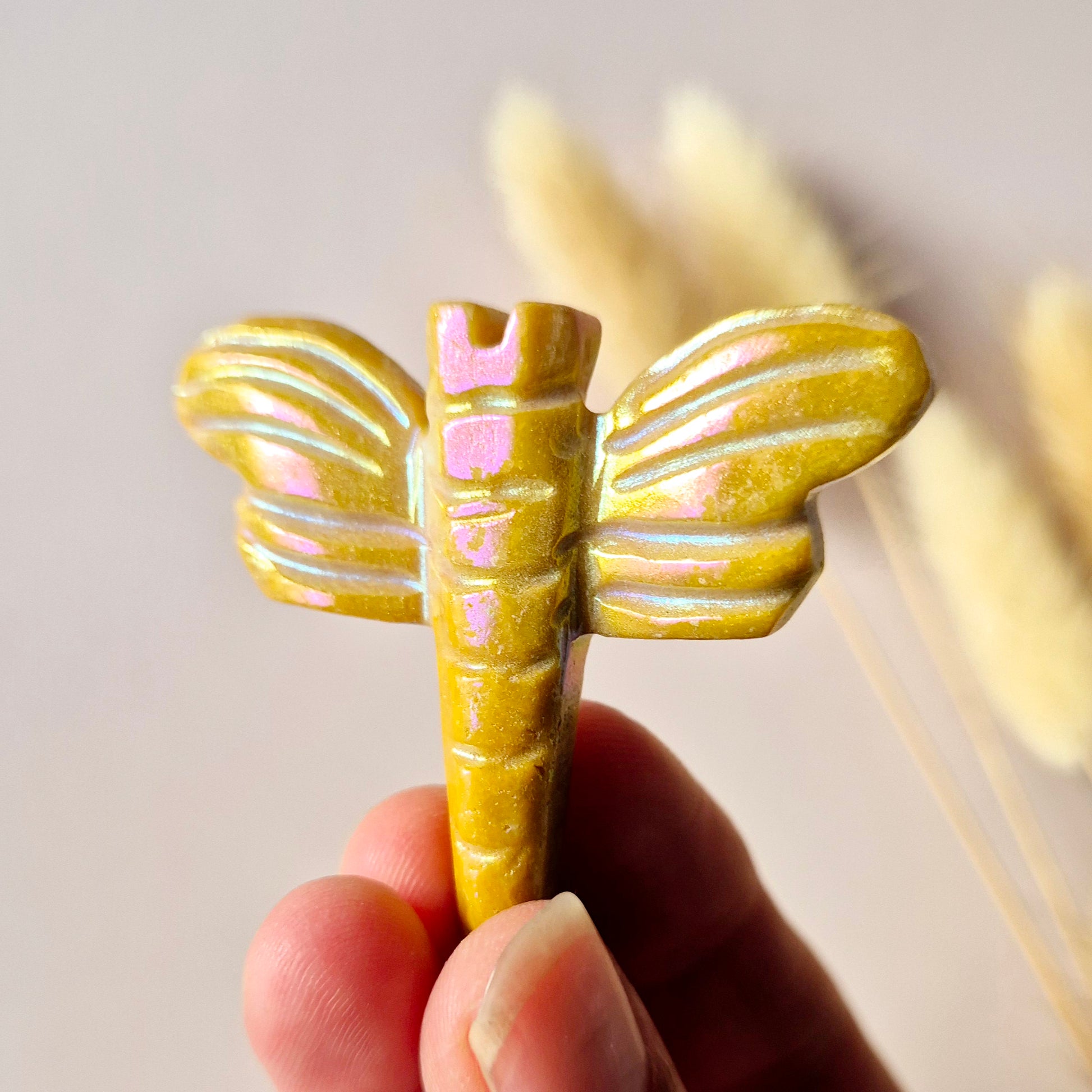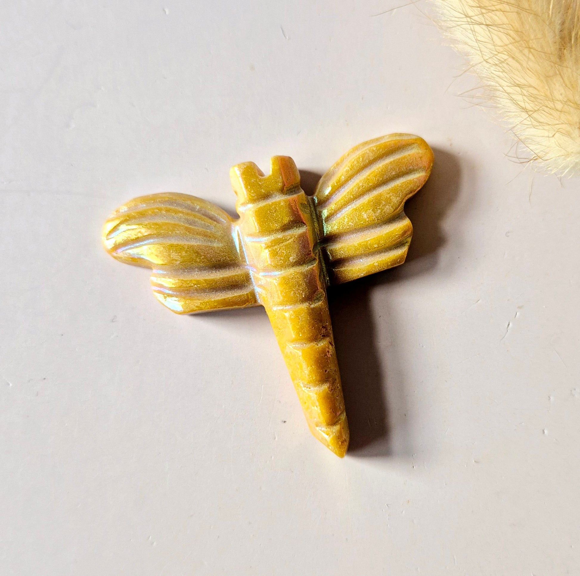 Angel Aura Libelle 5 cm – Gele Jade crystal carving in diverse steensoorten Edelsteen