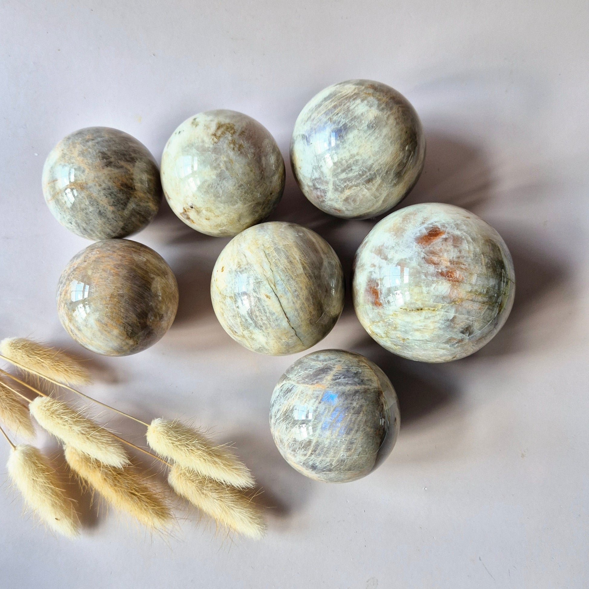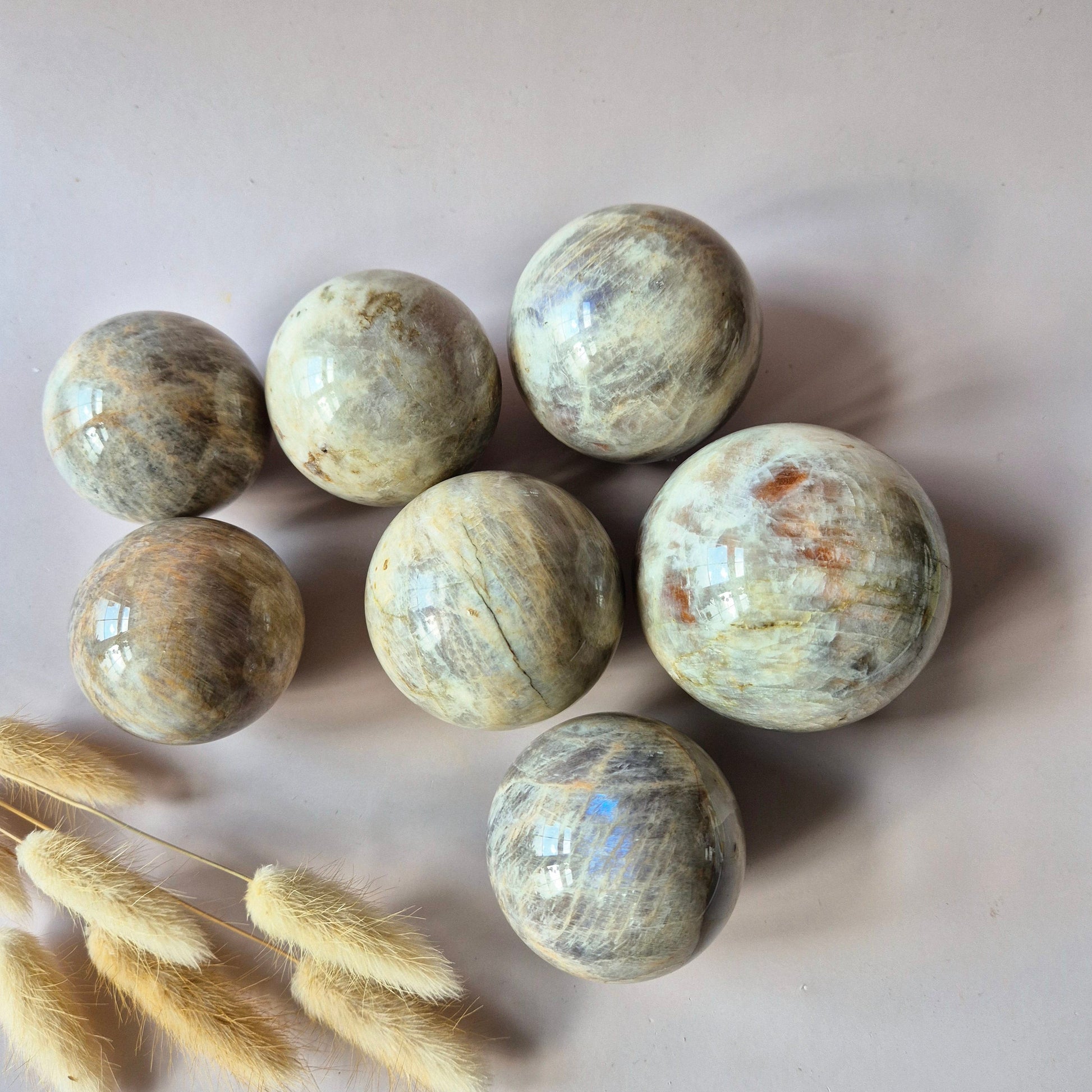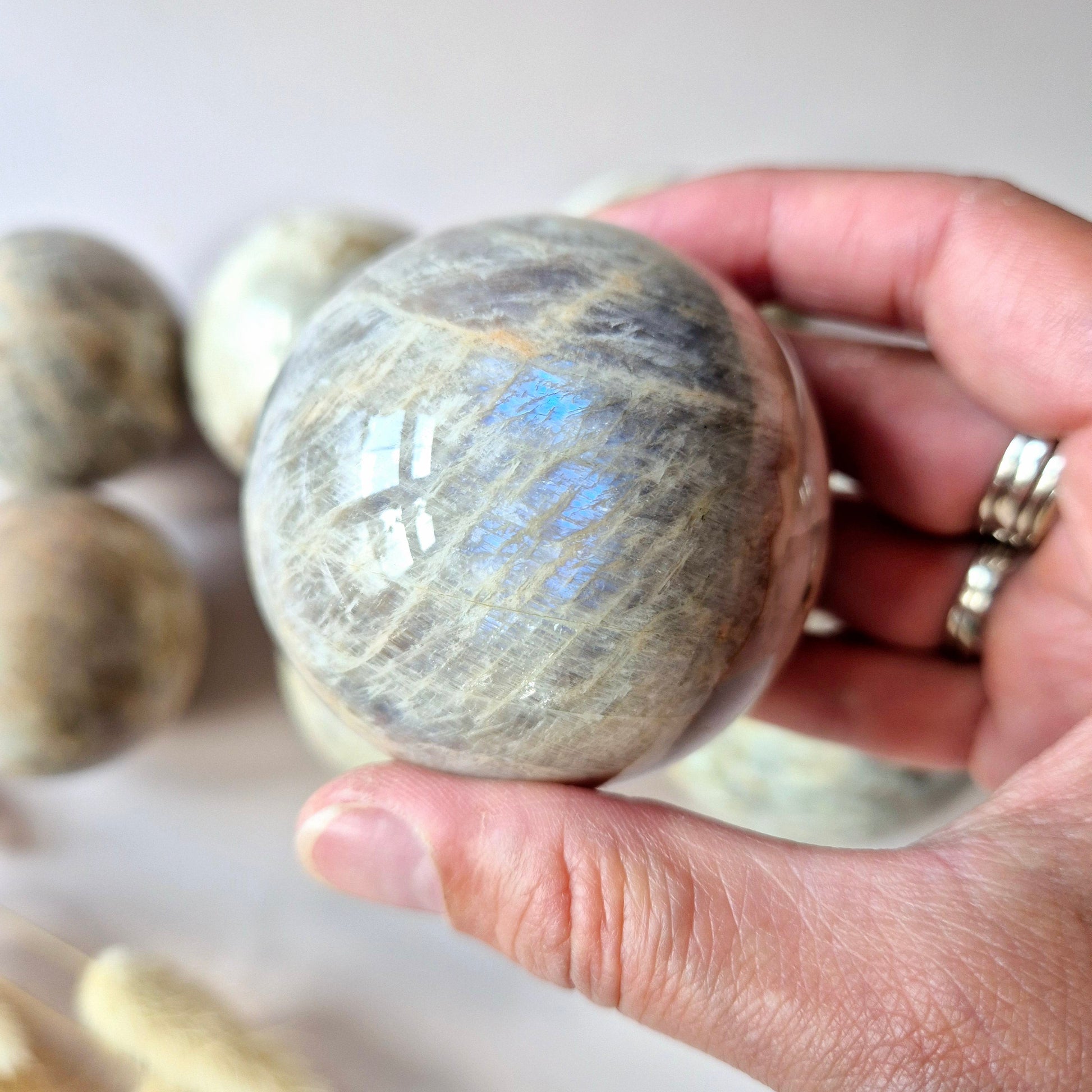 Blauwe Maansteen Bol (50-60mm) – Met Prachtige Flash