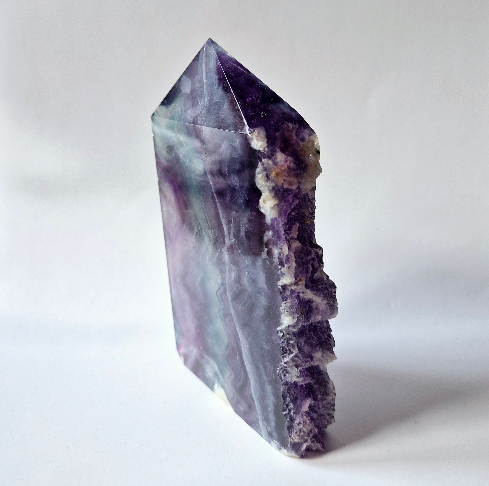 Candy Fluoriet staat bekend om zijn energie van helderheid, focus en balans. De combinatie van gepolijste en ruwe afwerking maakt deze stukken ideaal voor altaren, interieurobjecten of meditatie.