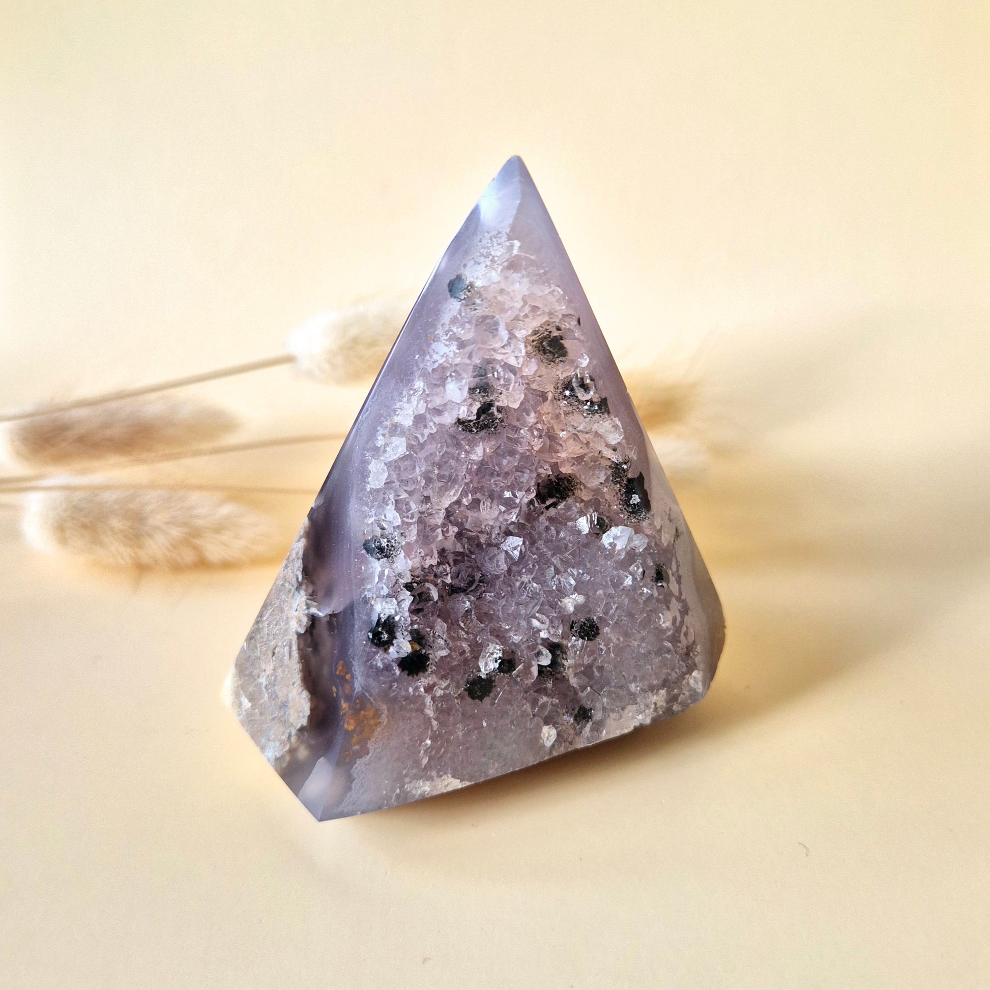 Druzy Agaat staat bekend om zijn aardende eigenschappen en het bevorderen van innerlijke balans, doordat de gestileerde vorm symbool staat voor beweging, groei en spirituele vernieuwing. Deze grijze agaat stenen zijn ideaal als meditatiesteen, energiek decoratiestuk of als uniek element in jouw kristalcollectie.