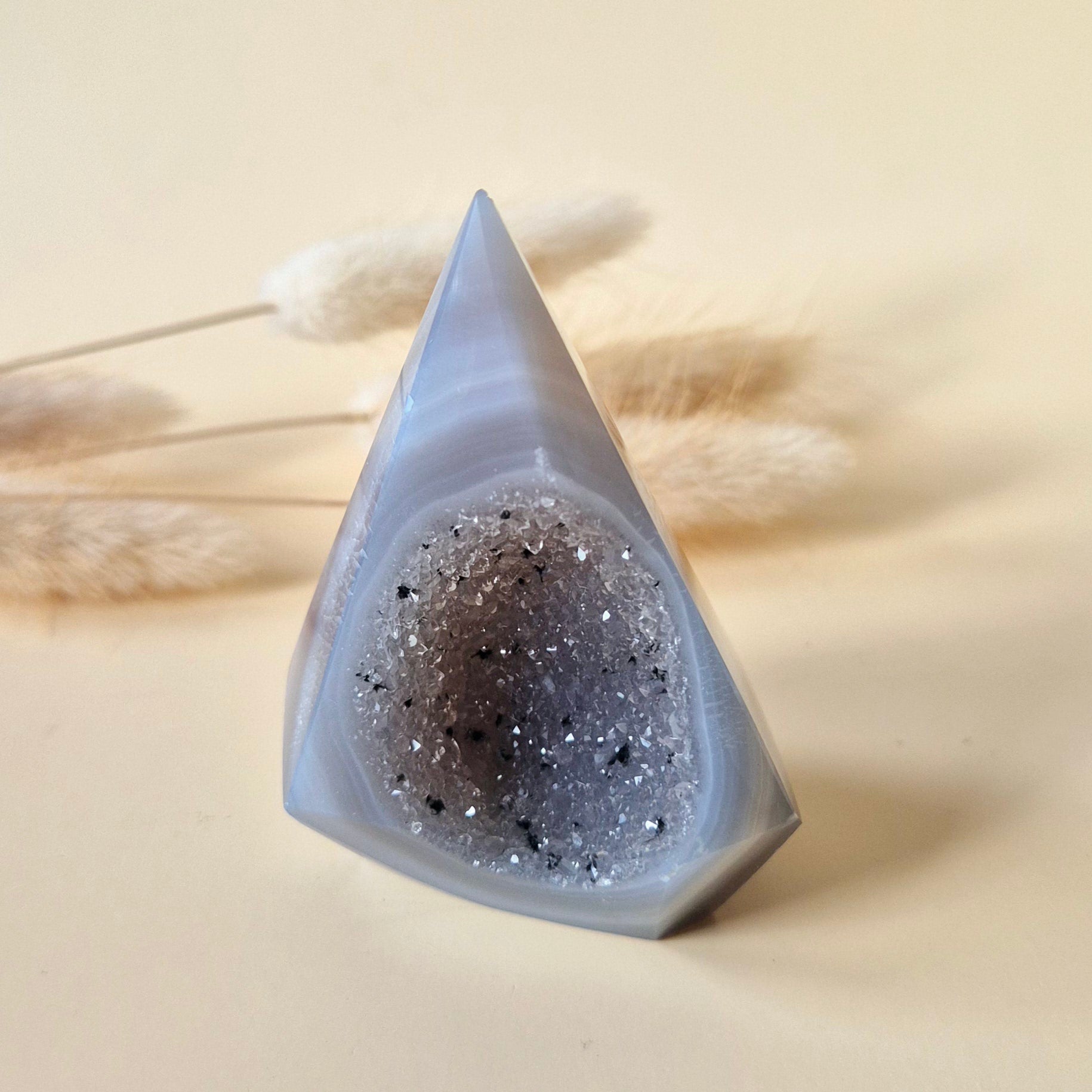 Druzy Agaat staat bekend om zijn aardende eigenschappen en het bevorderen van innerlijke balans, doordat de gestileerde vorm symbool staat voor beweging, groei en spirituele vernieuwing. Deze grijze agaat stenen zijn ideaal als meditatiesteen, energiek decoratiestuk of als uniek element in jouw kristalcollectie.