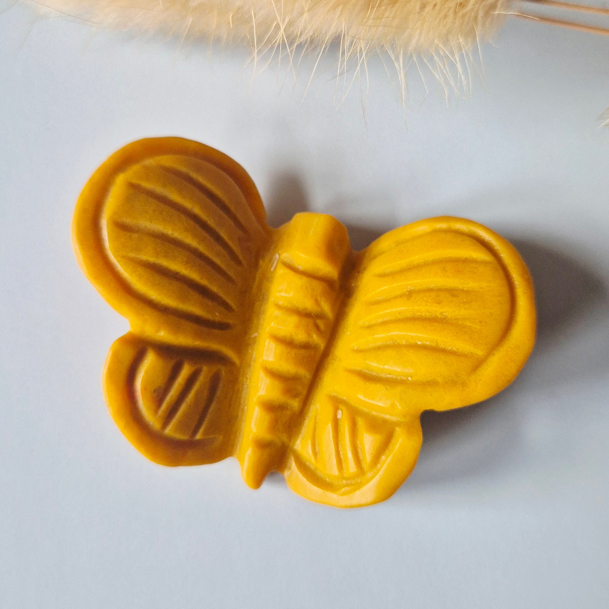 Edelsteen 3D Vlinder 6x5 cm – Gele Jade (Ronde vleugels)