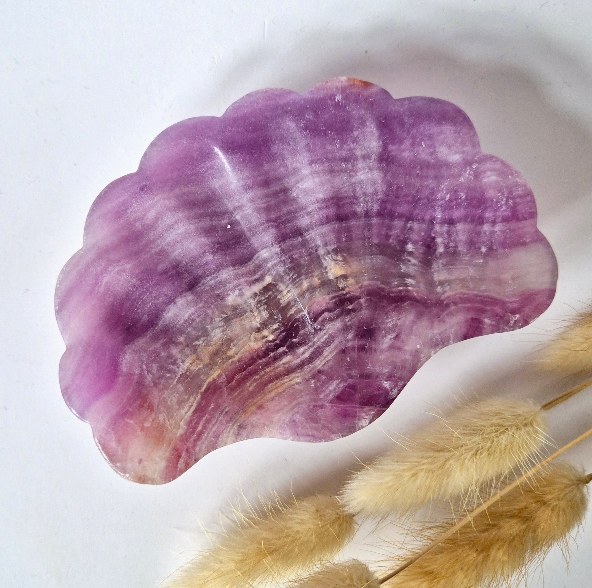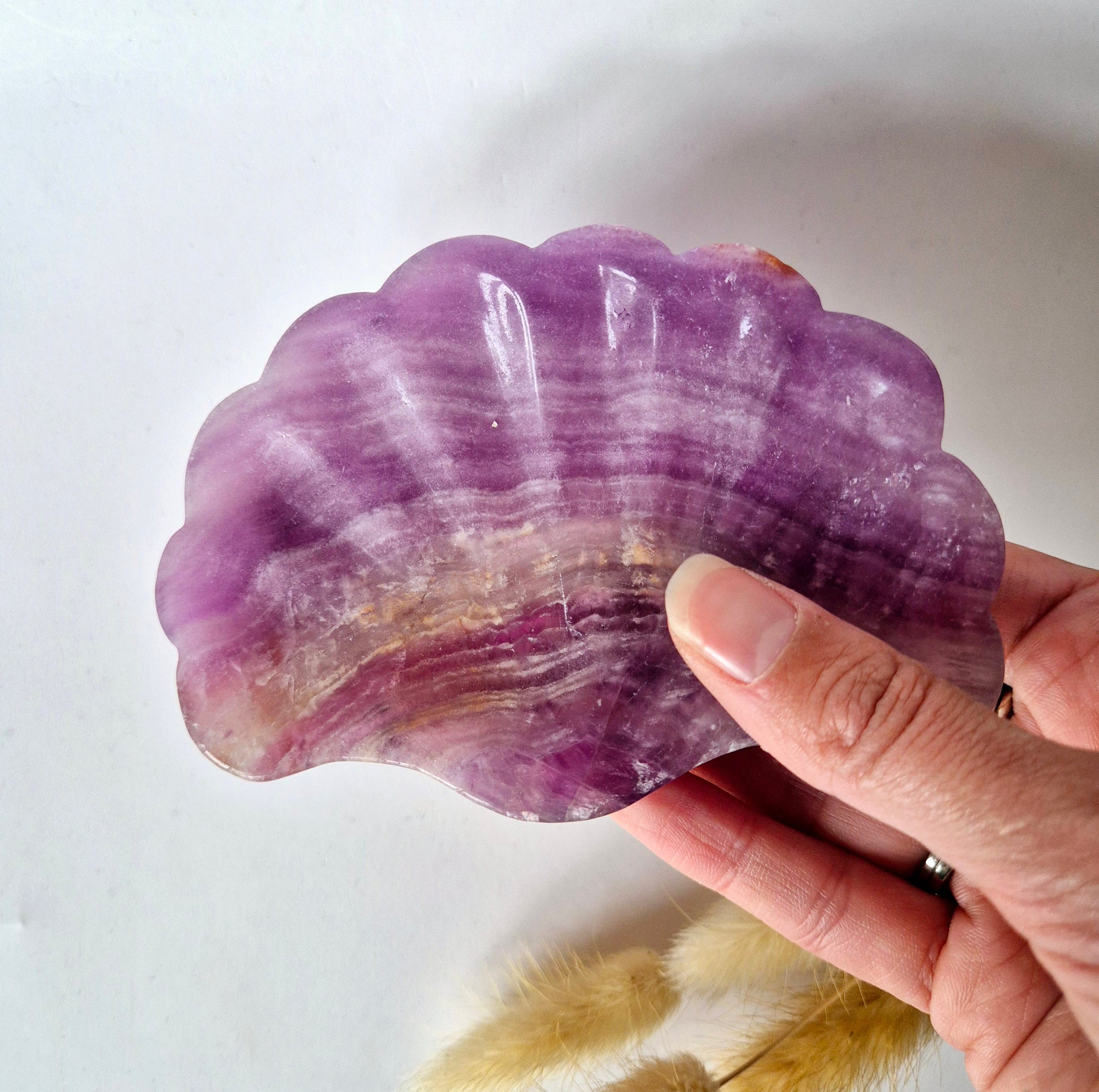 Edelsteen Carving Schaal Schelpvorm Candy Fluoriet #14 - Uniek Cadeau