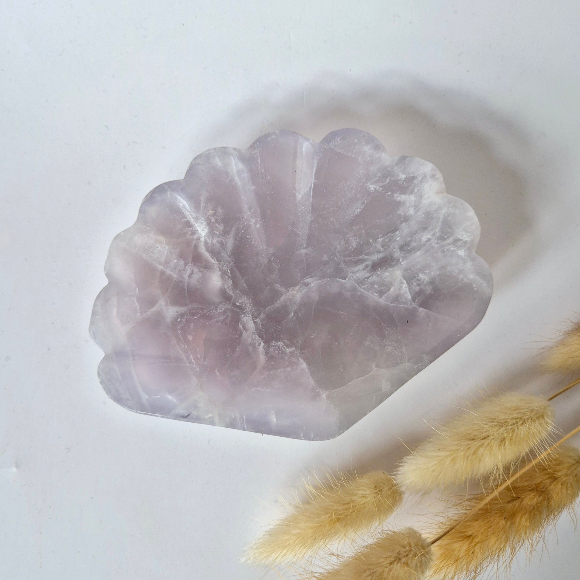 Edelsteen Carving Schaal Schelpvorm Fluoriet #22 - Uniek Cadeau