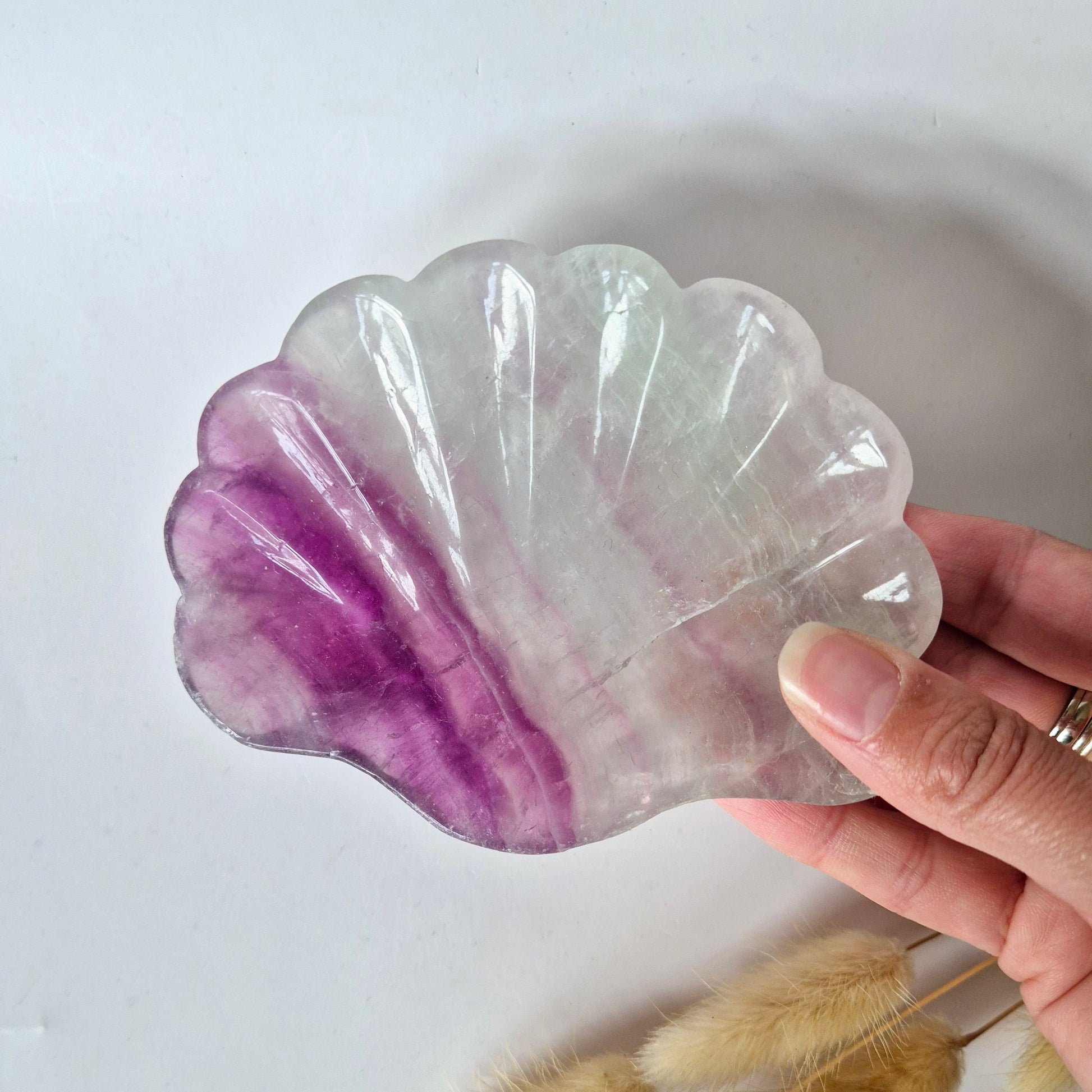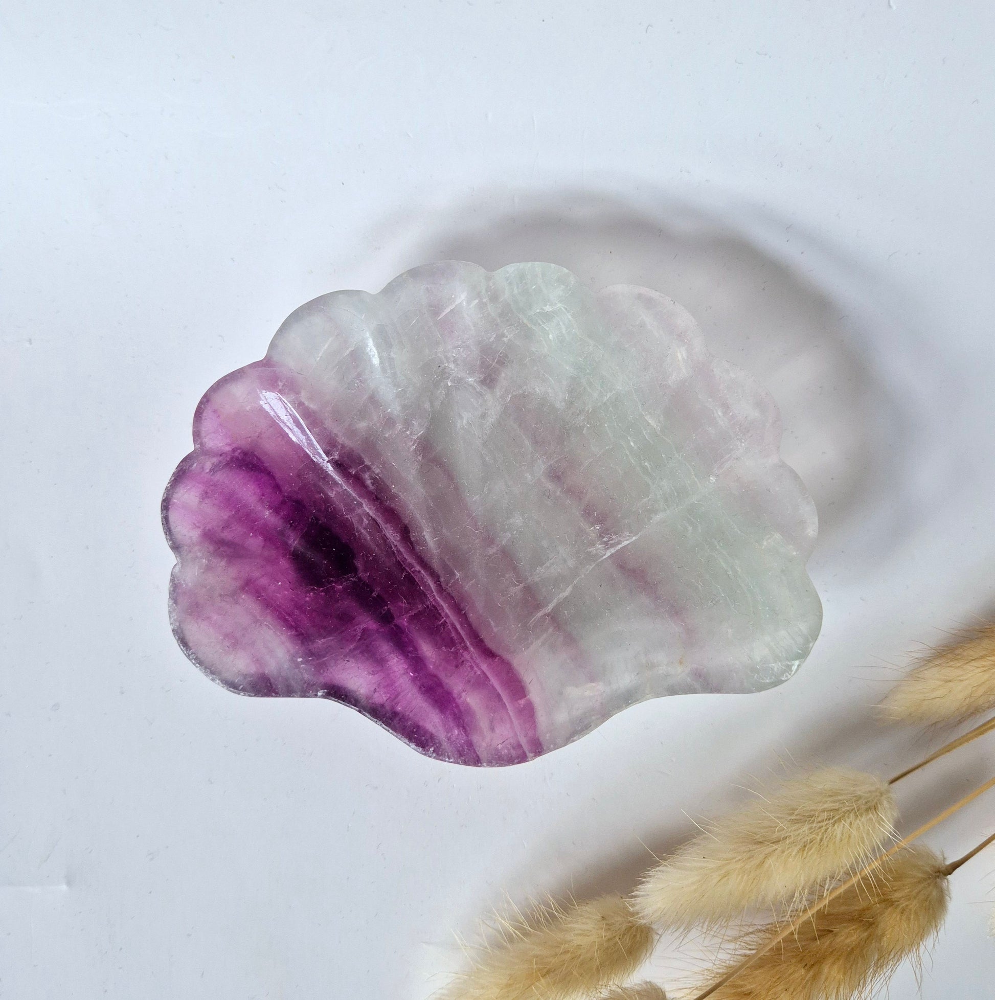 Edelsteen Carving Schaal Schelpvorm Fluoriet #8 - Uniek Cadeau