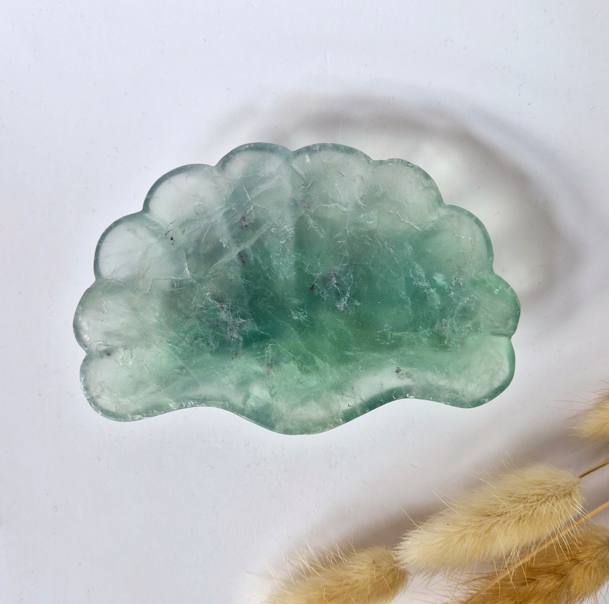 Edelsteen Carving Schaal Schelpvorm Groene Fluoriet #9 - Uniek Cadeau