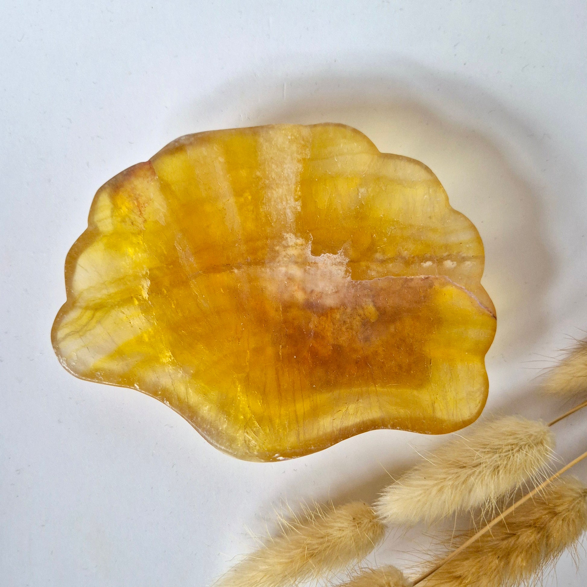Edelsteen Carving Schaal Schelpvorm Gele Fluoriet #25 - Uniek Cadeau