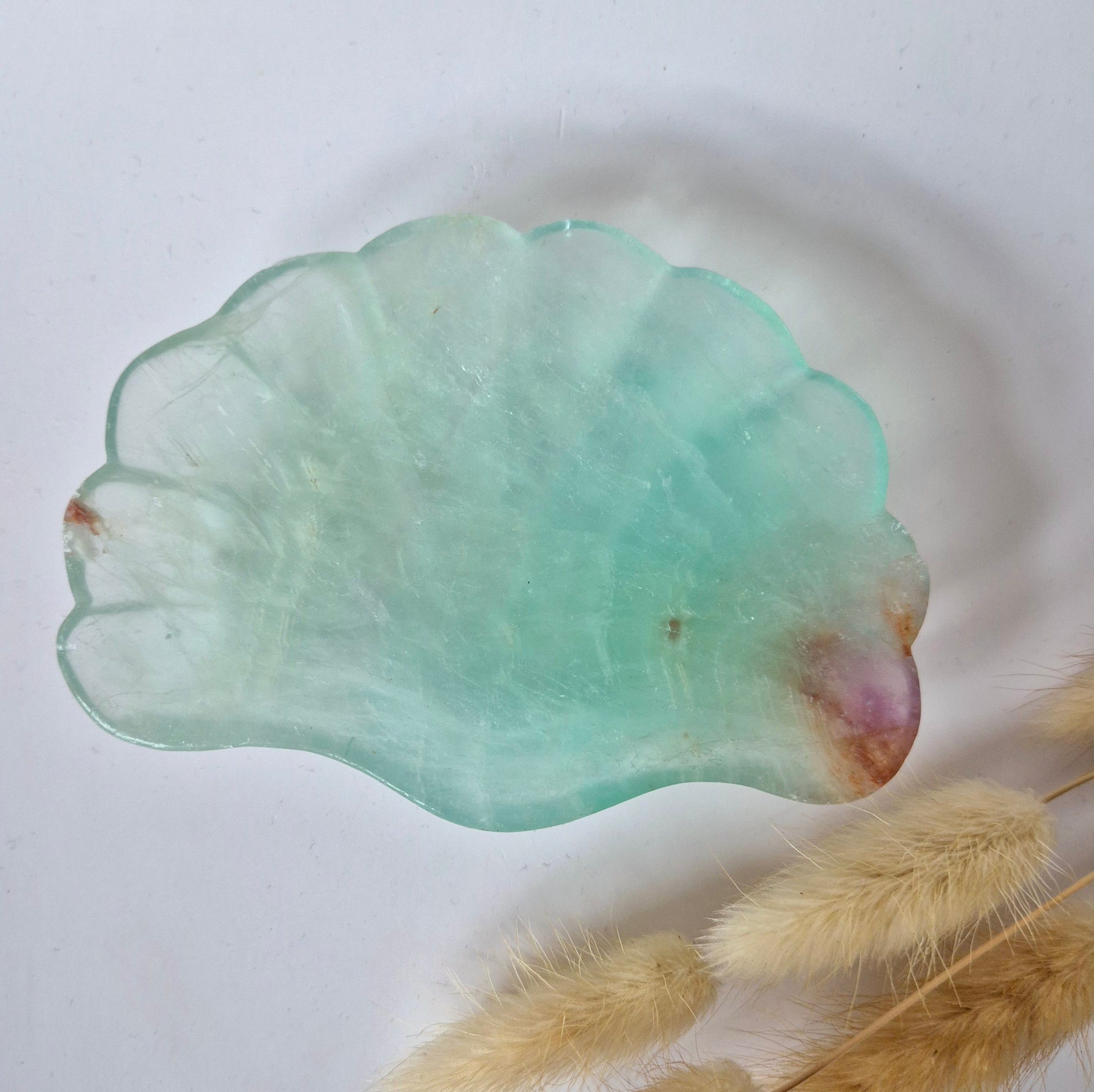 Edelsteen Carving Schaal Schelpvorm Groene Fluoriet #24 - Uniek Cadeau