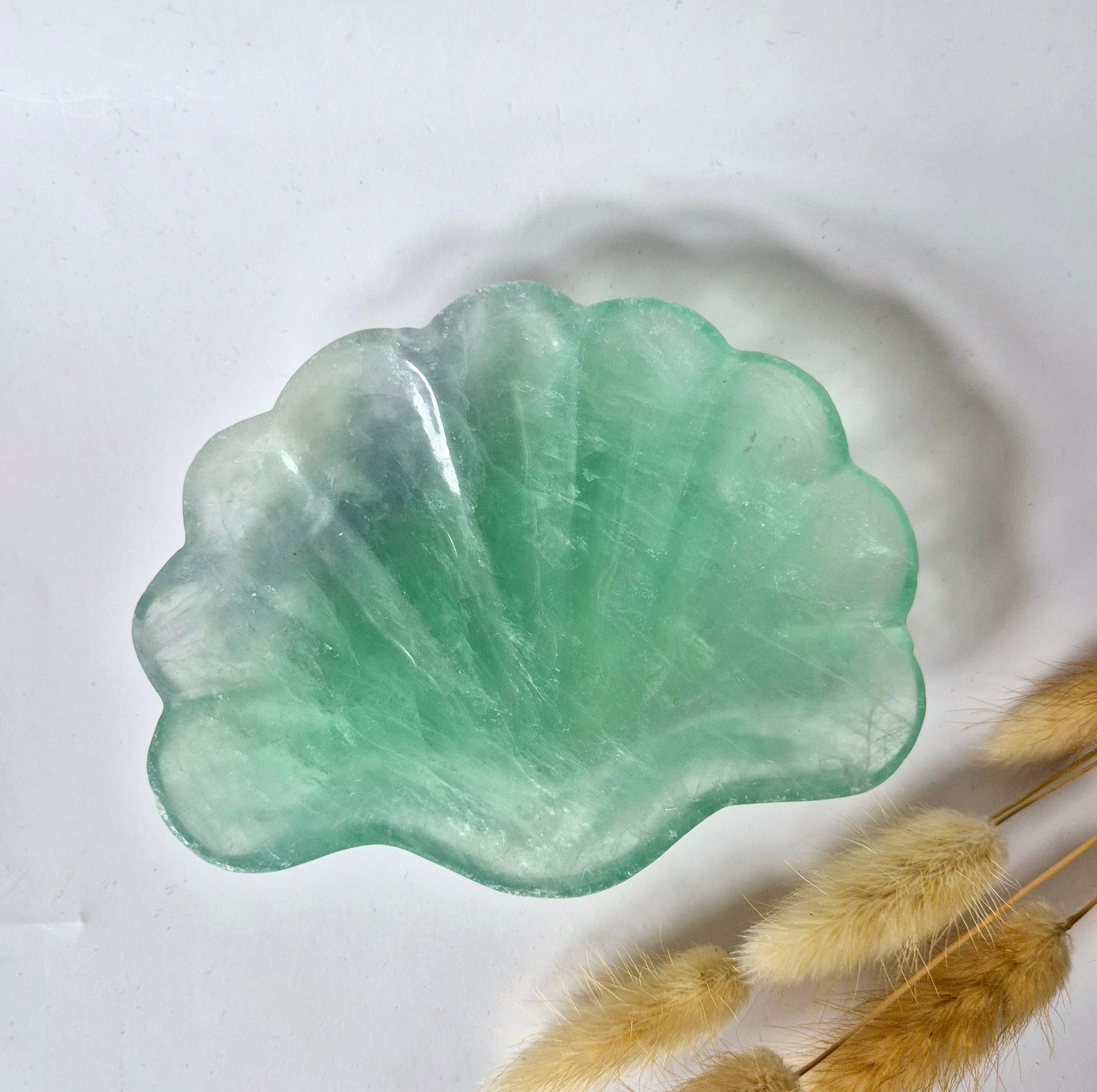 Edelsteen Carving Schaal Schelpvorm Groene Fluoriet #30 - Uniek Cadeau