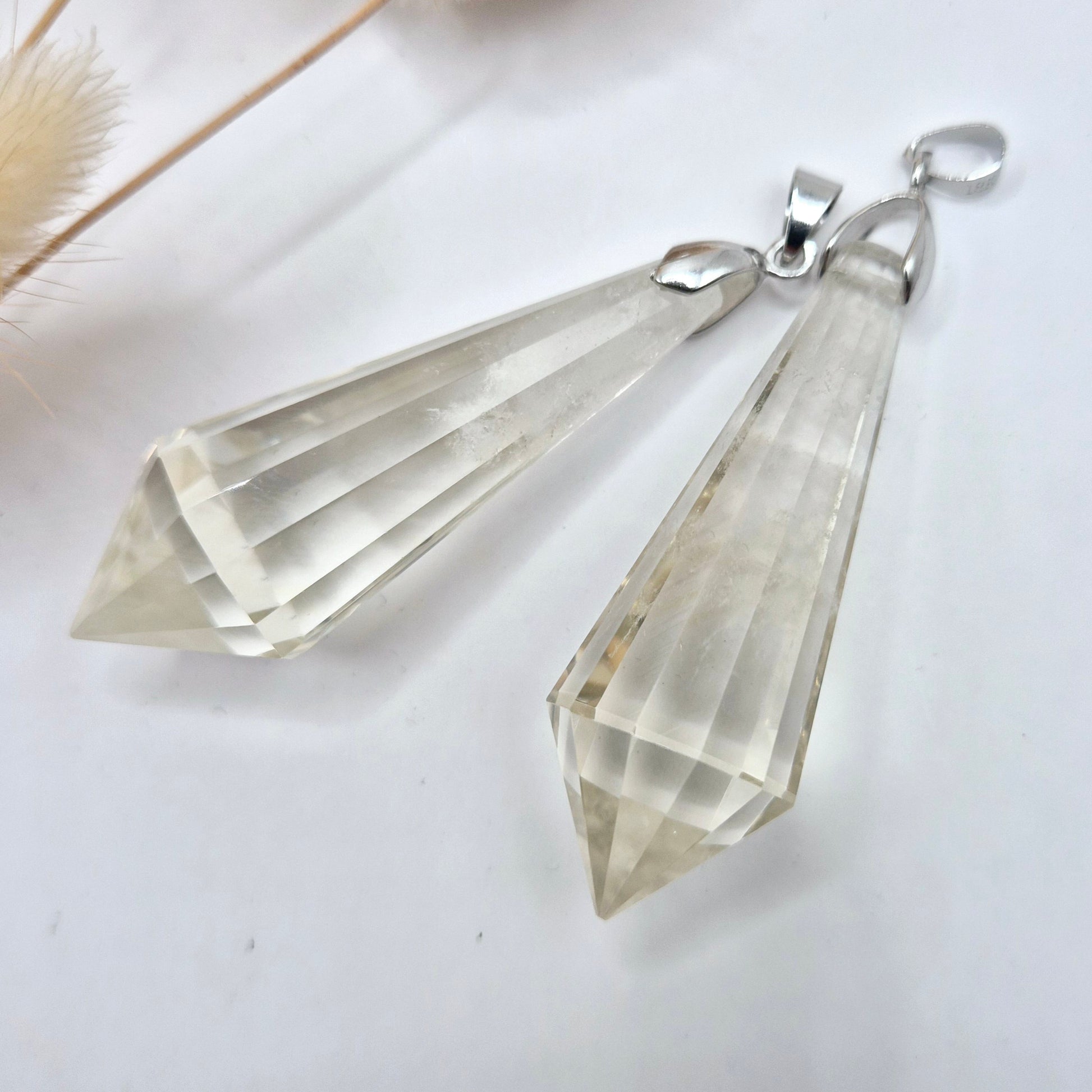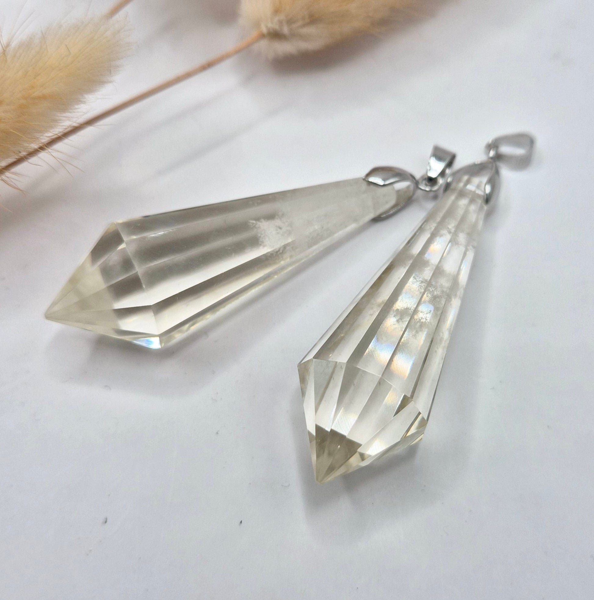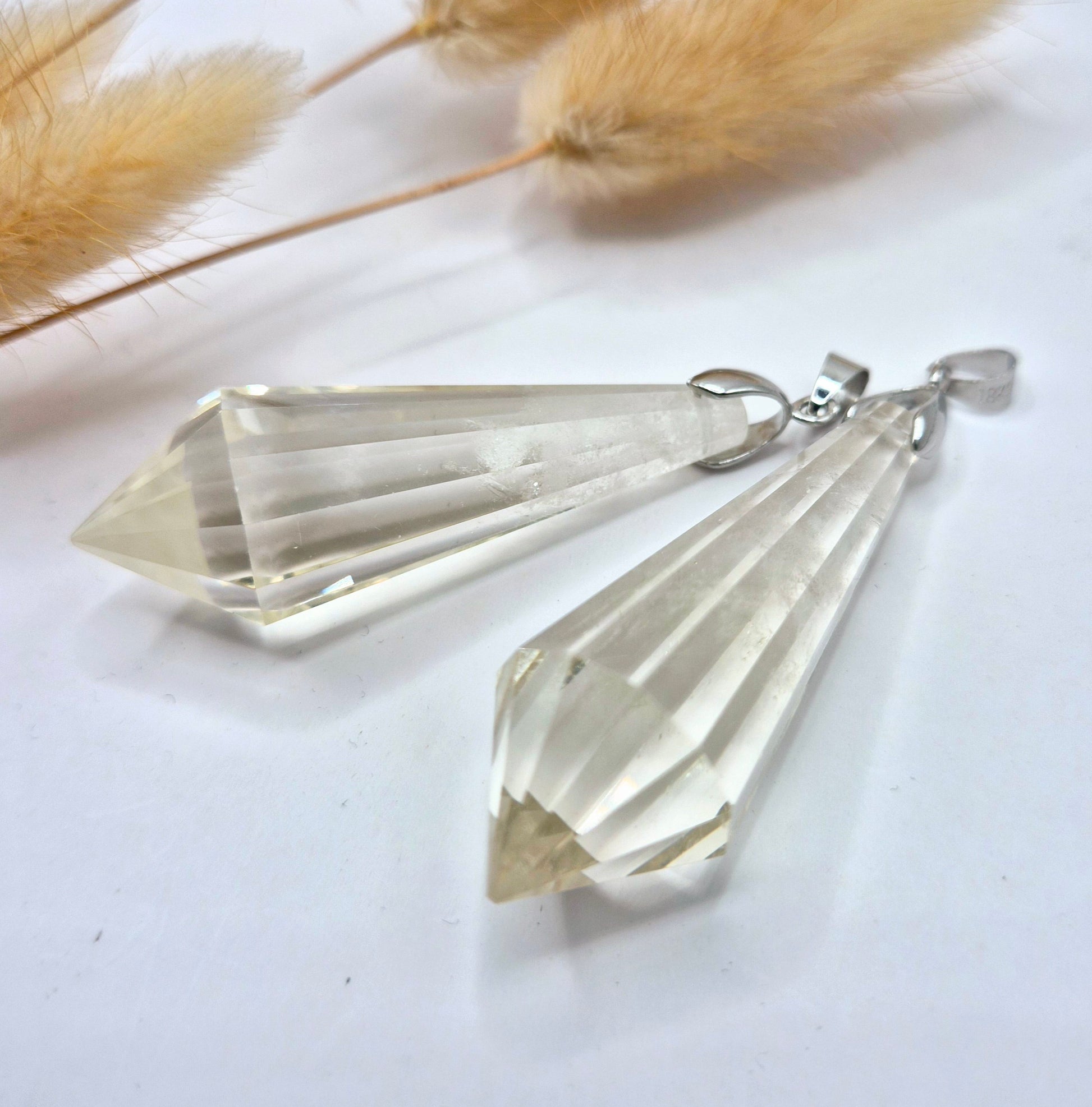 De dubbele punt en gefacetteerde vorm versterken de energie-doorstroming, waardoor deze Vogel kristal hanger perfect is voor: