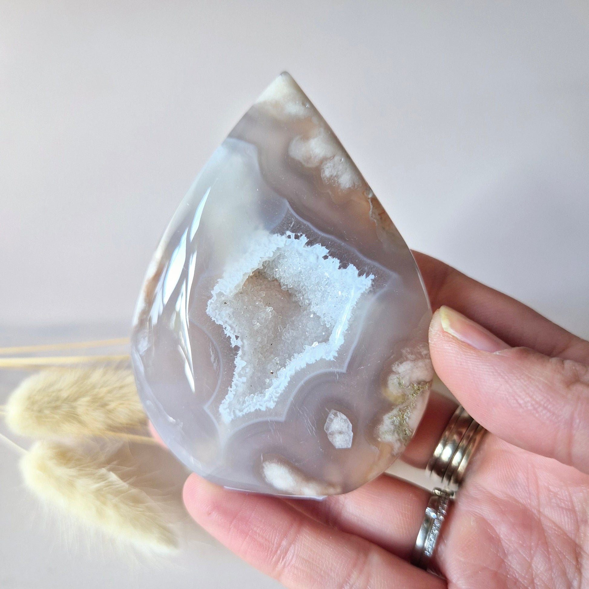 Pink Amethist staat bekend om haar kalmerende en beschermende energie. Ze opent het hartchakra, bevordert zelfliefde, en helpt je om met meer rust en vertrouwen in het leven te staan. Dit stuk is niet alleen energetisch waardevol, maar ook een esthetisch sieraad voor je interieur, altaar of meditatieplek.