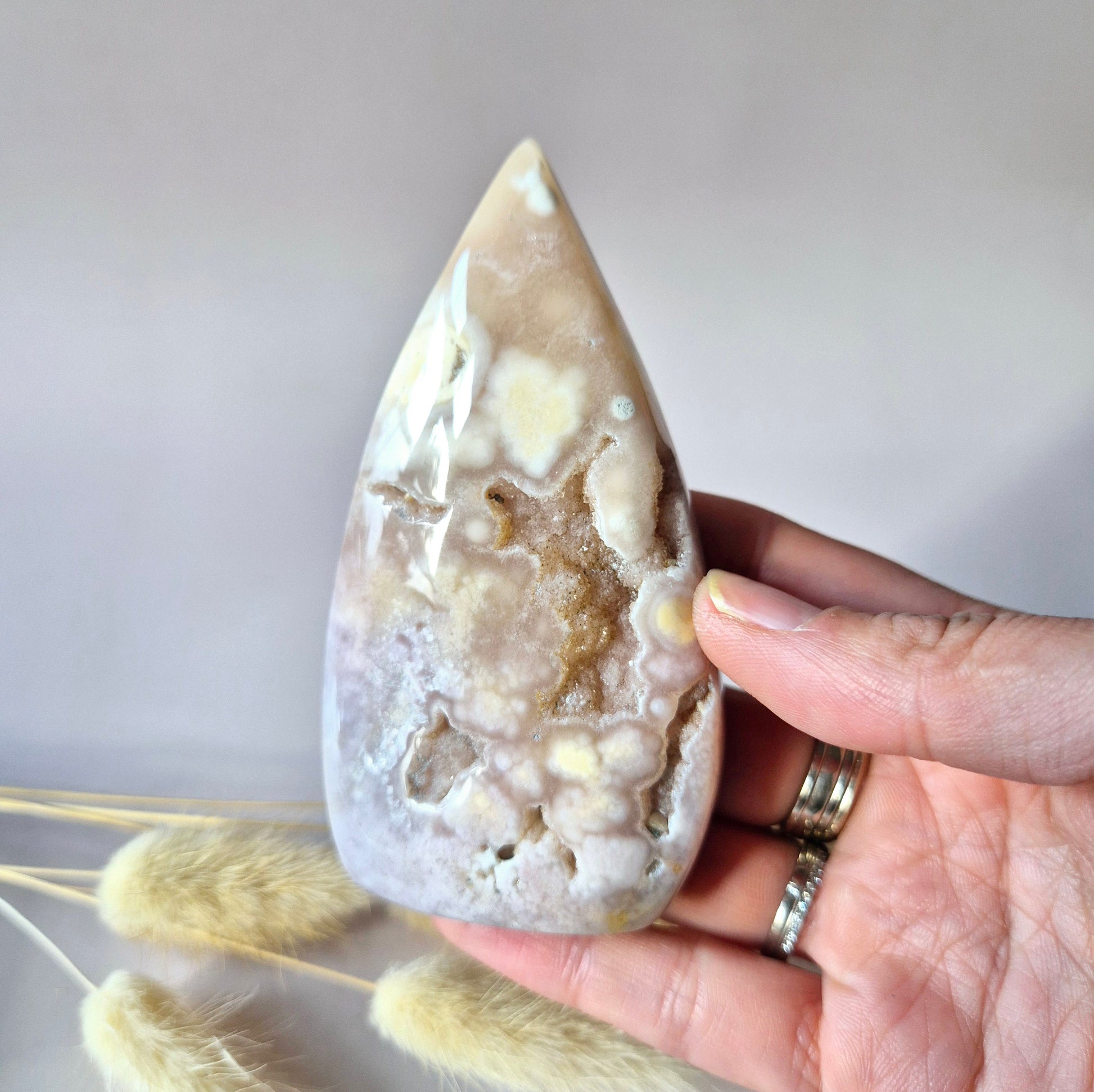 Pink Amethist staat bekend om haar kalmerende en beschermende energie. Ze opent het hartchakra, bevordert zelfliefde, en helpt je om met meer rust en vertrouwen in het leven te staan. Dit stuk is niet alleen energetisch waardevol, maar ook een esthetisch sieraad voor je interieur, altaar of meditatieplek.