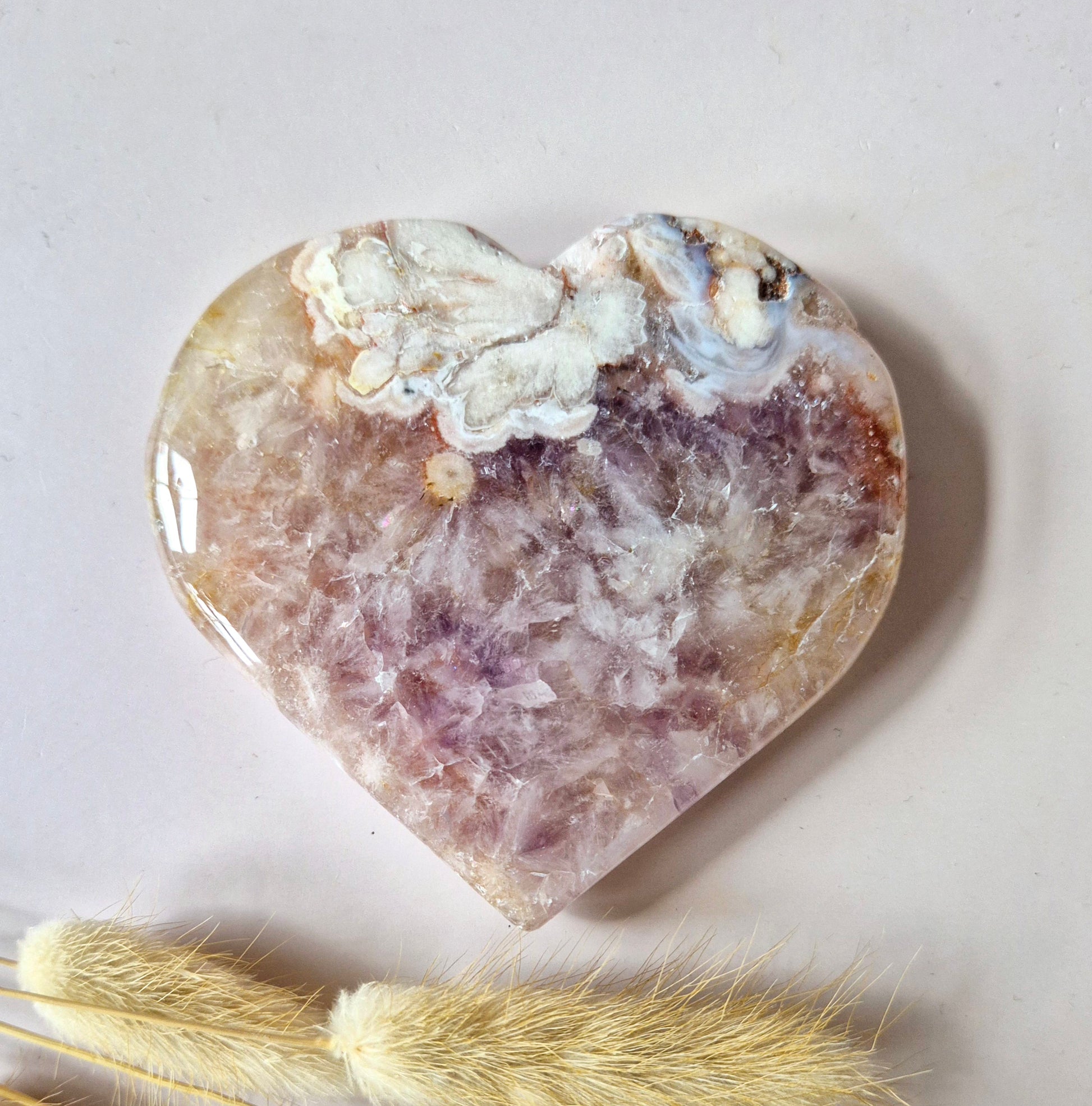 Pink Amethist staat bekend om haar kalmerende en beschermende energie. Ze opent het hartchakra, bevordert zelfliefde, en helpt je om met meer rust en vertrouwen in het leven te staan. Dit stuk is niet alleen energetisch waardevol, maar ook een esthetisch sieraad voor je interieur, altaar of meditatieplek.