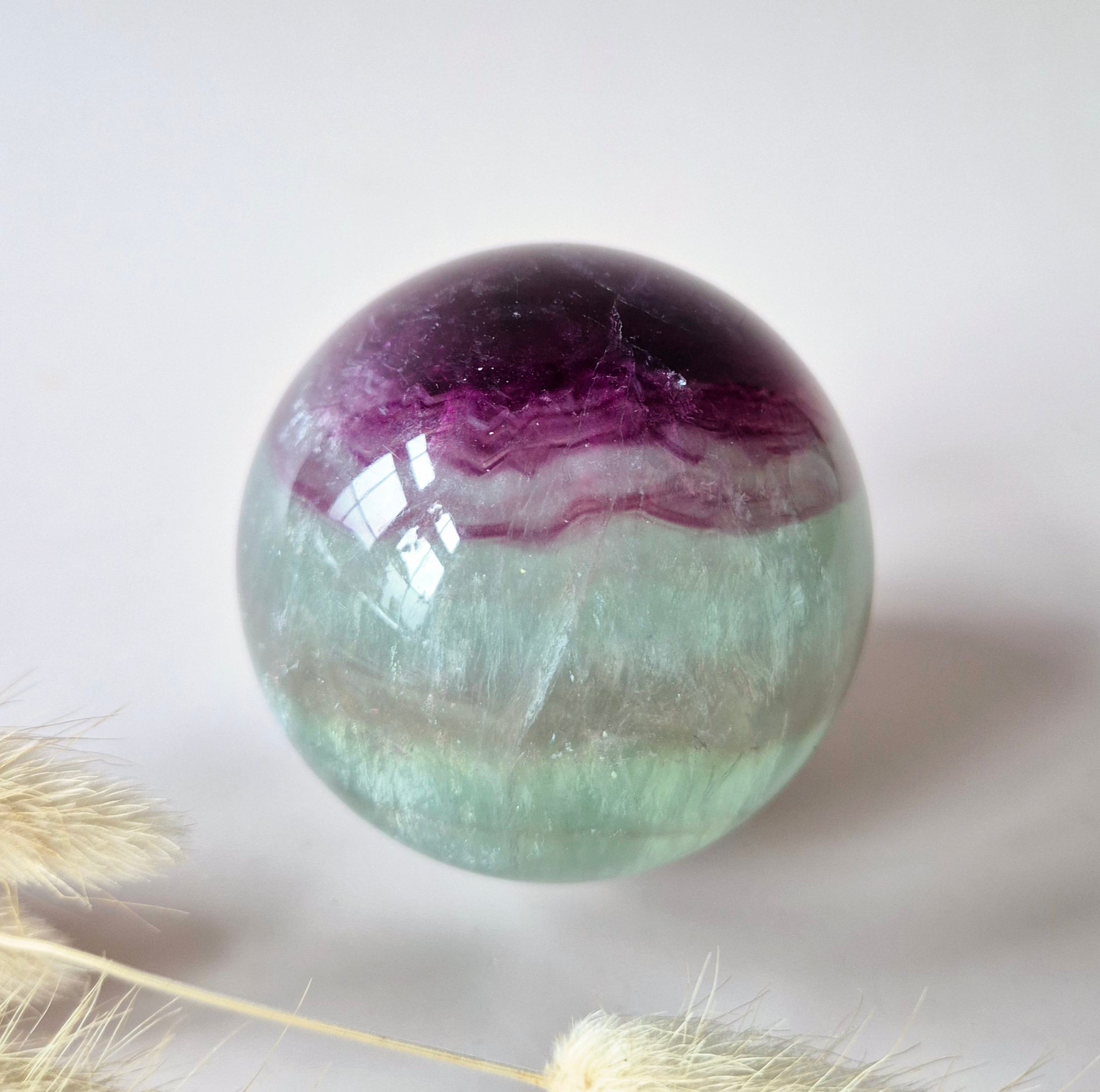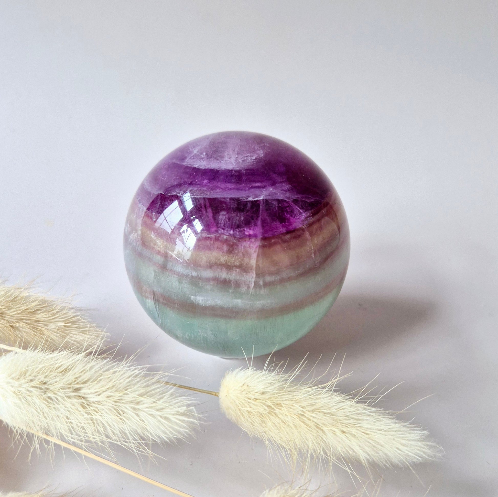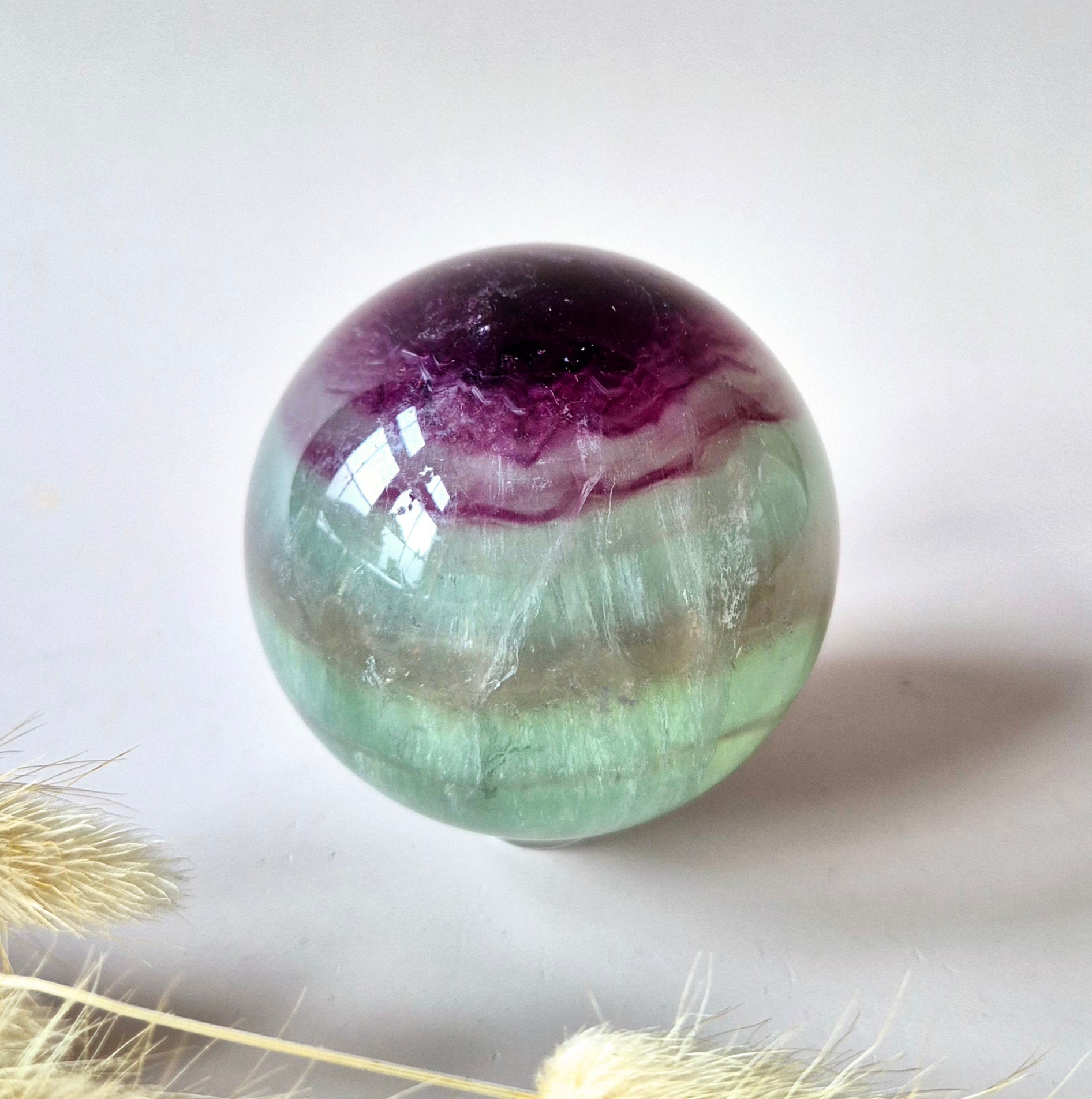 🌟 Fluoriet staat bekend om haar zuiverende werking op de geest. Het helpt bij focus, concentratie, bescherming tegen negatieve invloeden en energetische ruis. De bolvorm verspreidt de energie gelijkmatig in alle richtingen en is ideaal voor meditatie, werkplekken of kristalgrids.