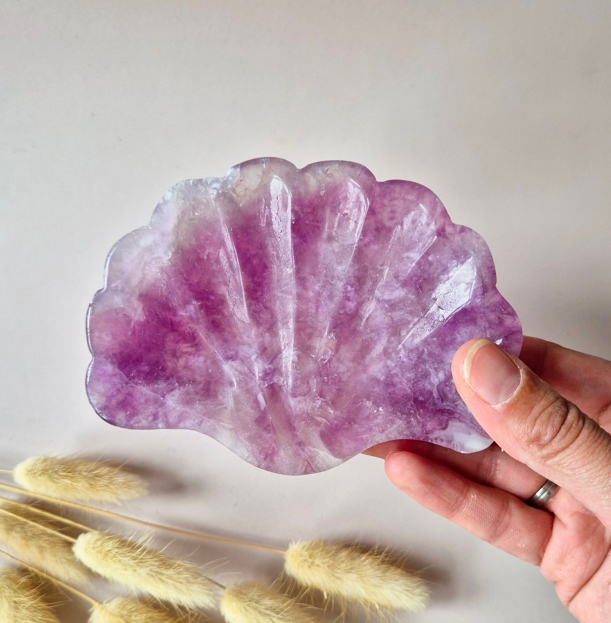 Edelsteen Schaal Schelpvorm #2 – Paarsgroene Fluoriet (11,5 cm | 308gr)