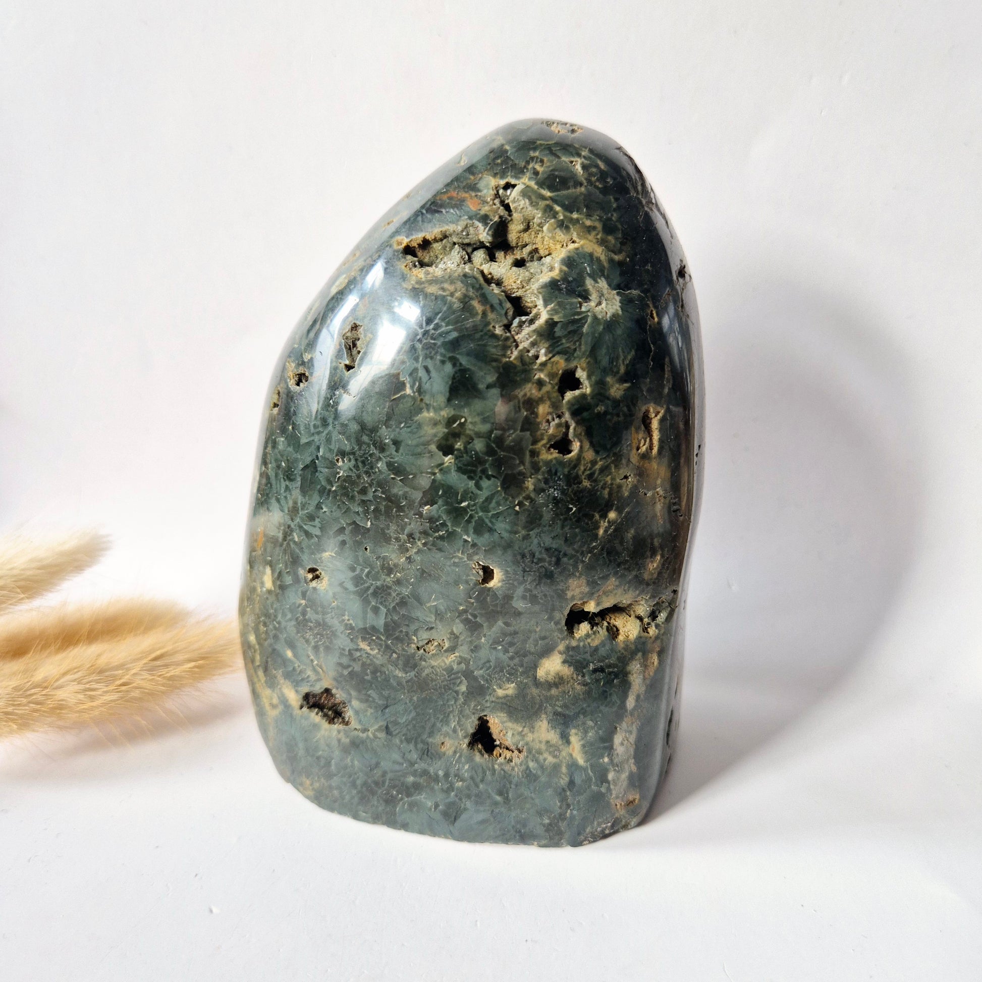 Een prachtige edelsteen voor wie houdt van natuurlijke schoonheid, rustgevende energie en unieke decoratieve stukken met een spirituele touch.