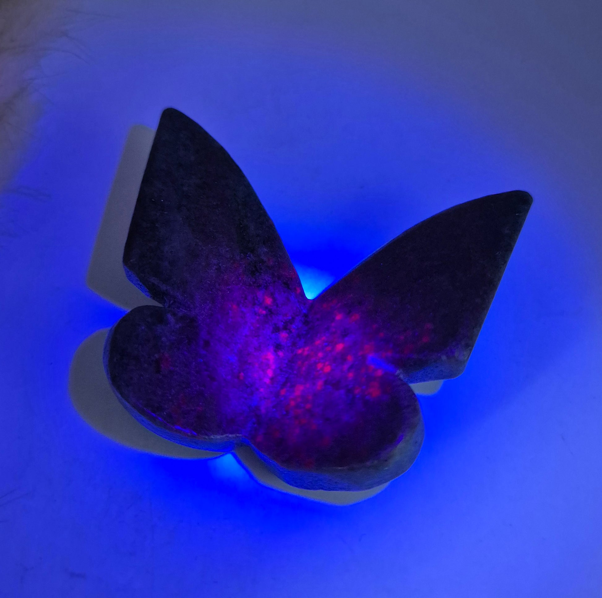 Edelsteen Vlinder 6x5 cm – Ruby in Fuchsite (UV reactief)