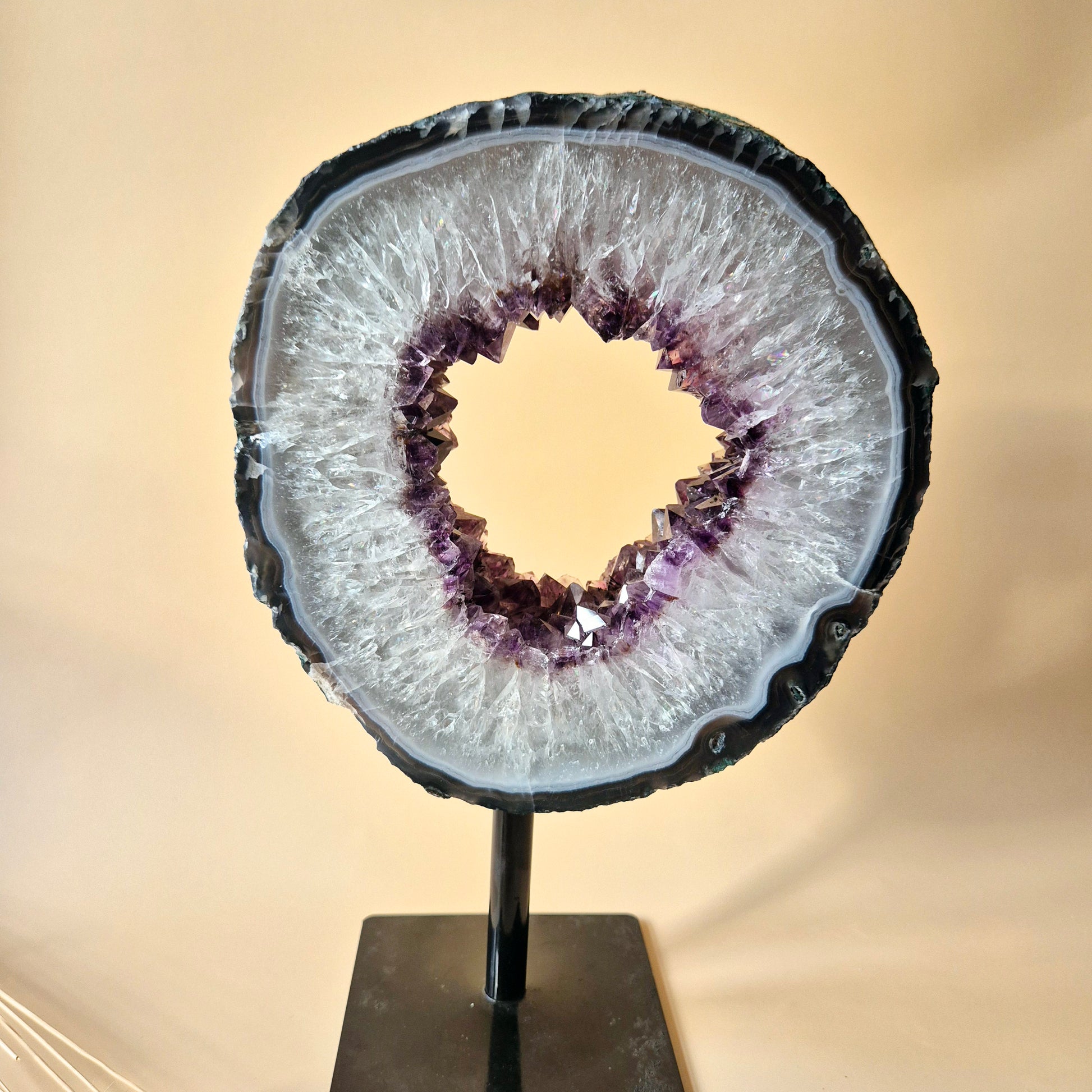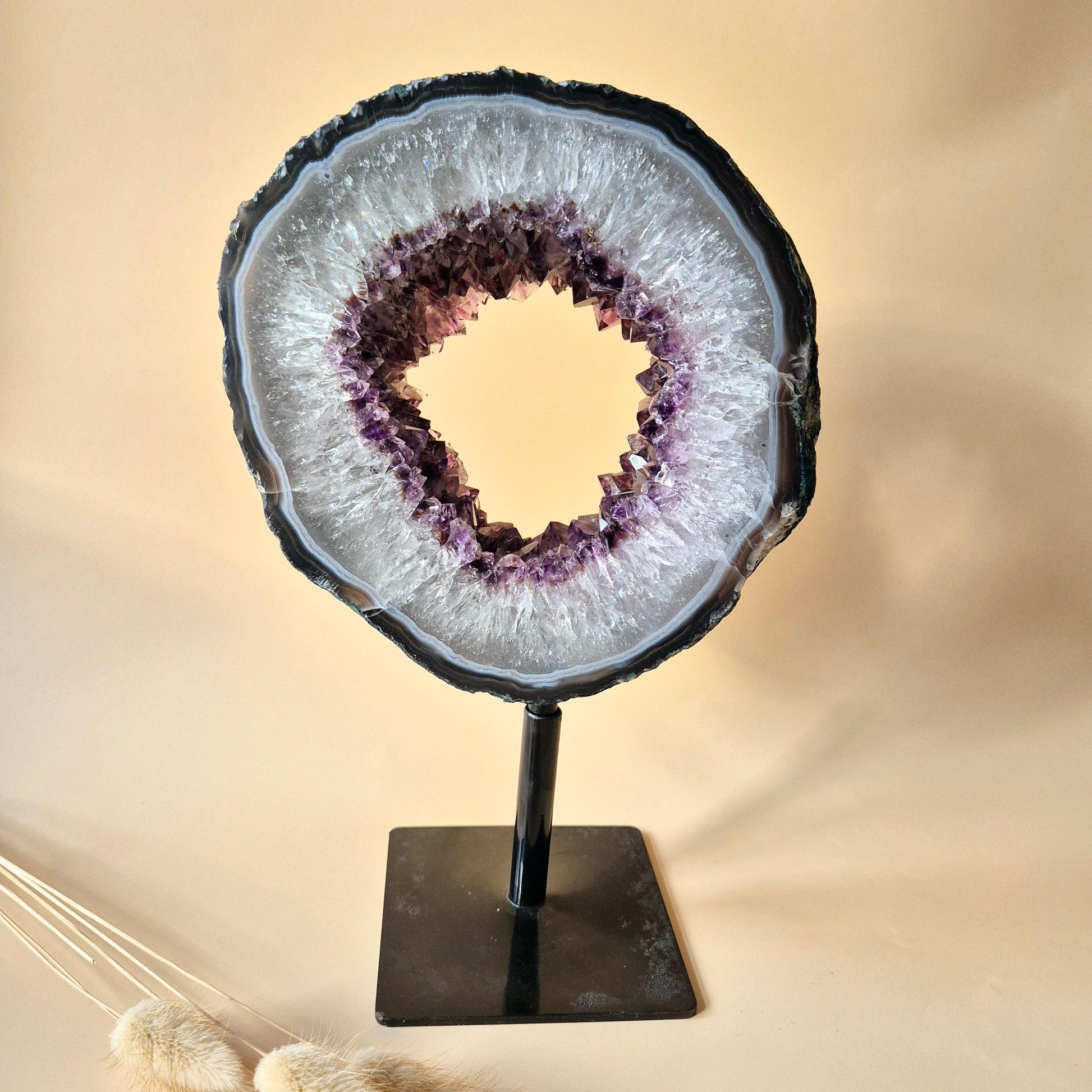 Vorm: XXL ring slice / open geode (volronde vorm, hoge kwaliteit kristallen)
