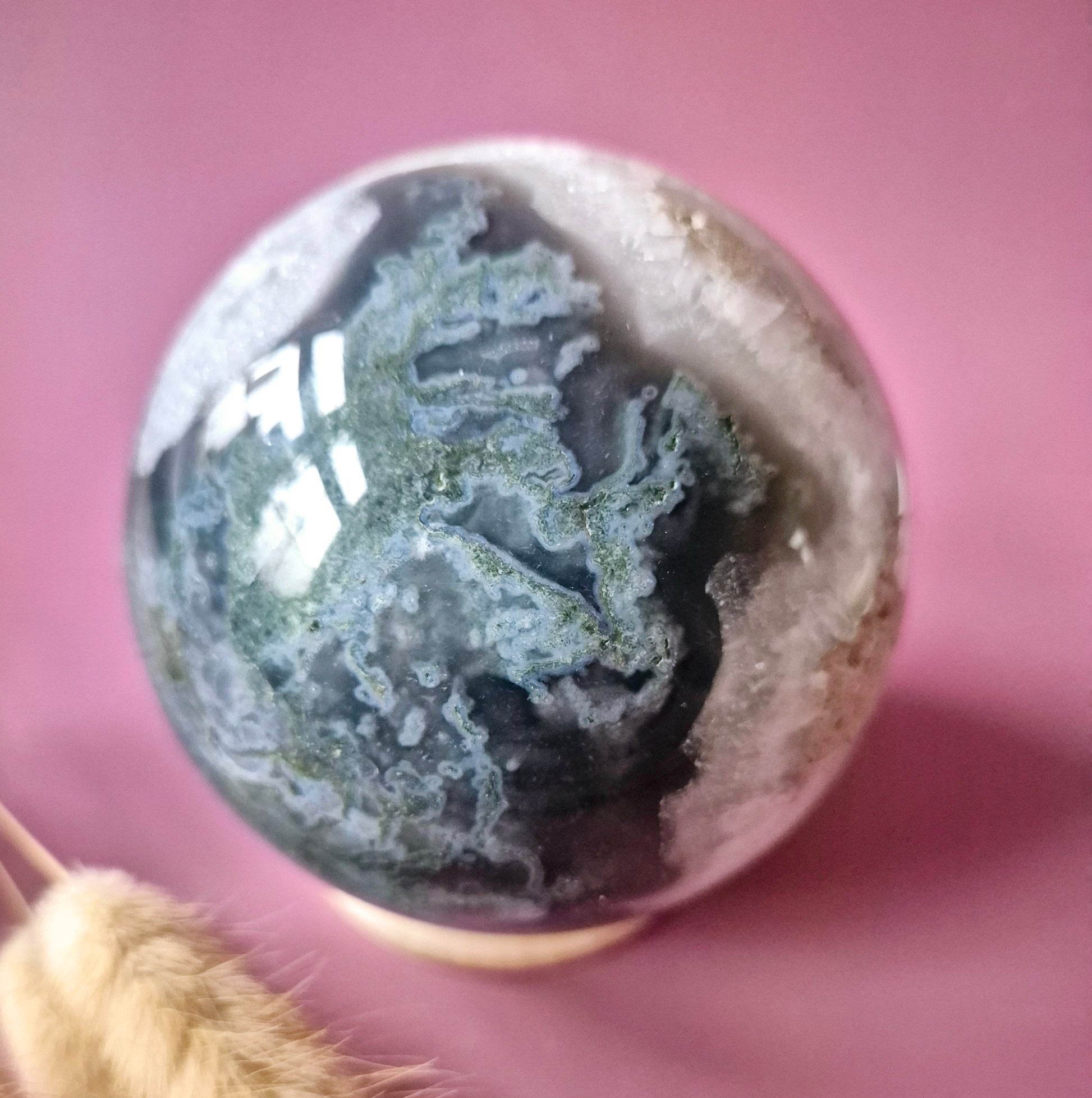 Mosagaat staat bekend om zijn connectie met de natuur en wordt vaak geassocieerd met emotionele balans en persoonlijke groei. De natuurlijke tekeningen in de bol lijken op kleine werelden of landschappen, wat elk stuk volledig uniek maakt.