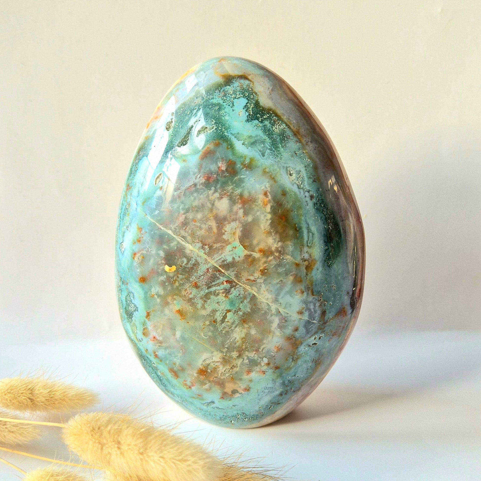 Elke Ocean Jasper freeform is volledig uniek in vorm, kleurverdeling en patroon. Je ontvangt exact het afgebeelde exemplaar.