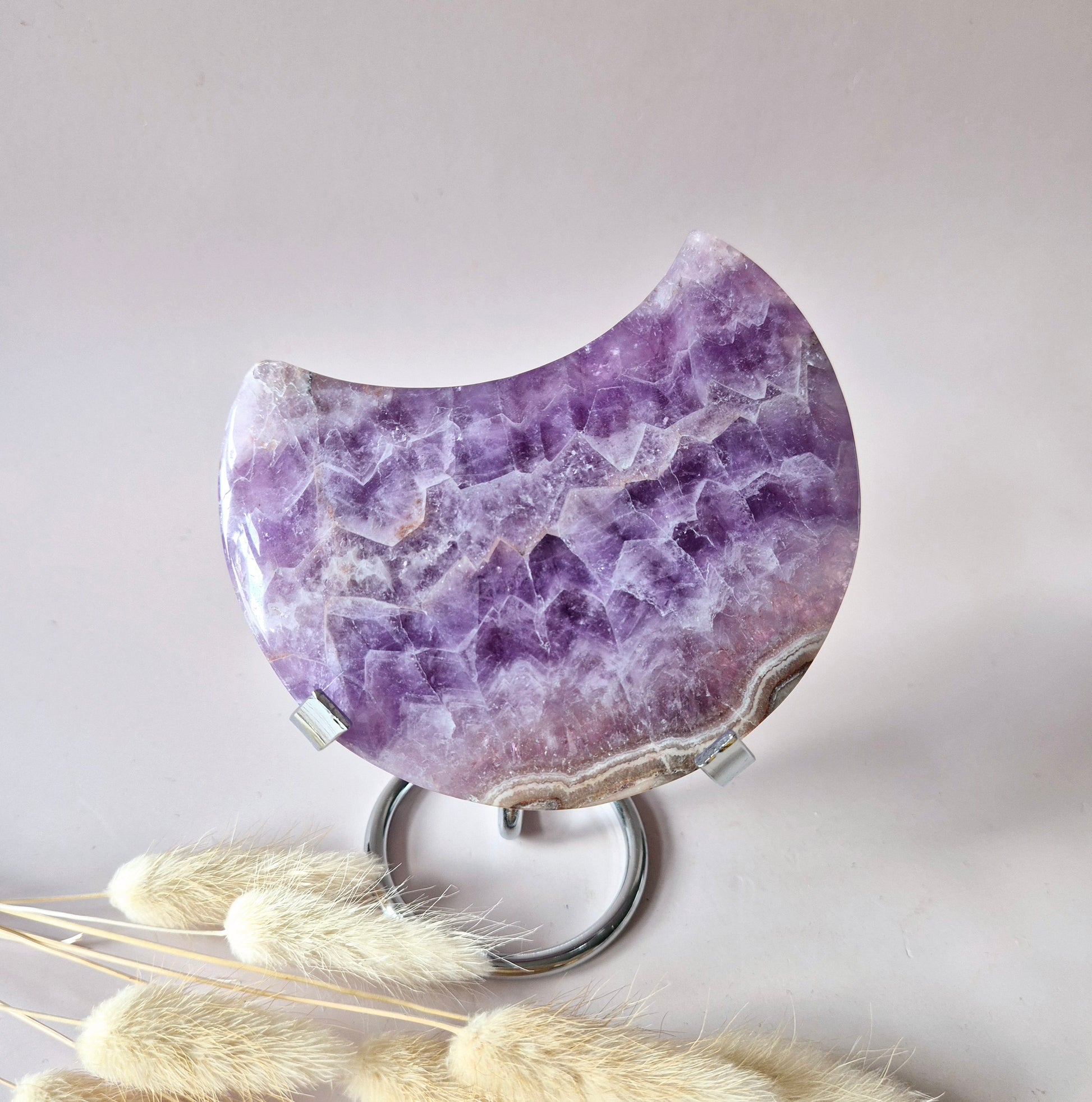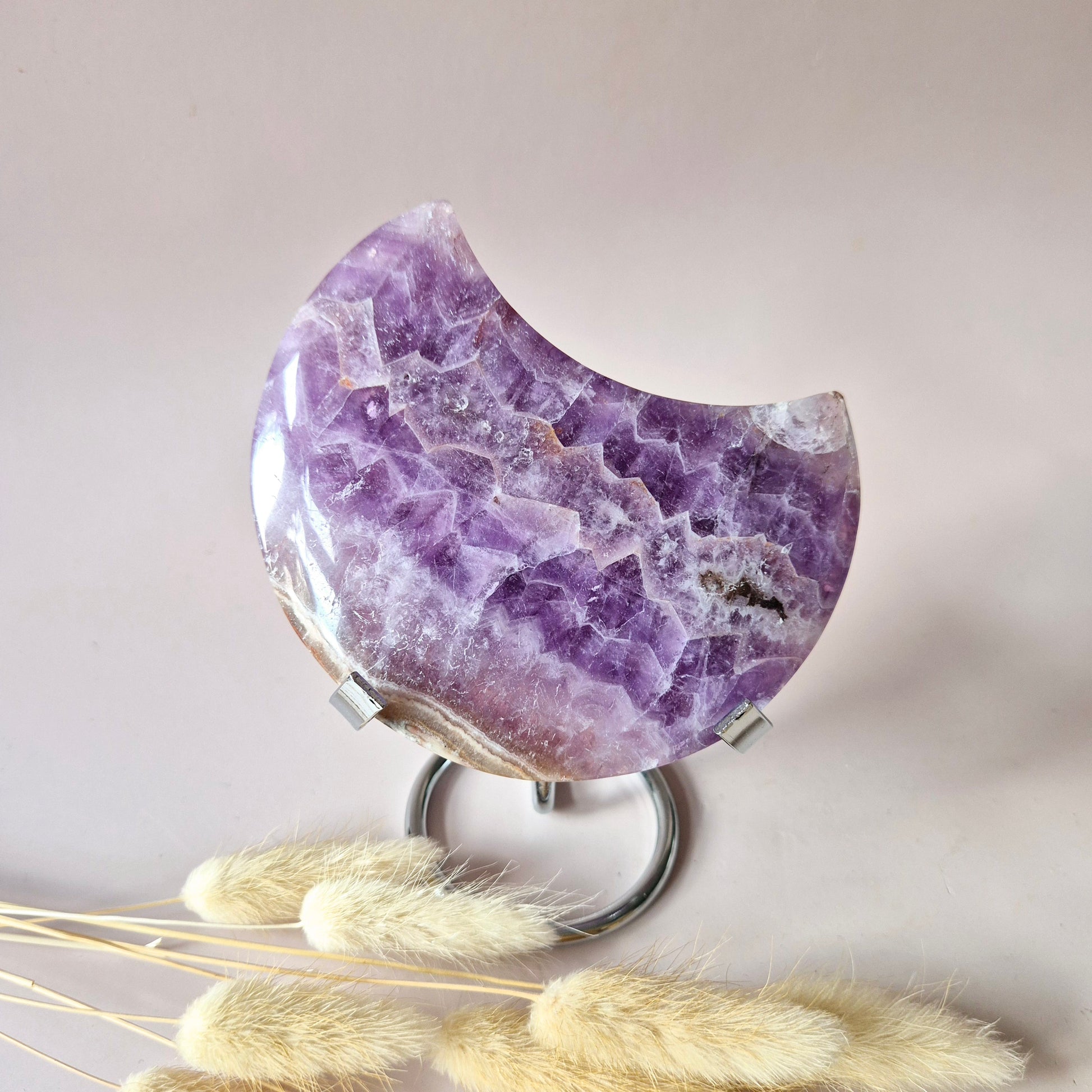 XL Amethist Agaat Edelsteen Maan (314g) – Inclusief Standaard