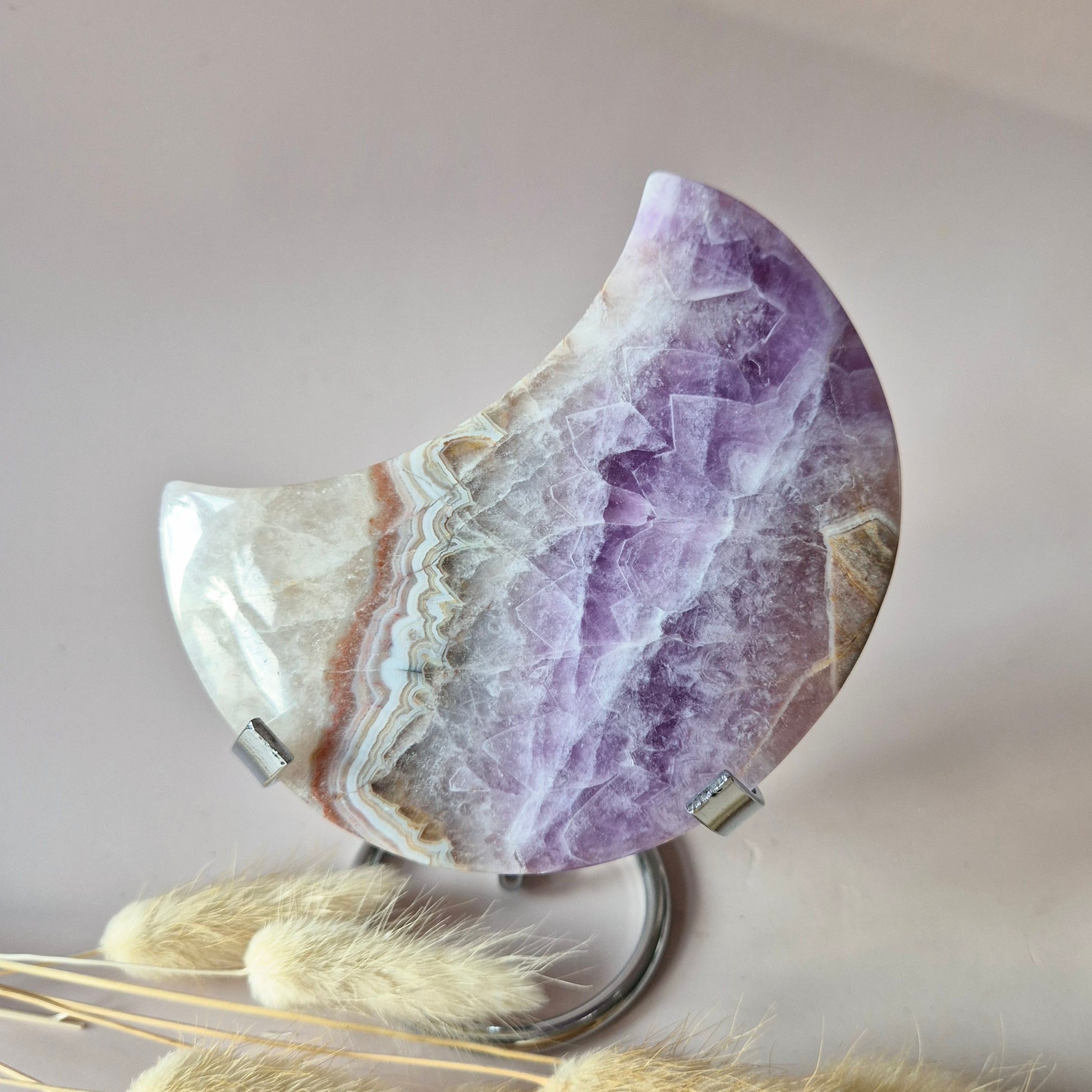 XL Amethist Agaat Edelsteen Maan (325g) – Inclusief Standaard