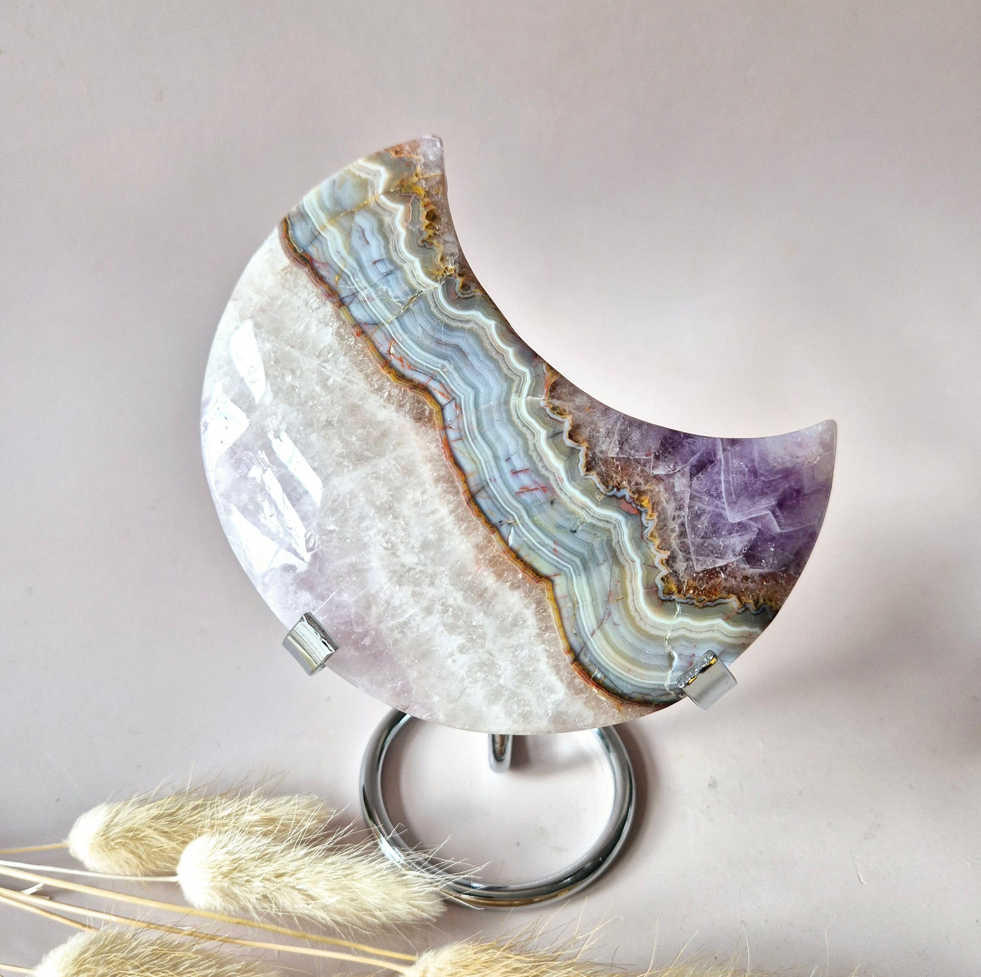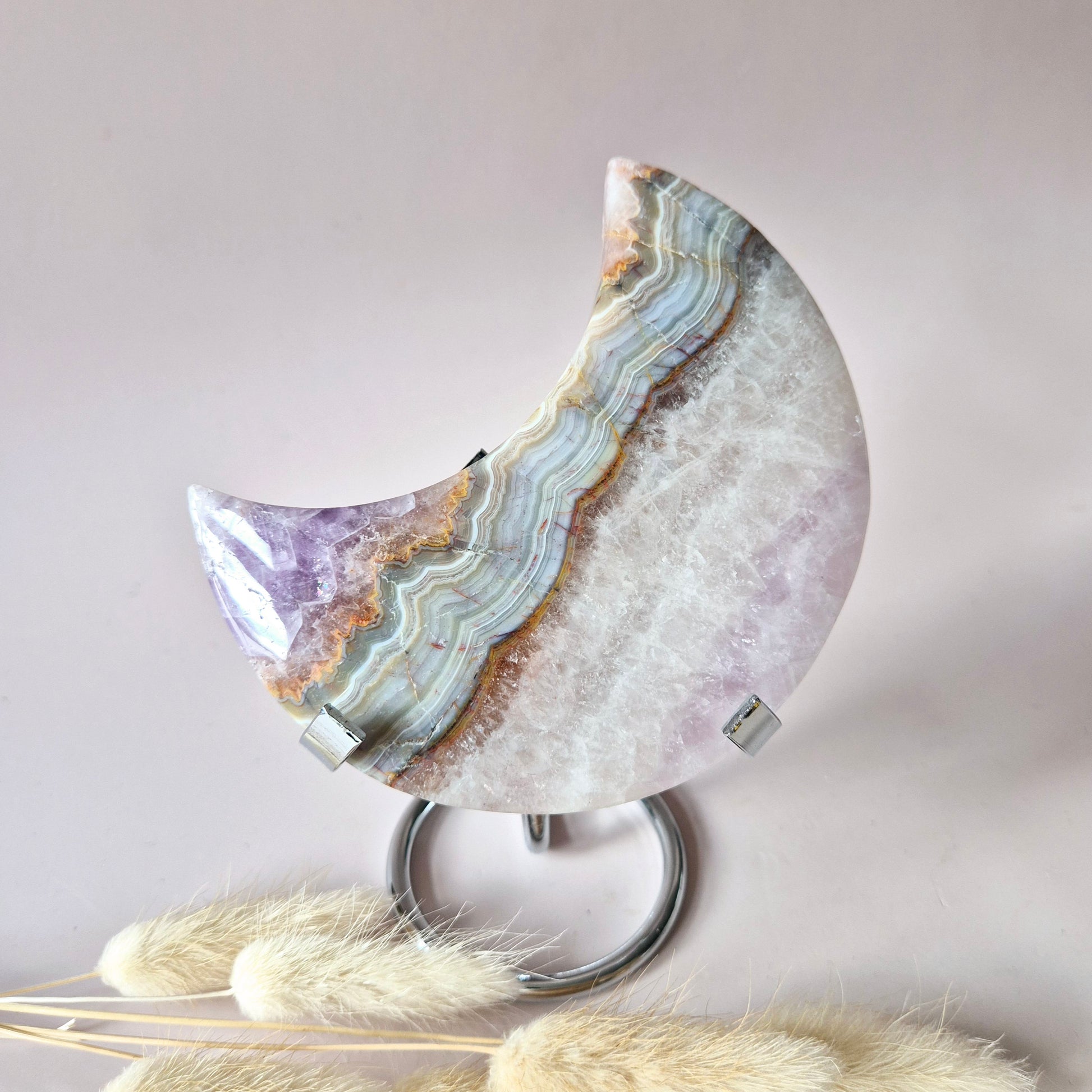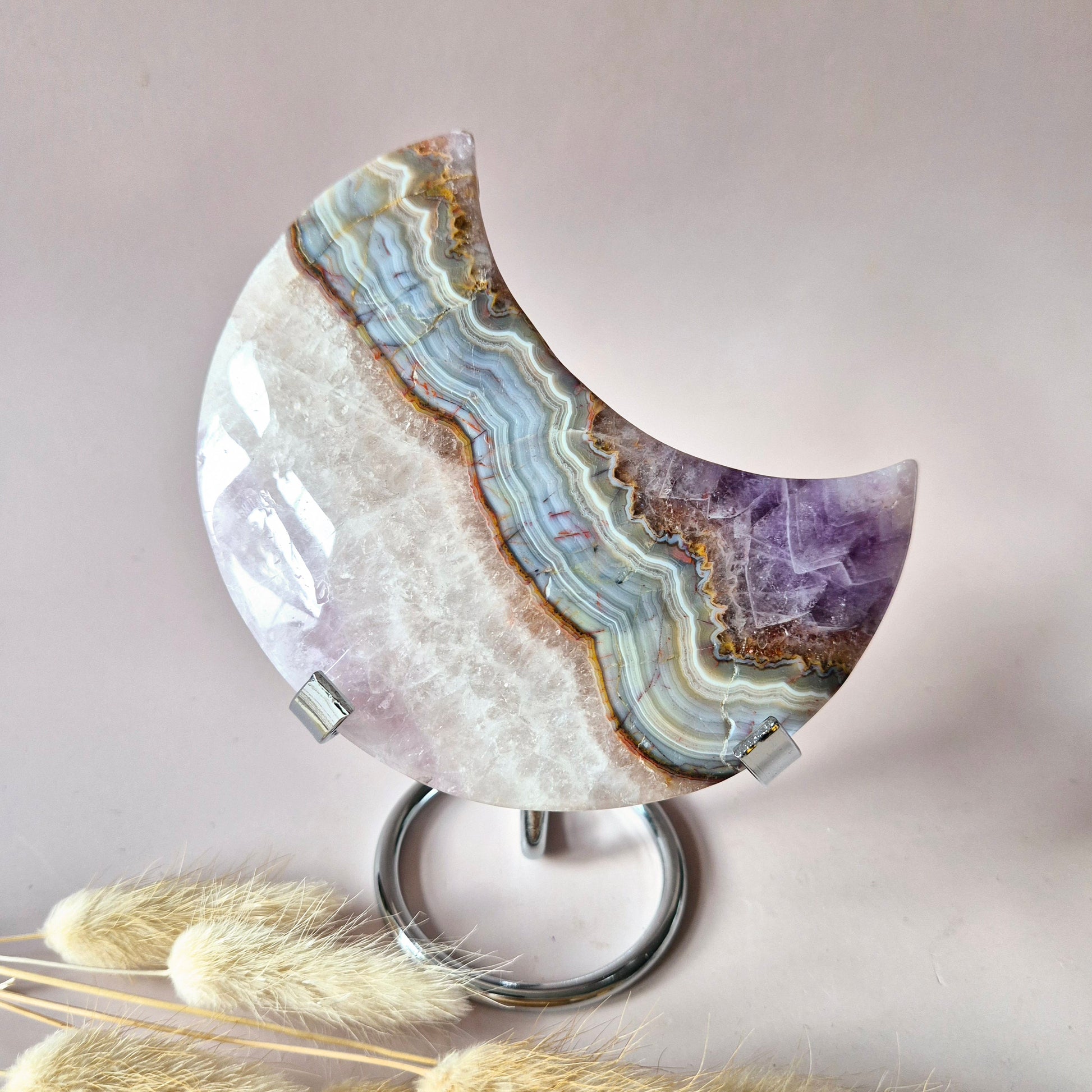 XL Amethist Agaat Edelsteen Maan (327g) – Inclusief Standaard