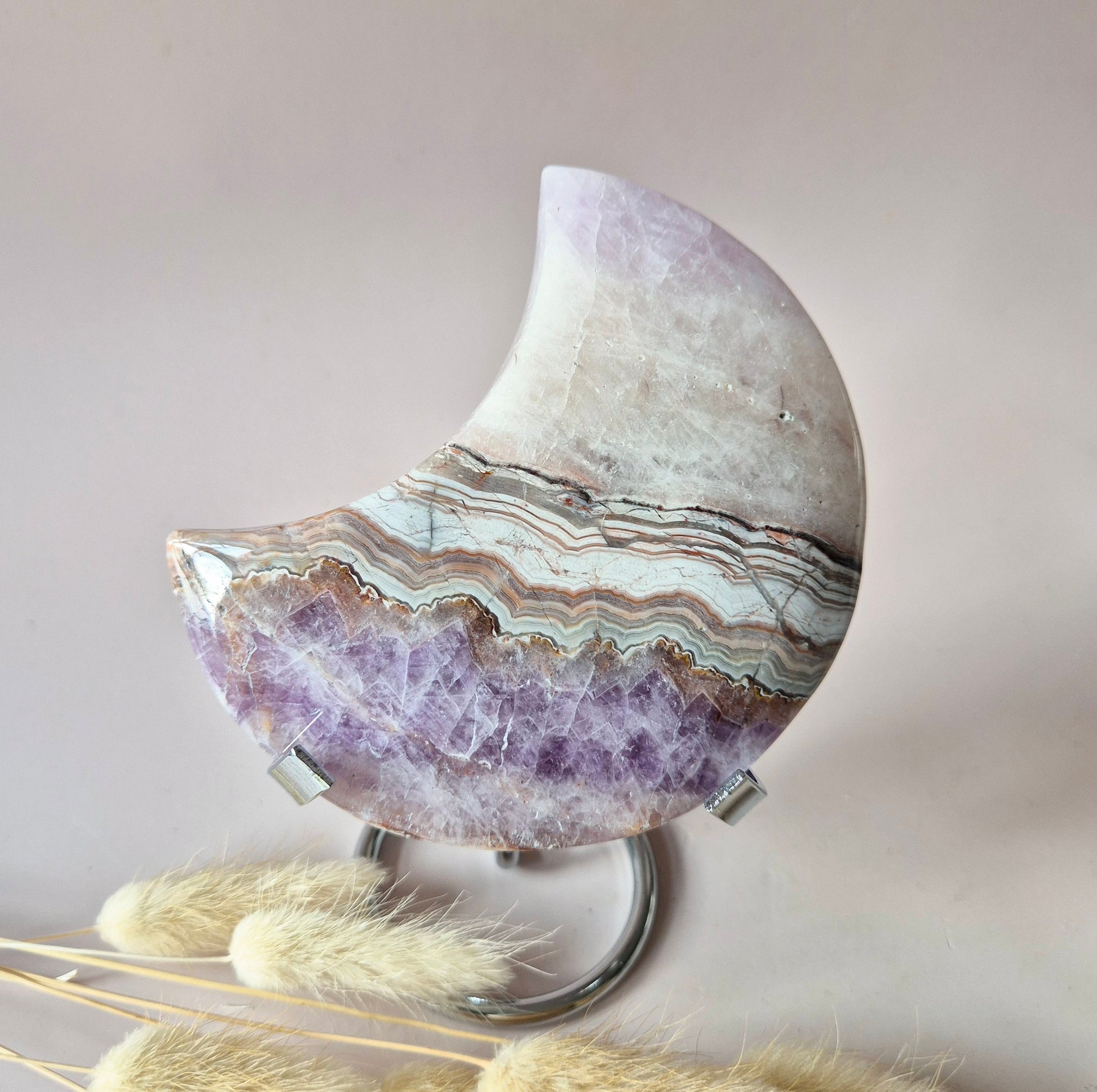 XL Amethist Agaat Edelsteen Maan (364g) – Inclusief Standaard