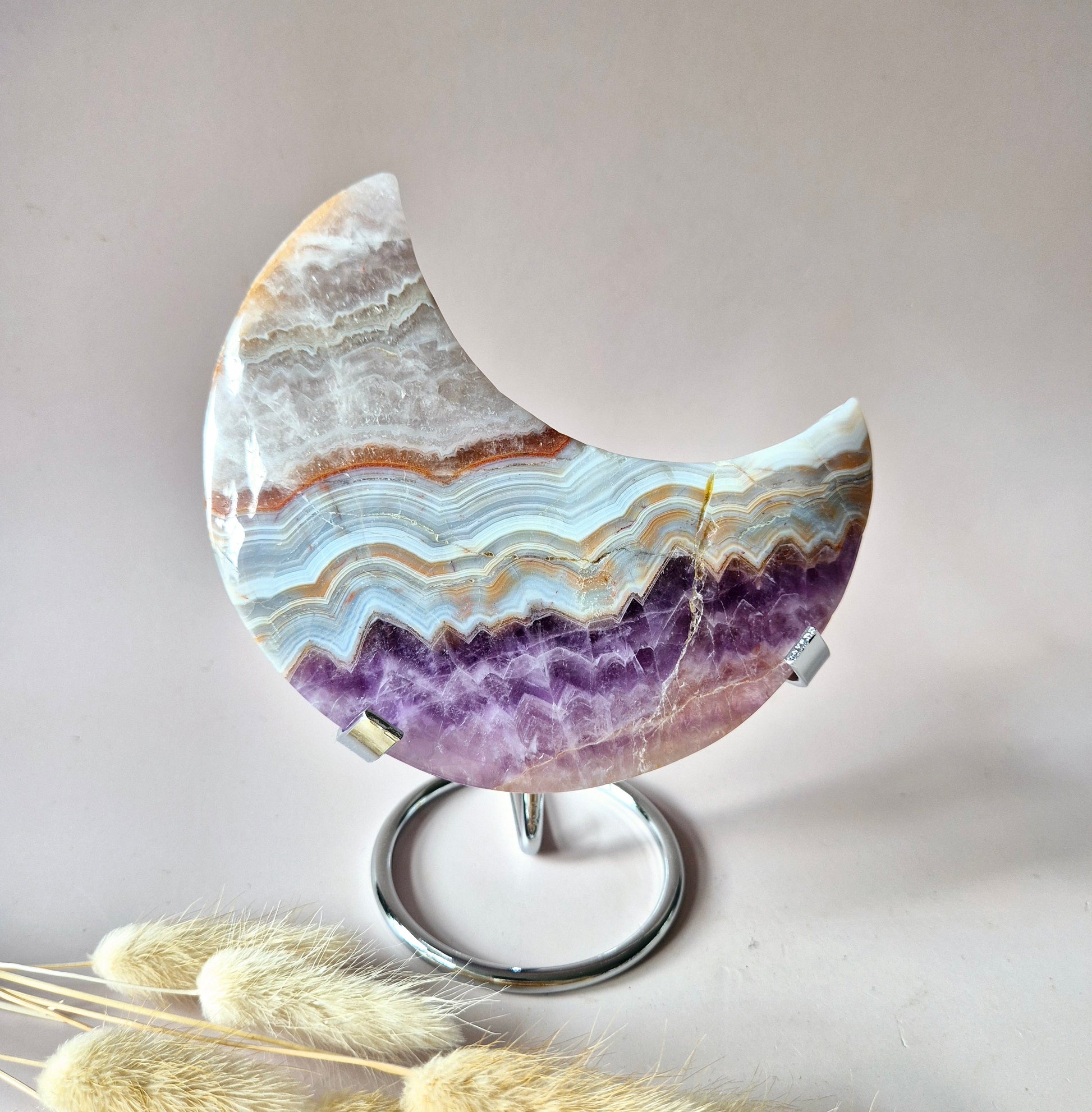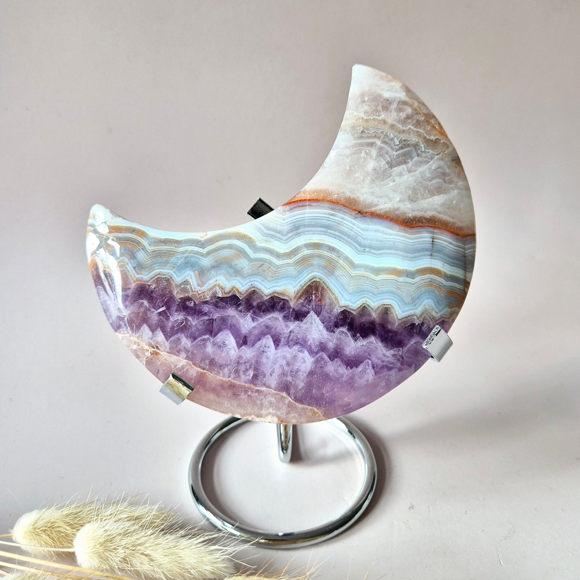 XL Amethist Agaat Edelsteen Maan (444 g) – Inclusief Standaard